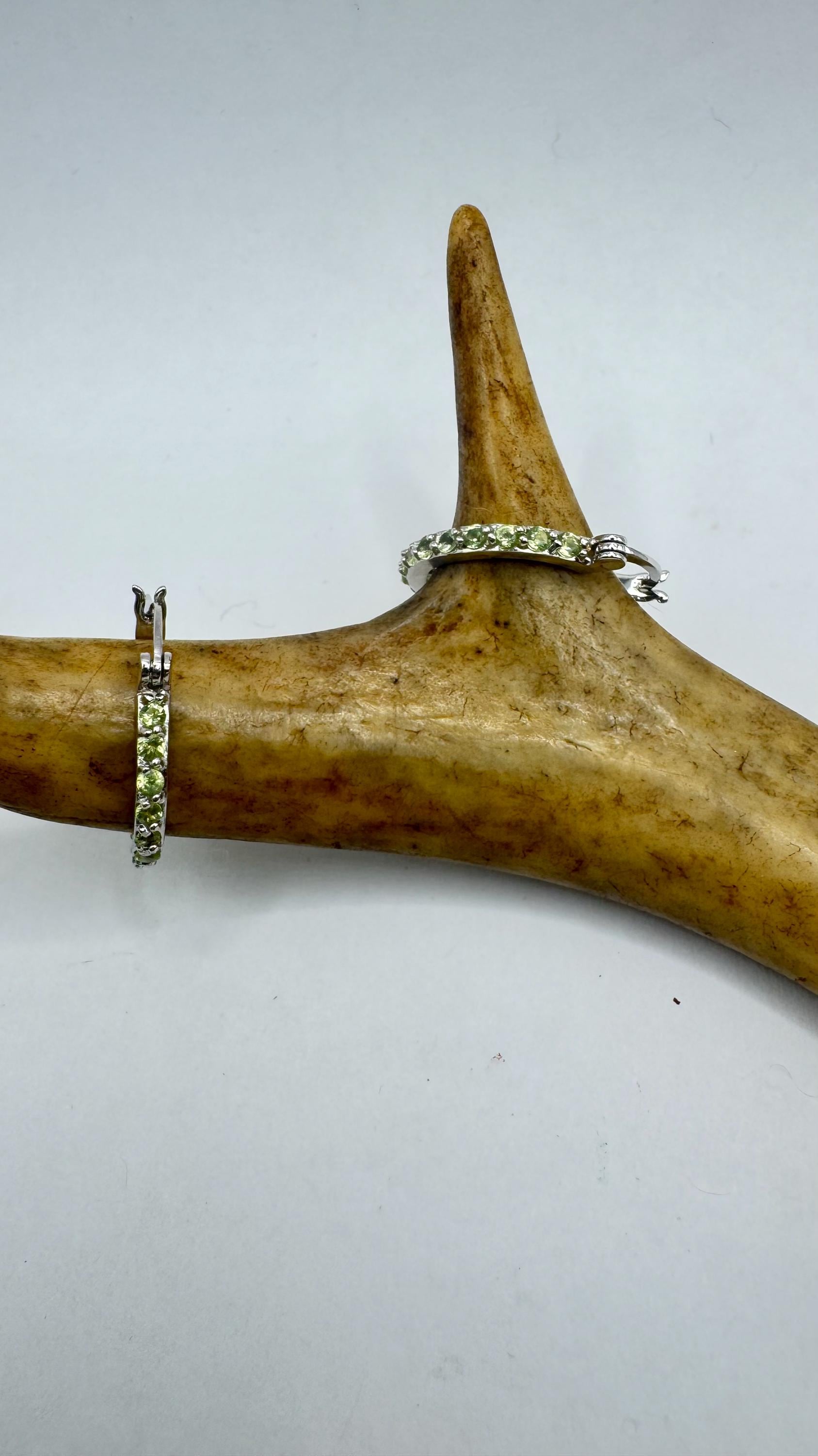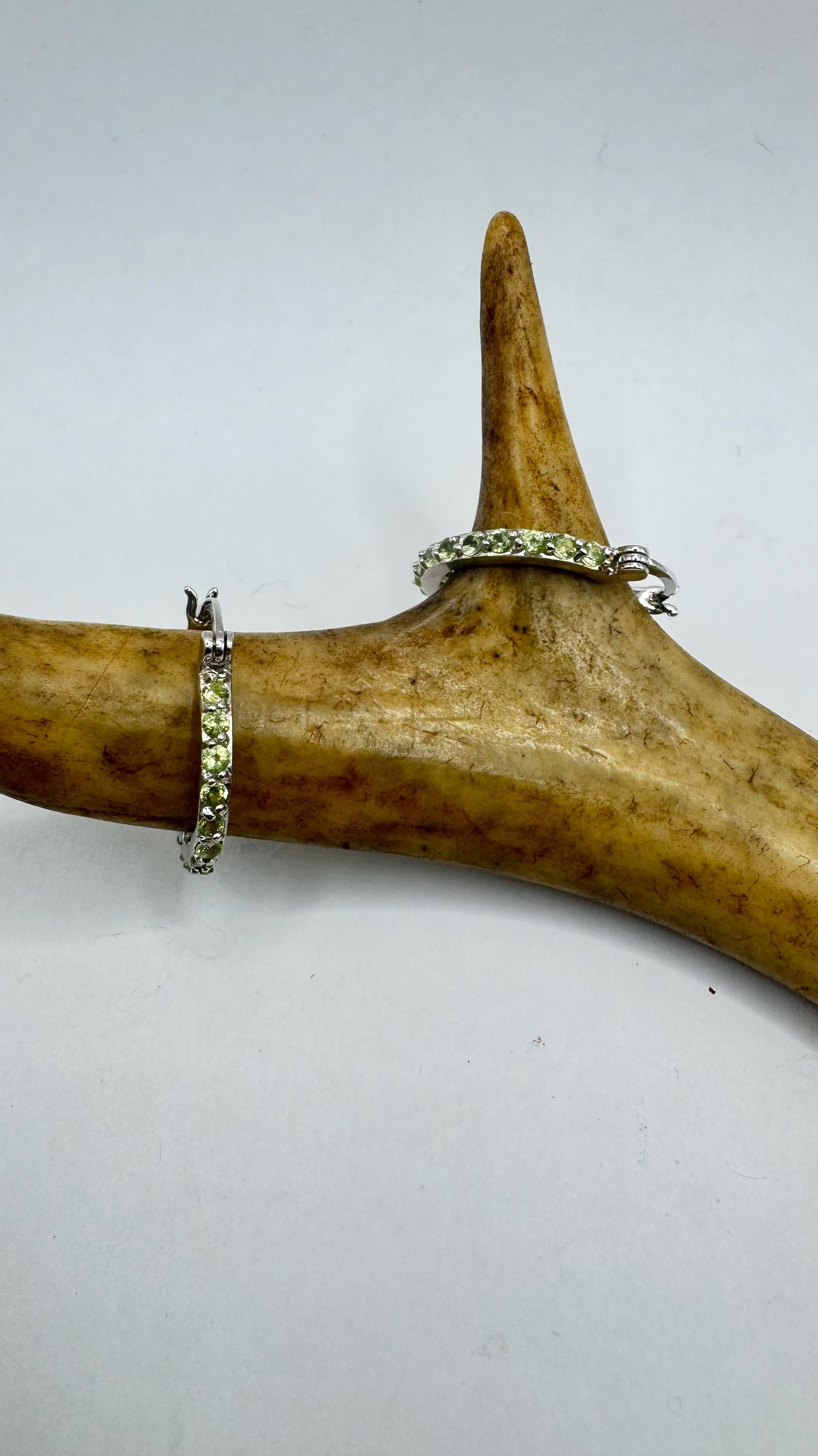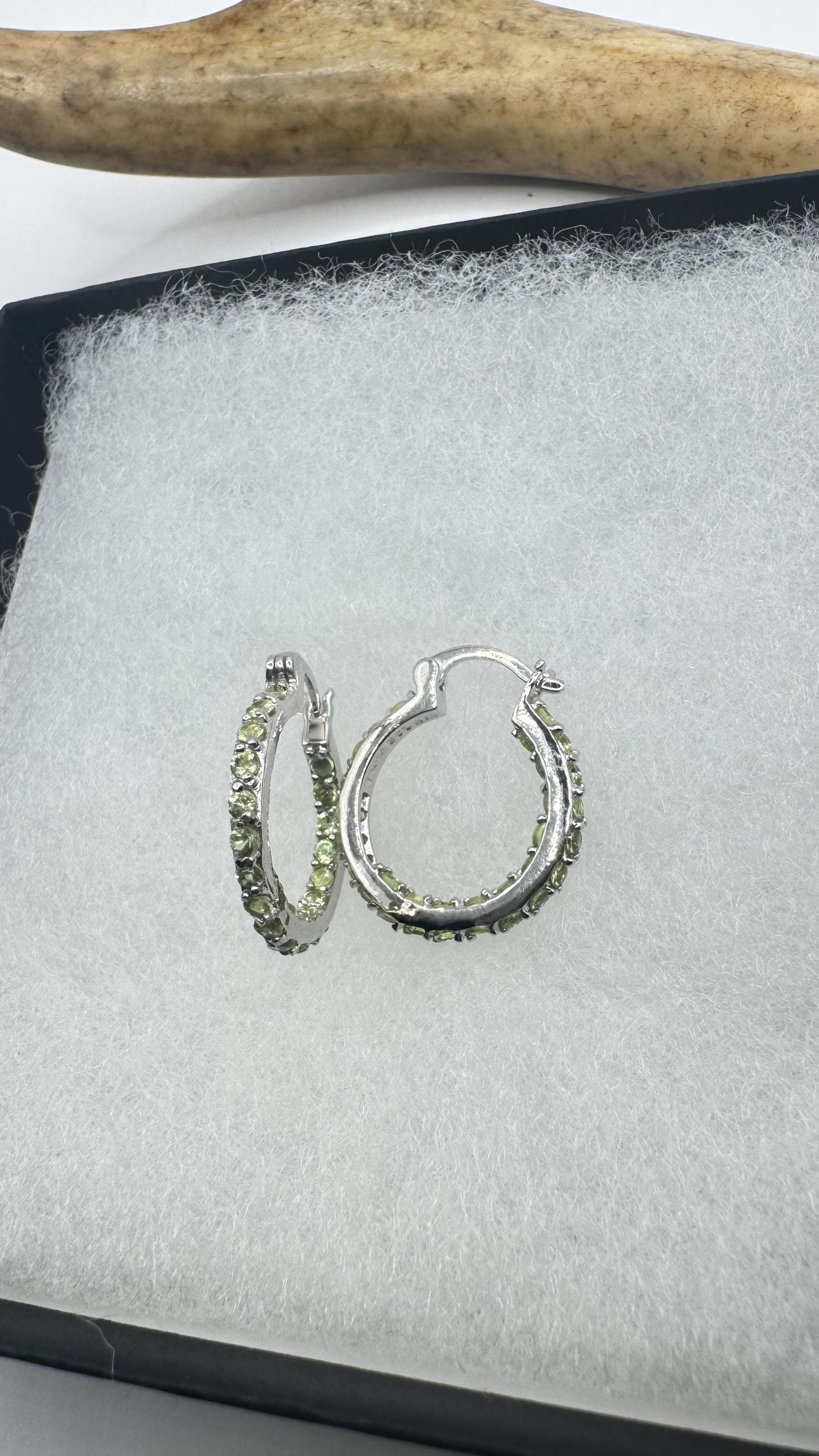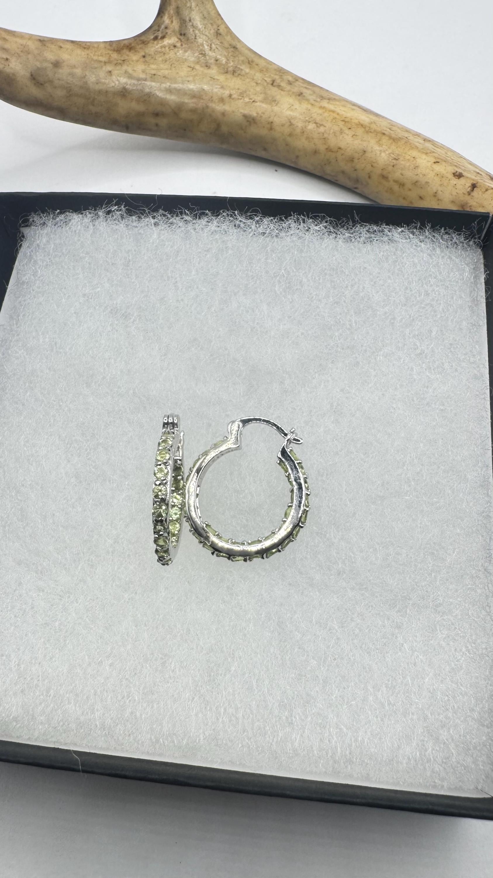 Vintage Green Peridot 925 Sterling Silver Hoop Earrings