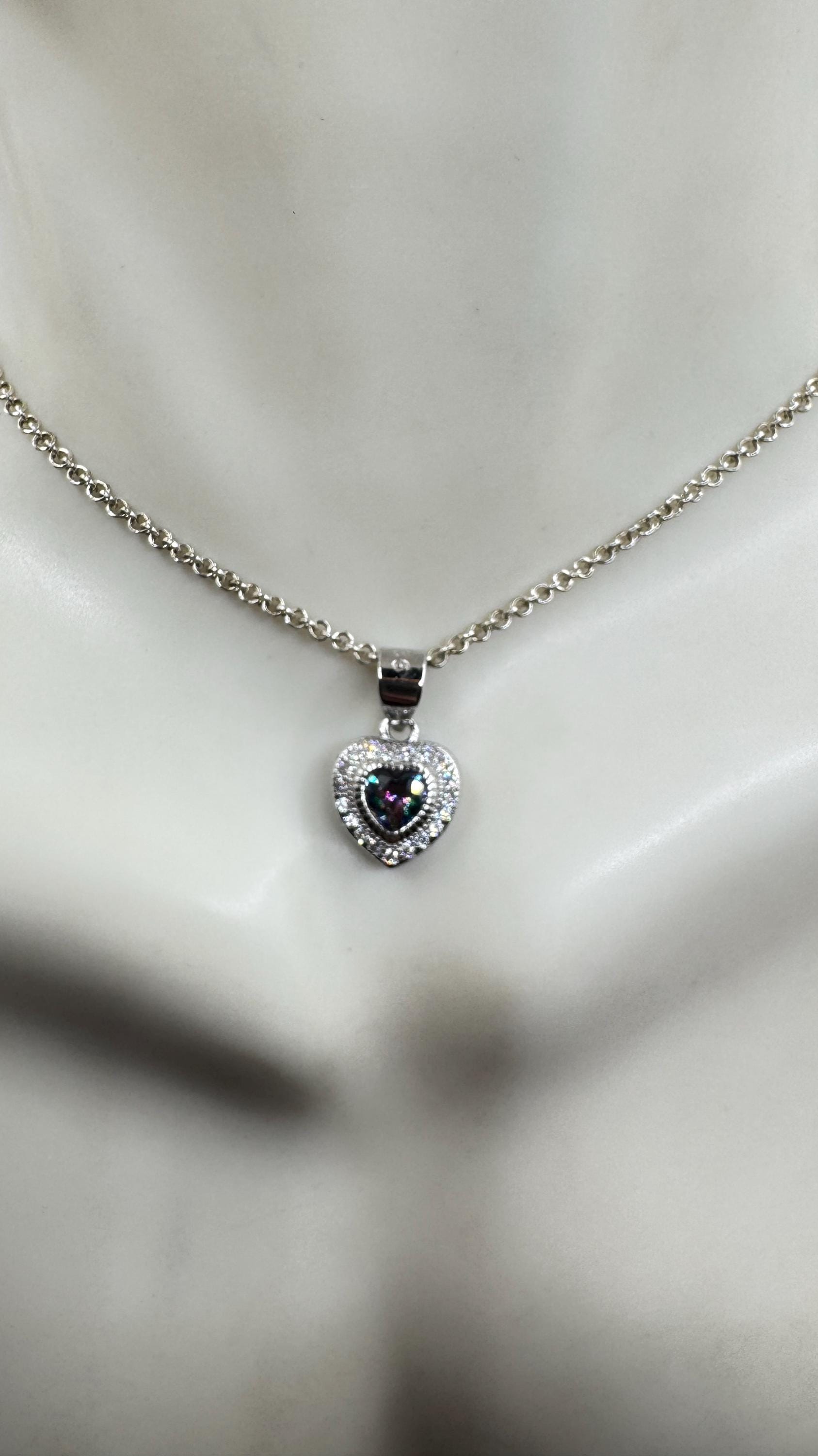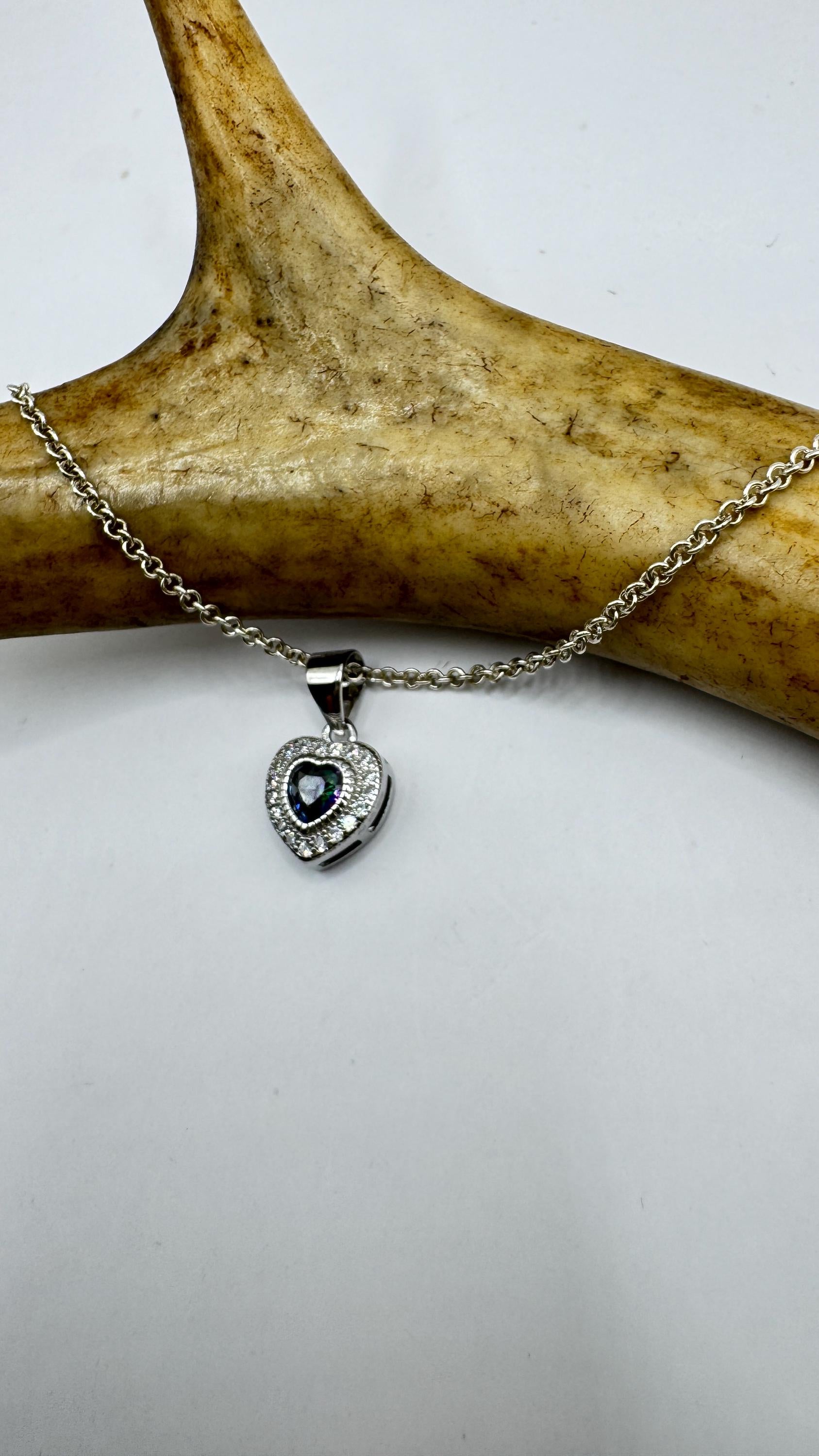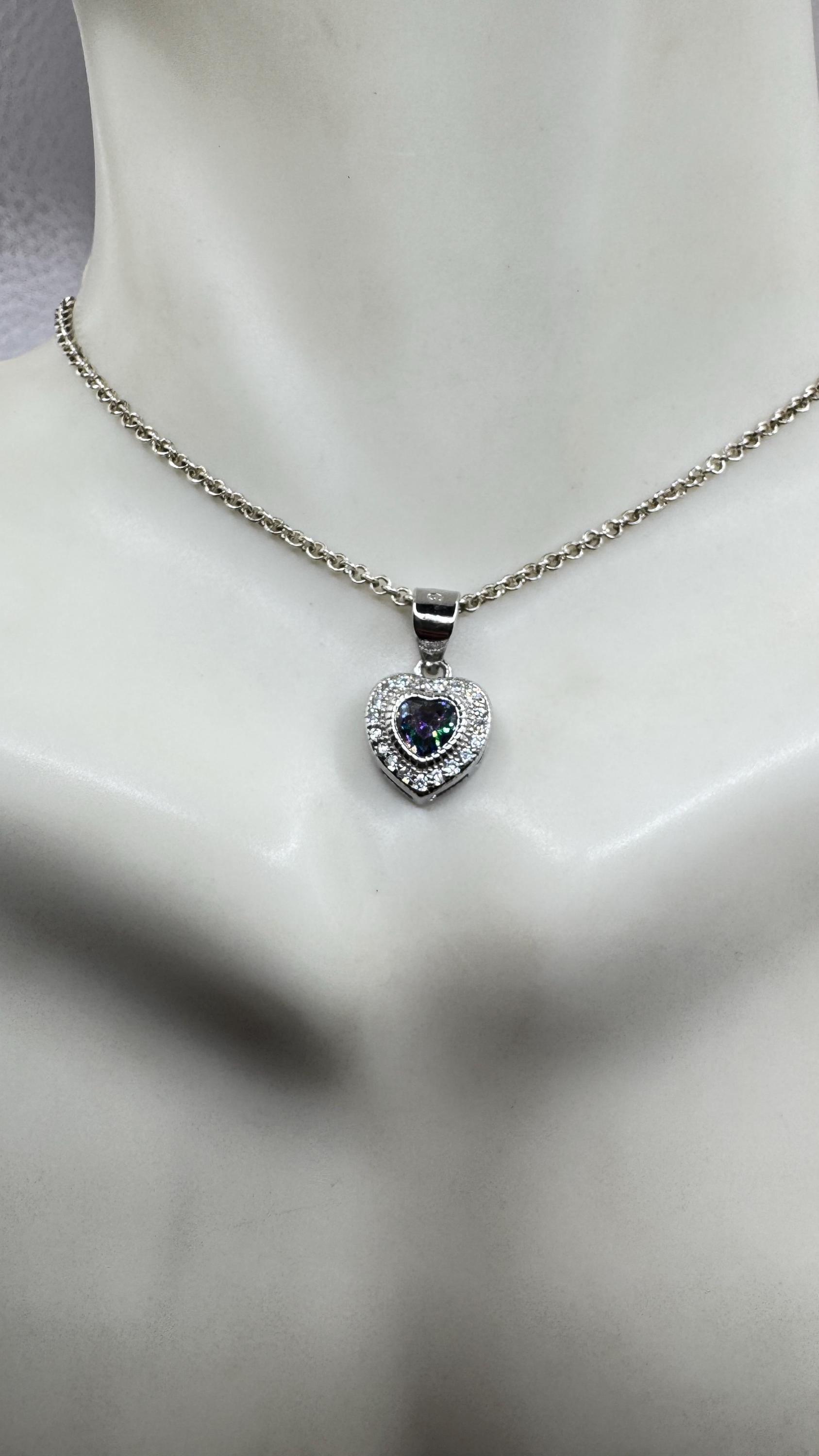 Vintage Heart Blue Mystic Topaz Sterling Silver Necklace
