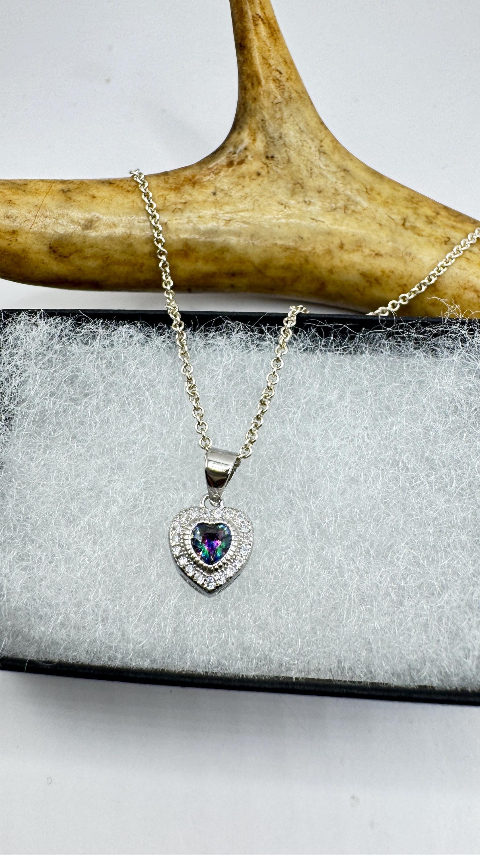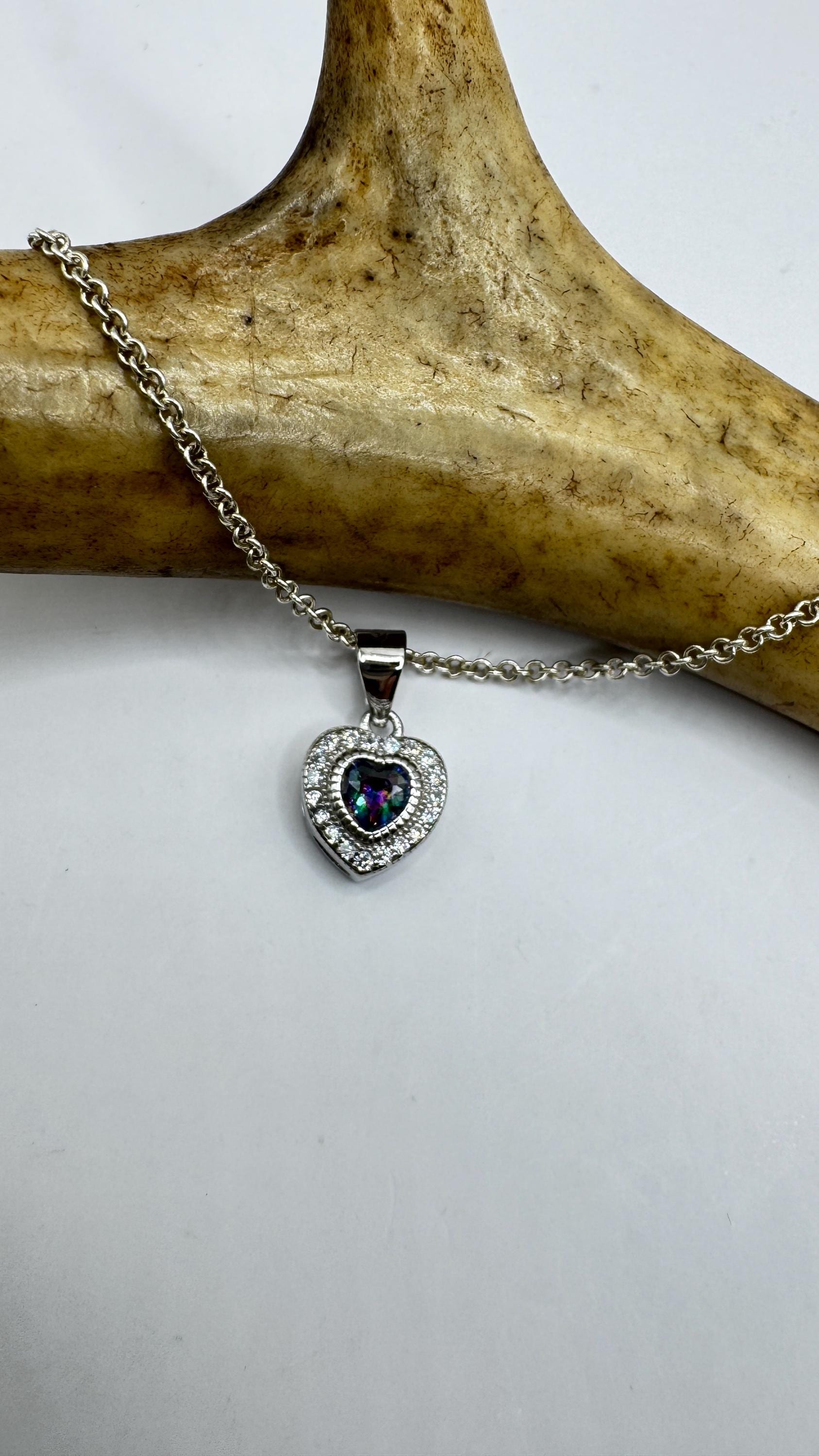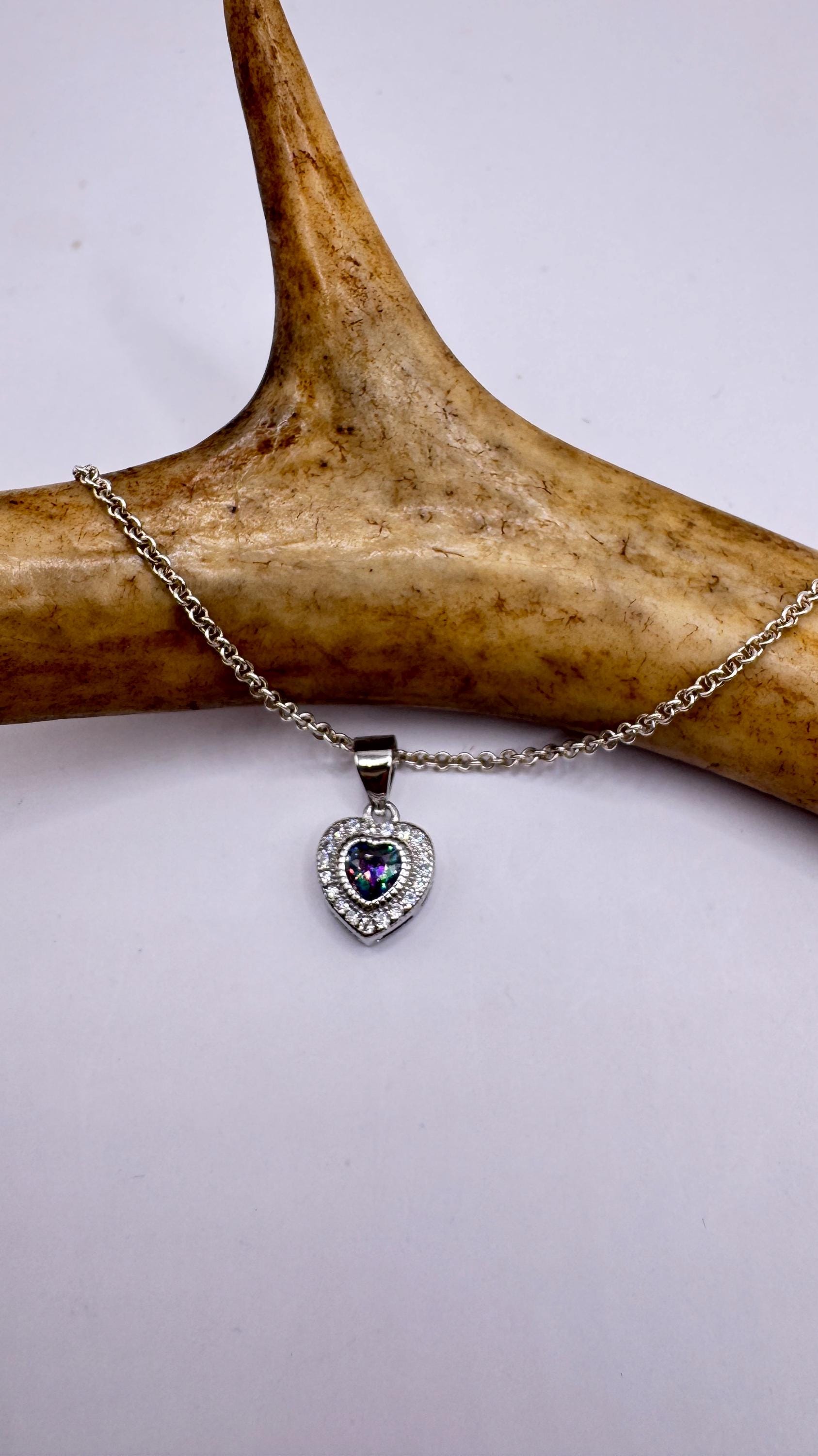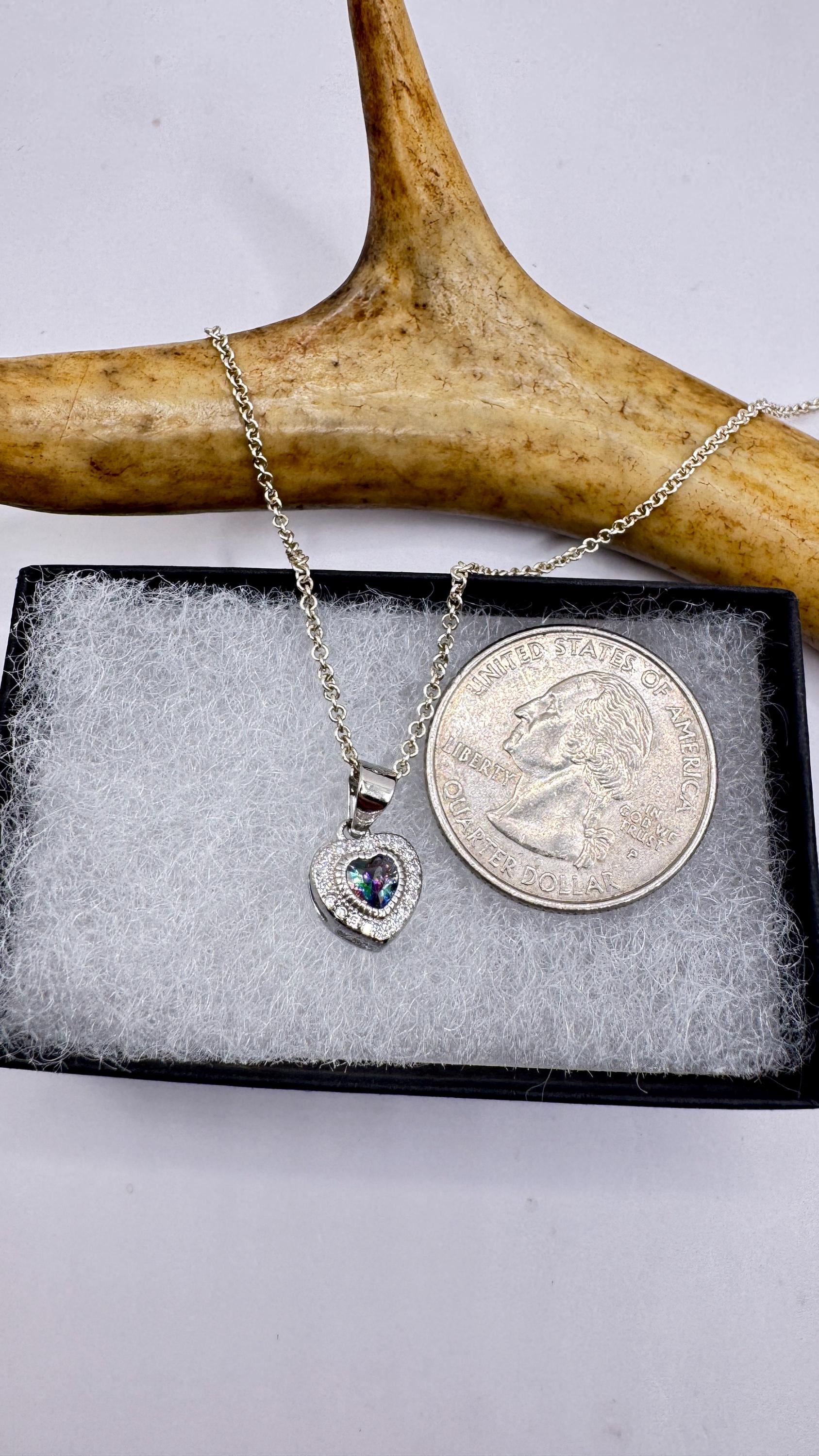 Vintage Heart Blue Mystic Topaz Sterling Silver Necklace