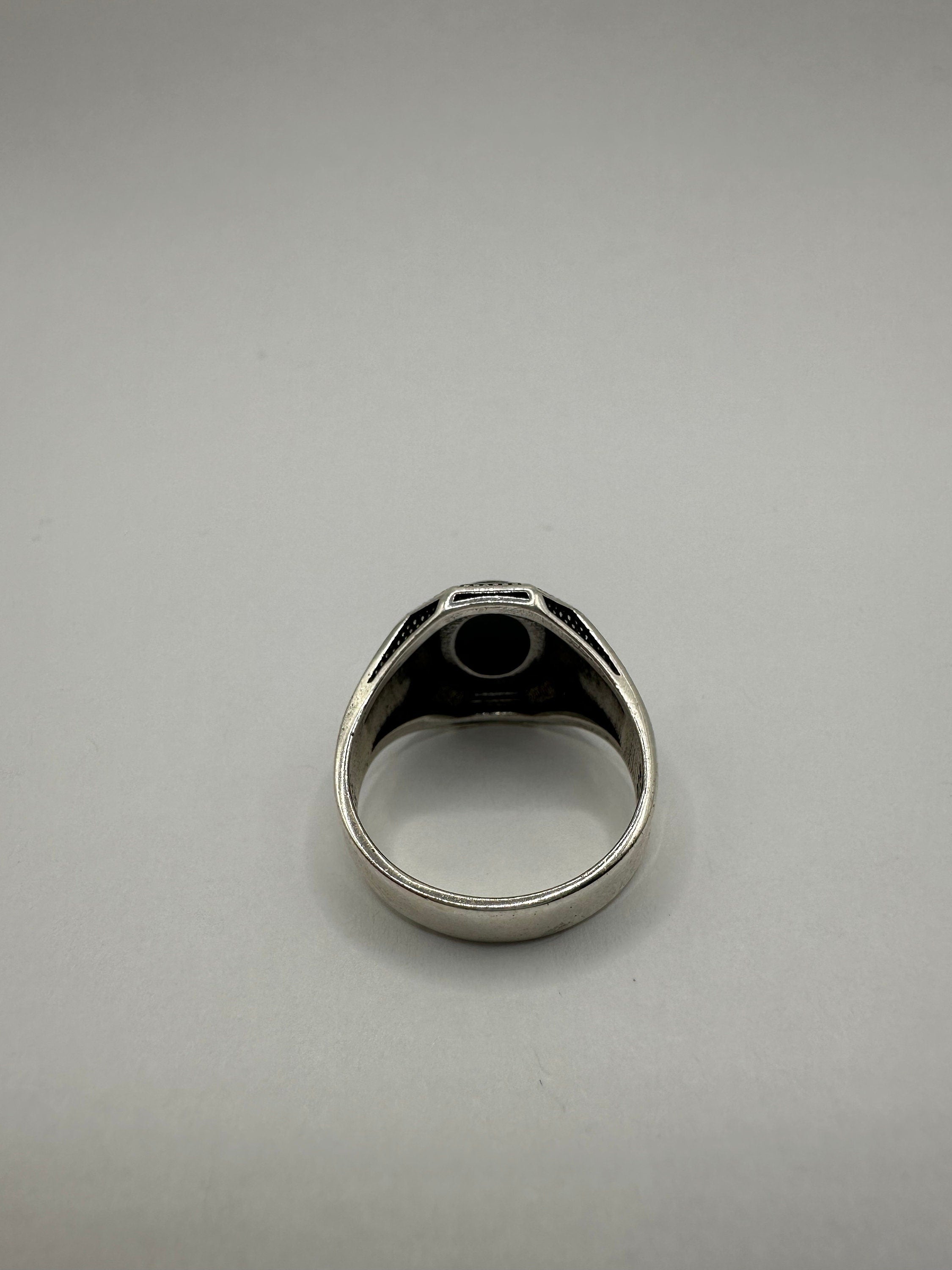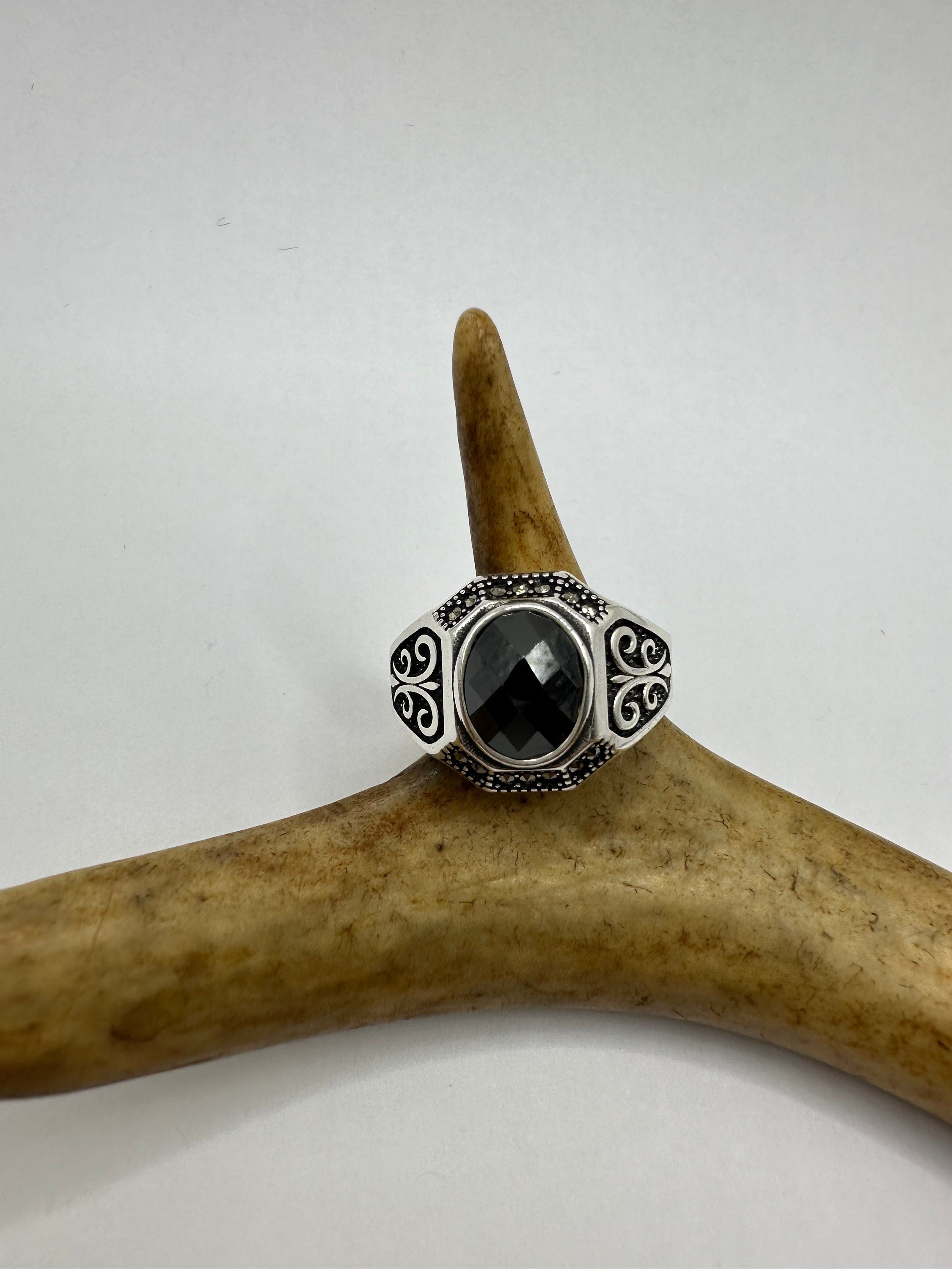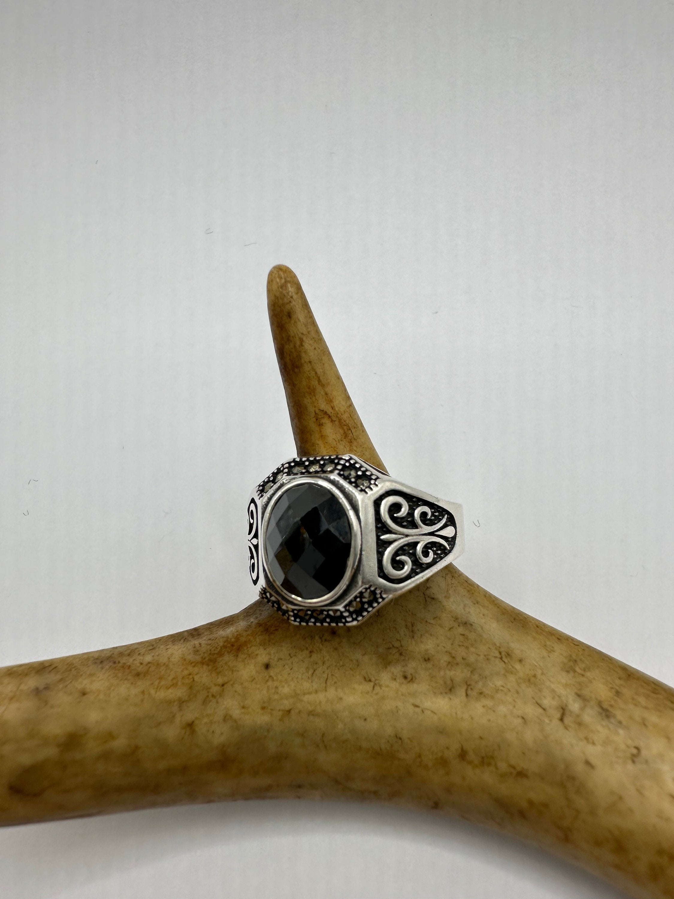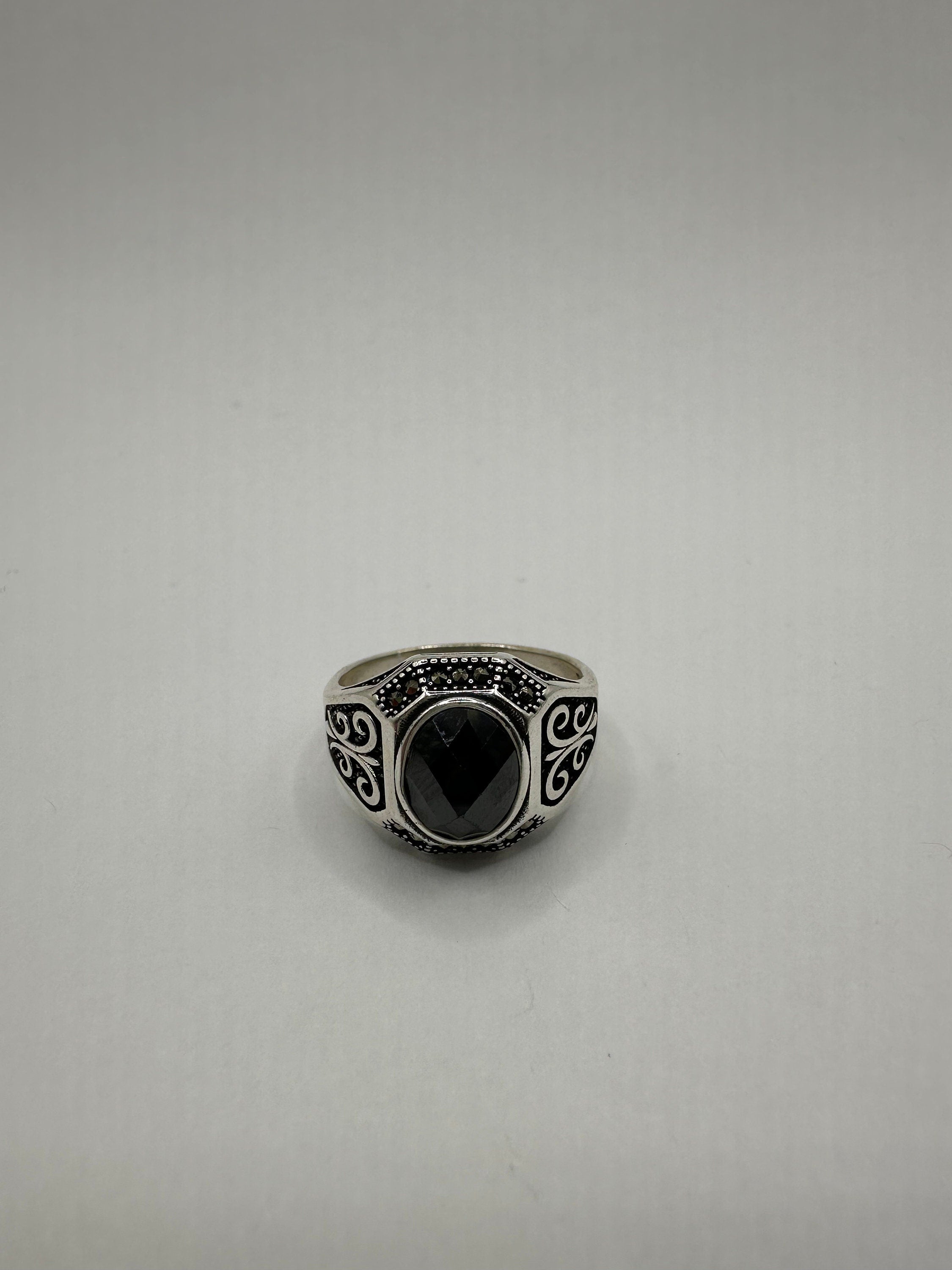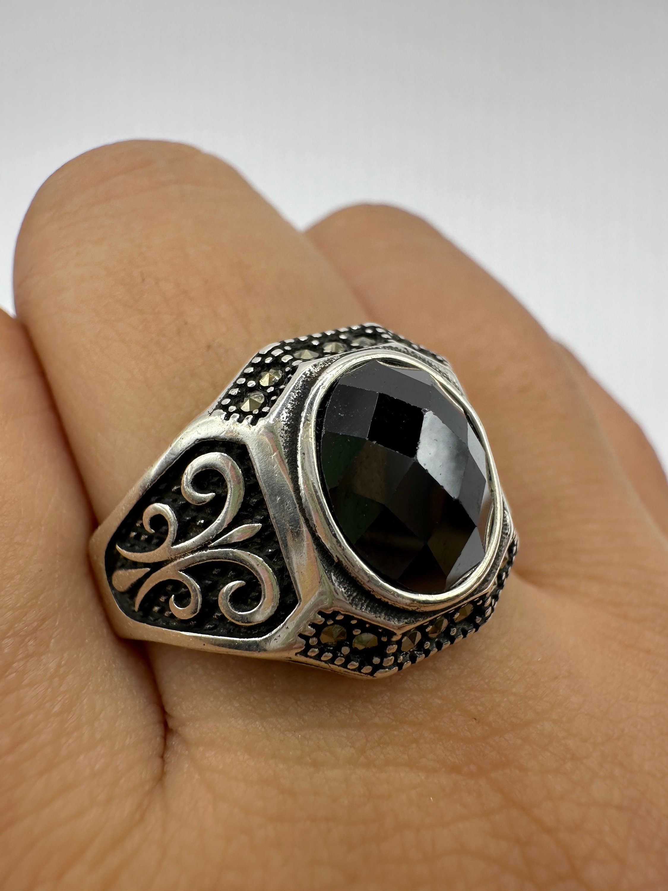 Vintage Hematite Crystal Men's Ring Band 925 Sterling Silver