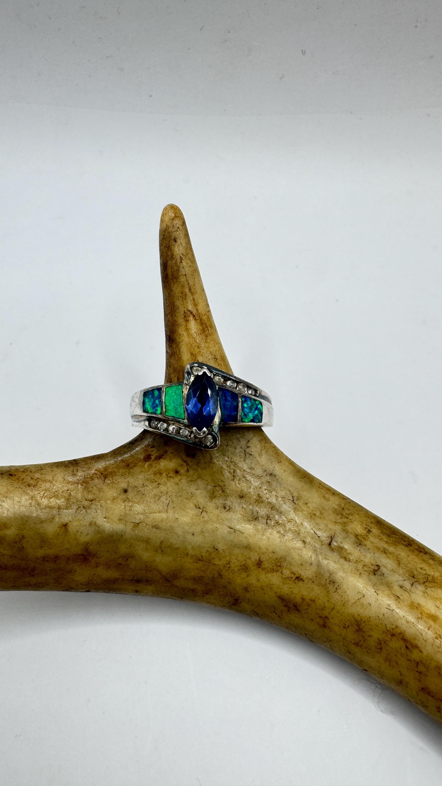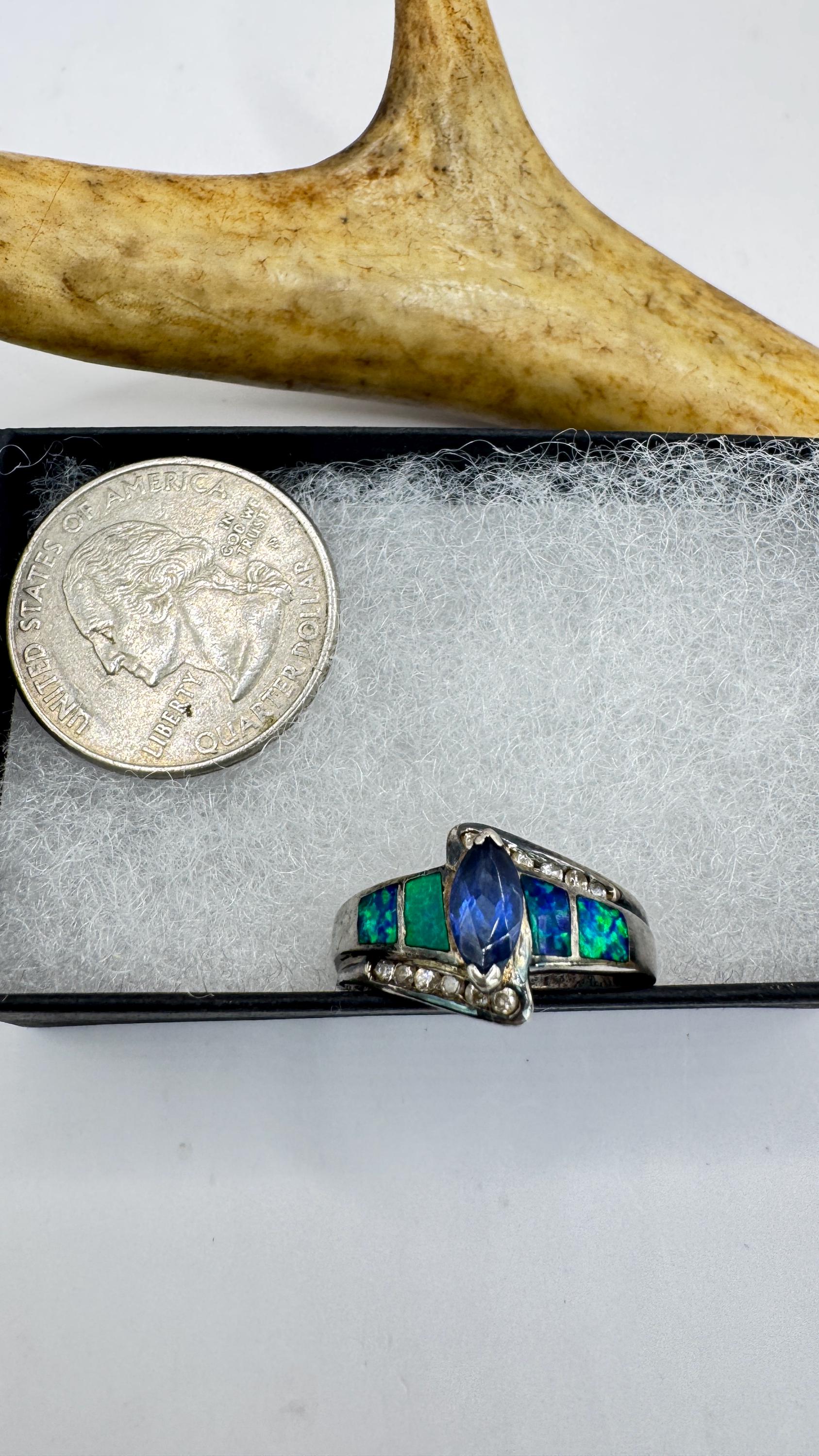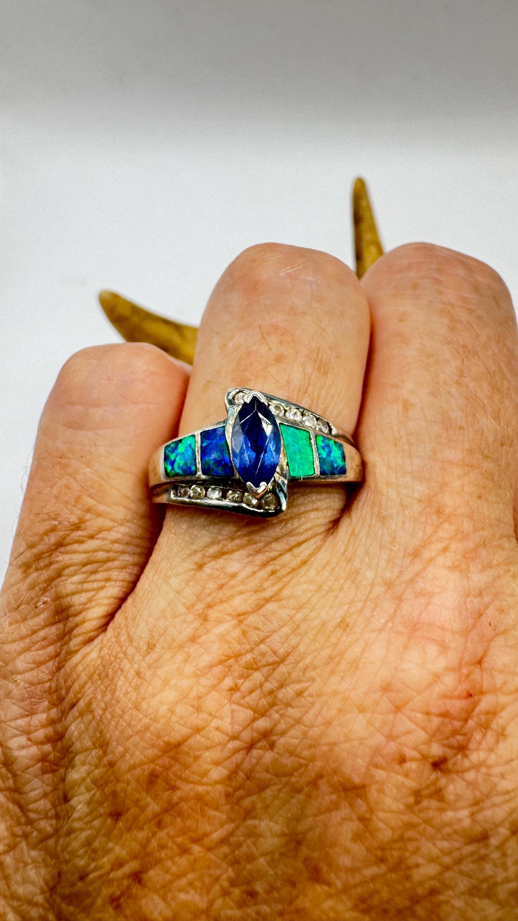 Vintage Blue opal and iolite cocktail Ring Band 925 Sterling Silver Deep blue iolite set in 925 Sterling Silver promise... Read more