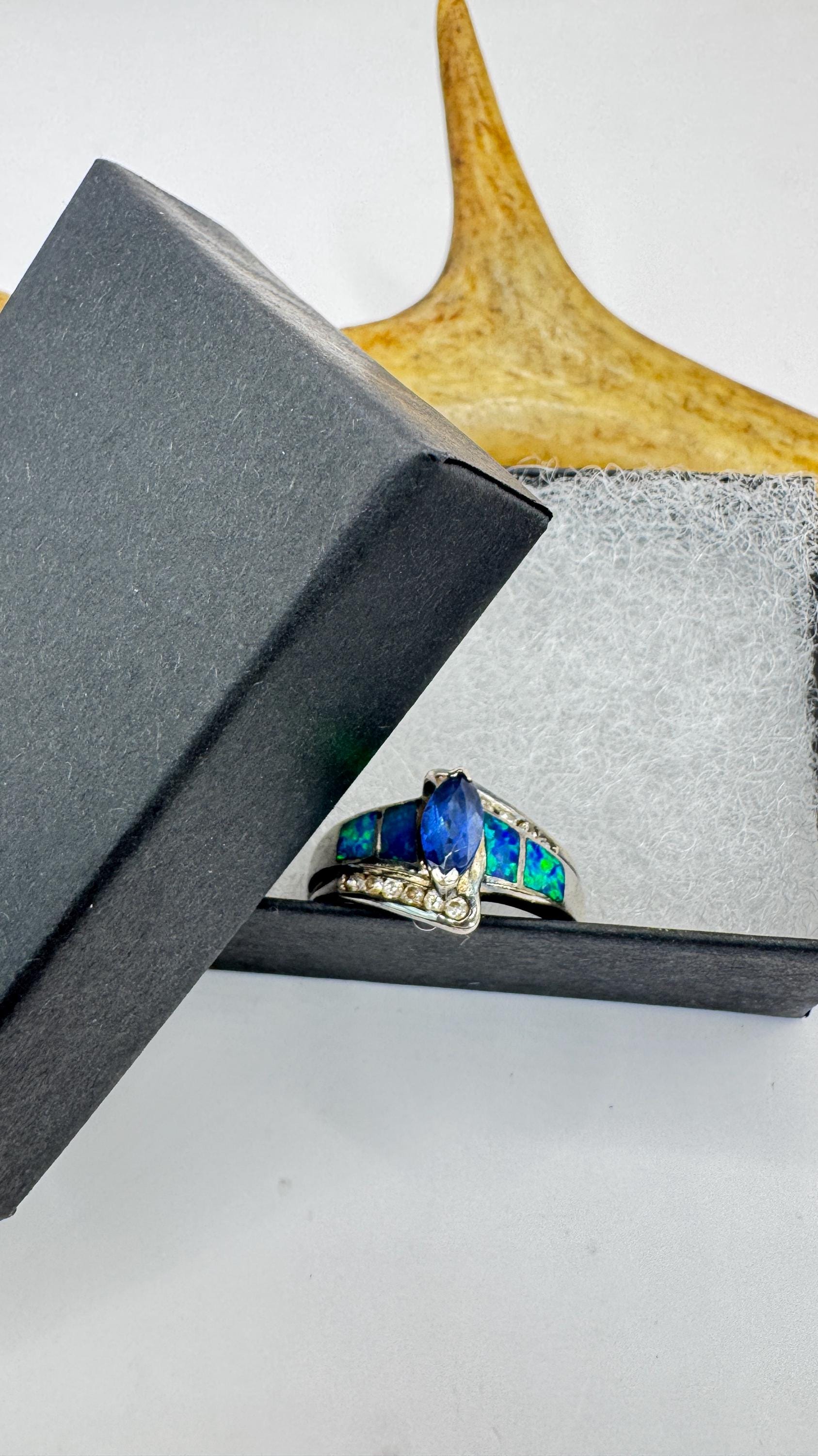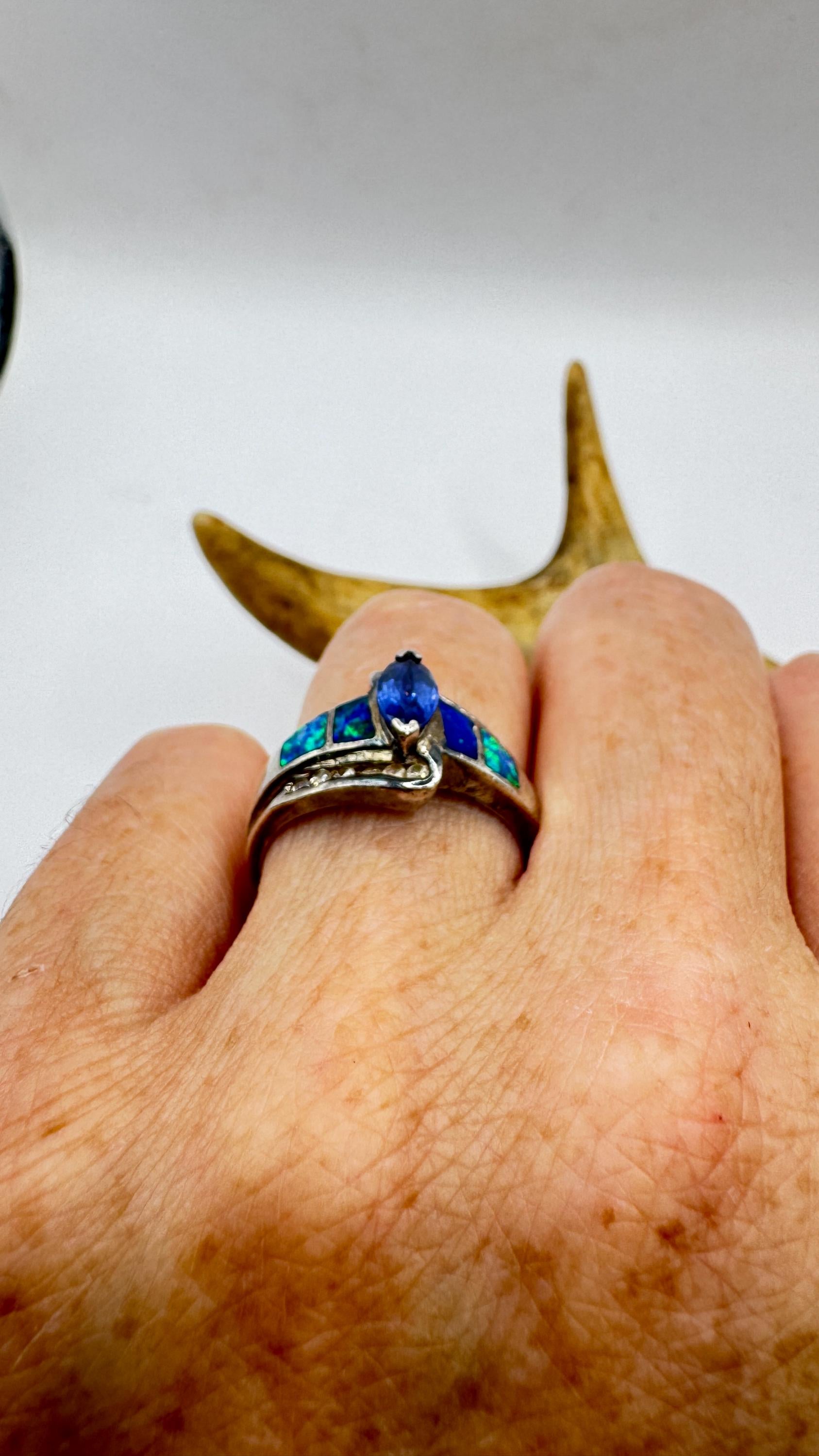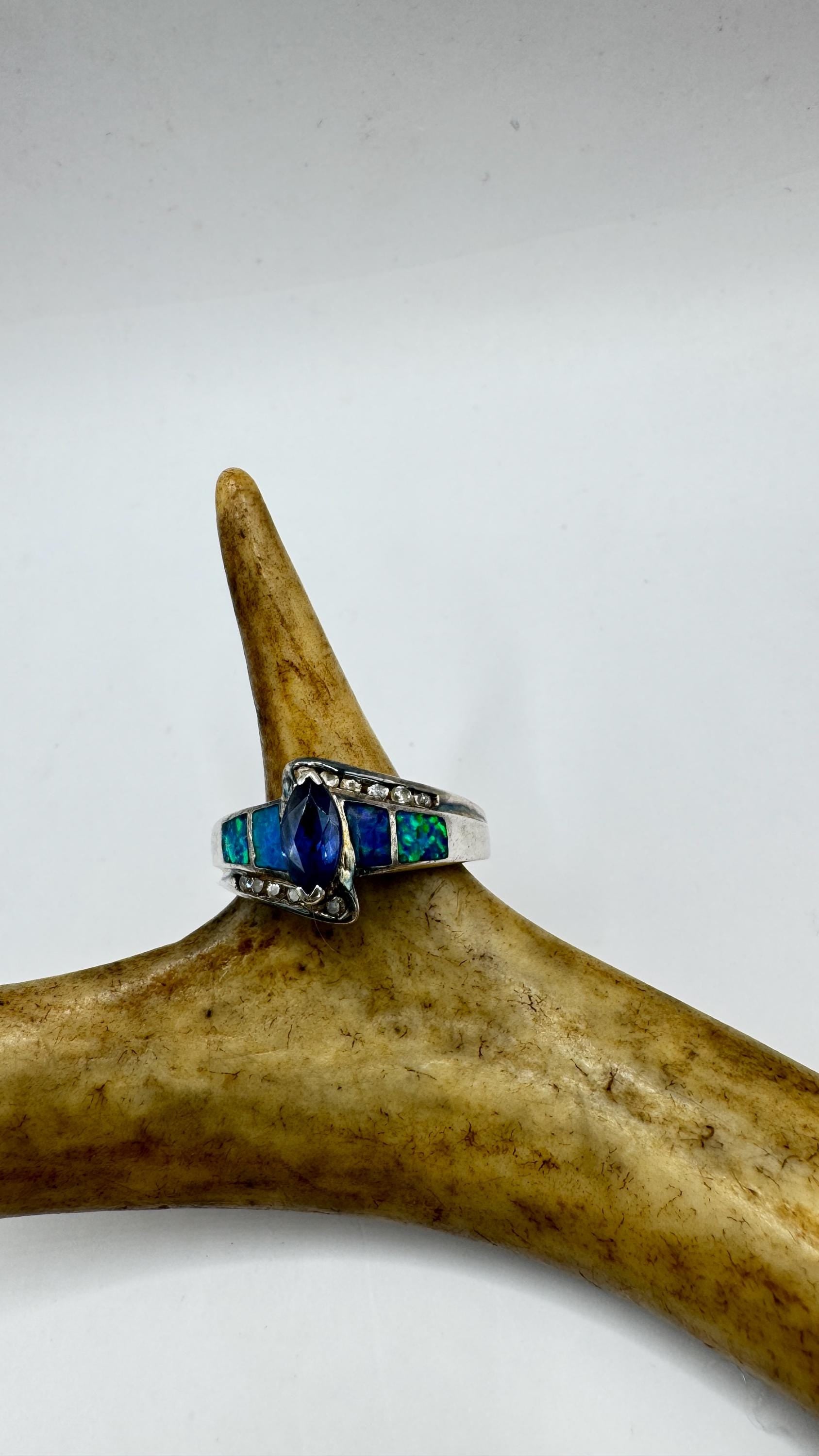 Vintage Blue opal and iolite cocktail Ring Band 925 Sterling Silver Deep blue iolite set in 925 Sterling Silver promise... Read more
