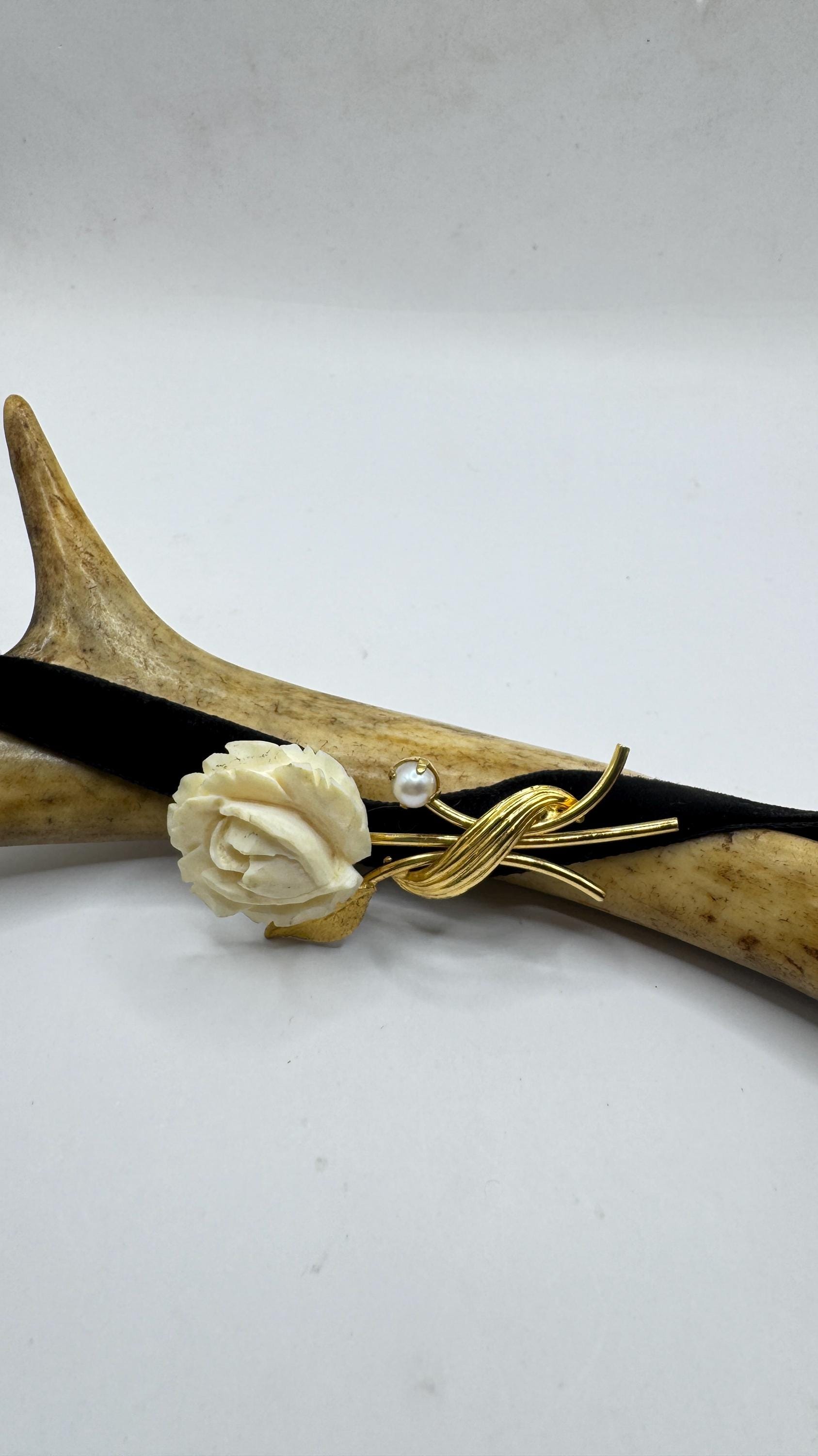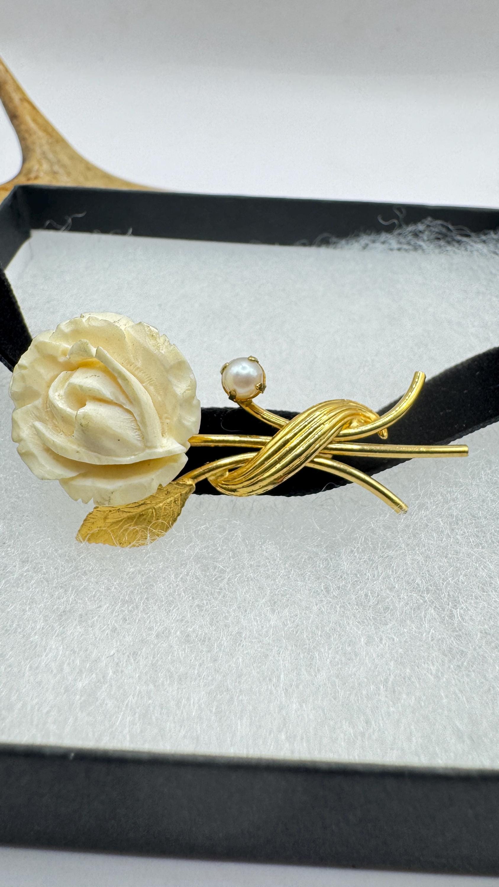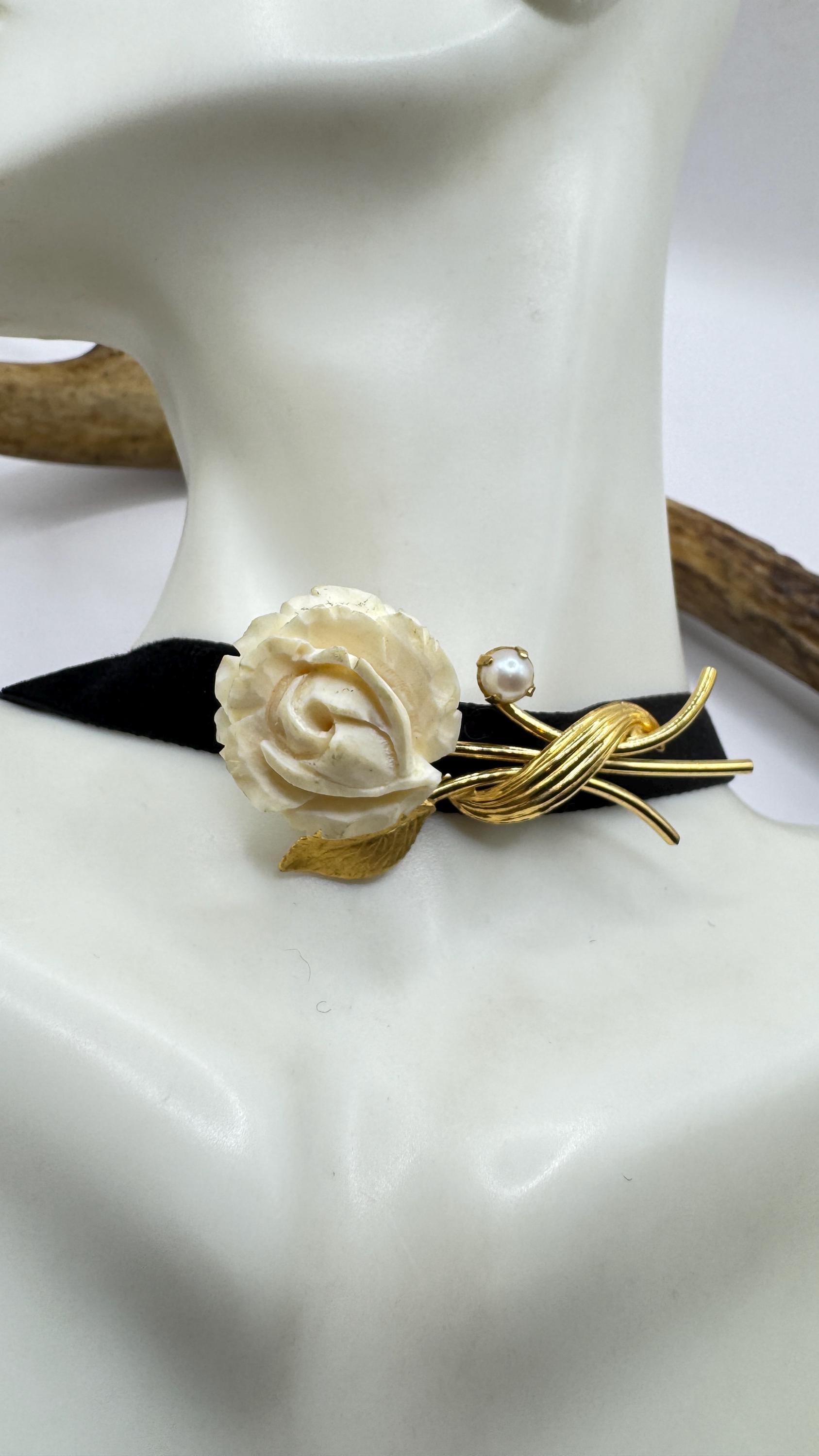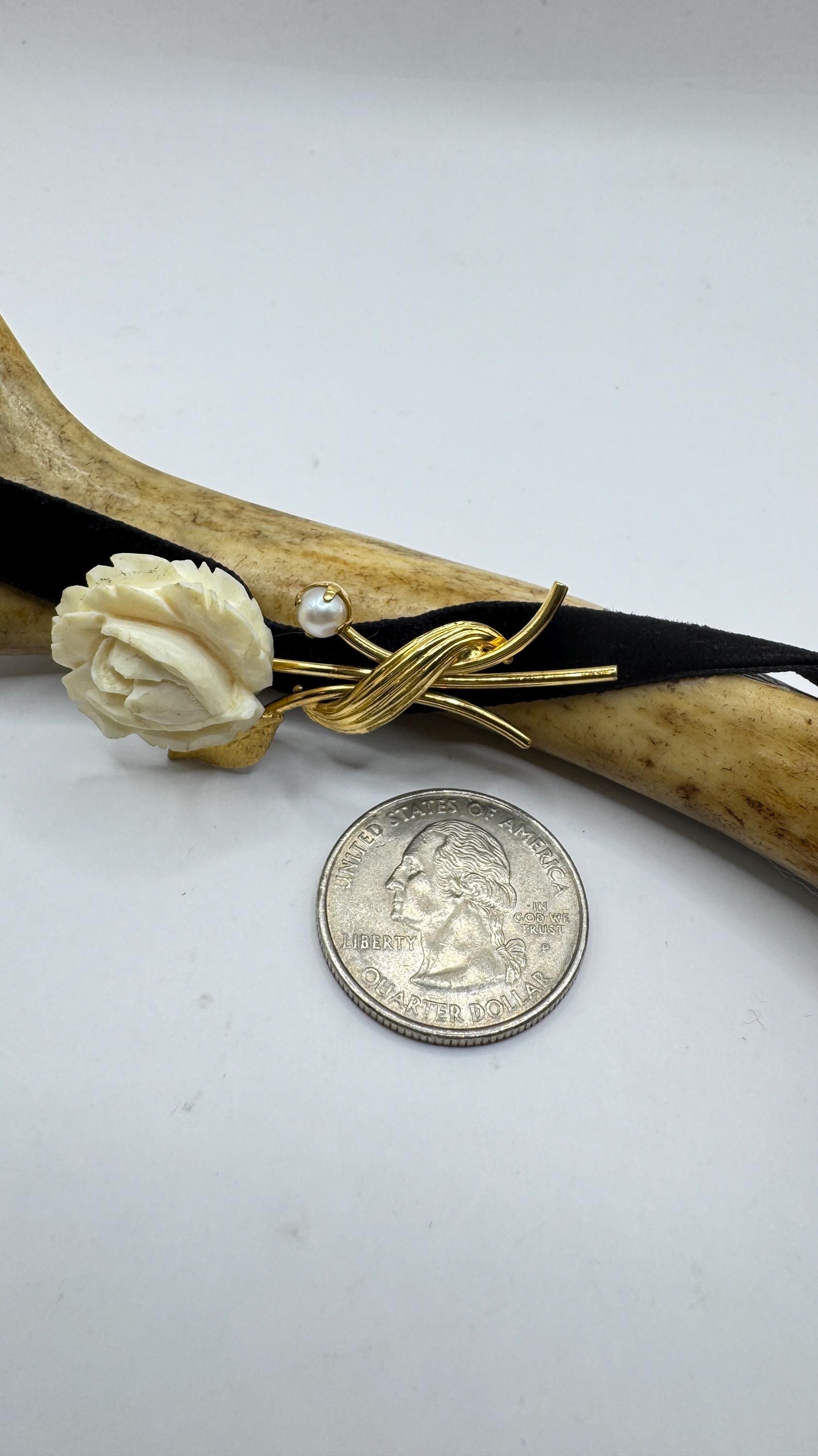 Vintage ivory rose brooch pin in Gold filled setting with genuine white pearl Over an inch long scatter pin Great... Read more