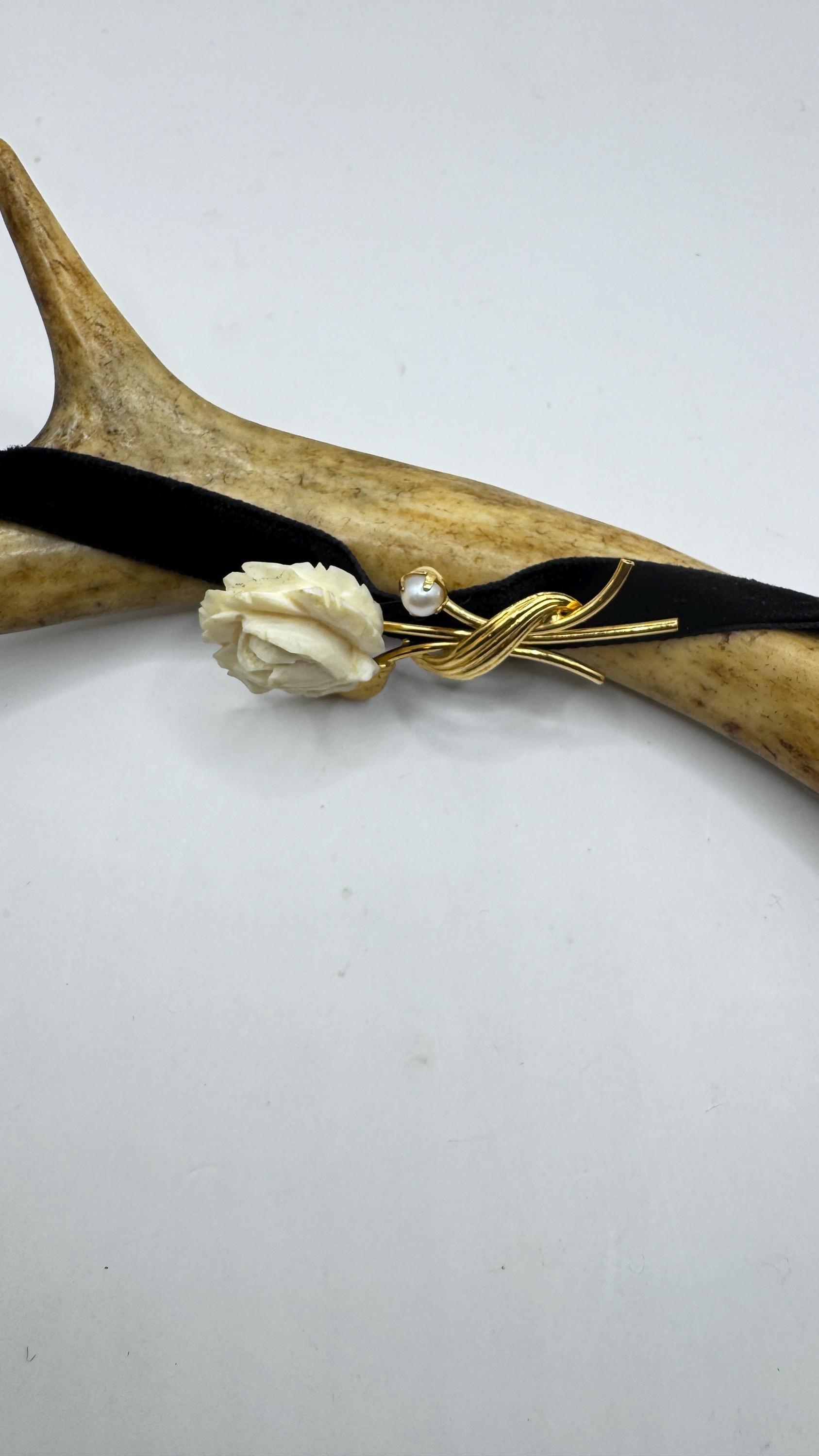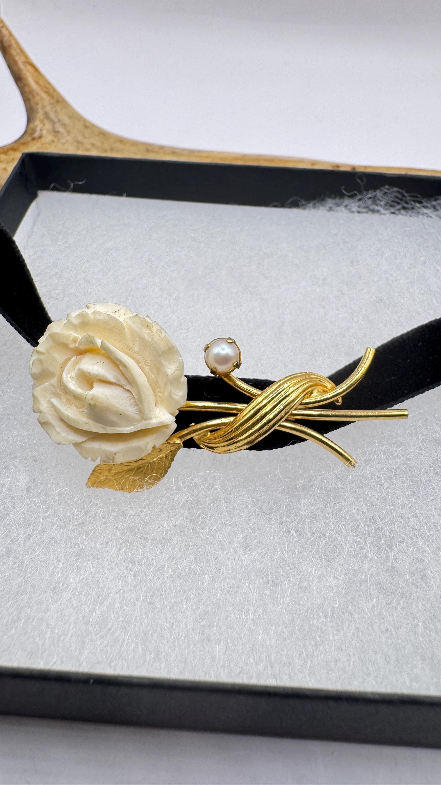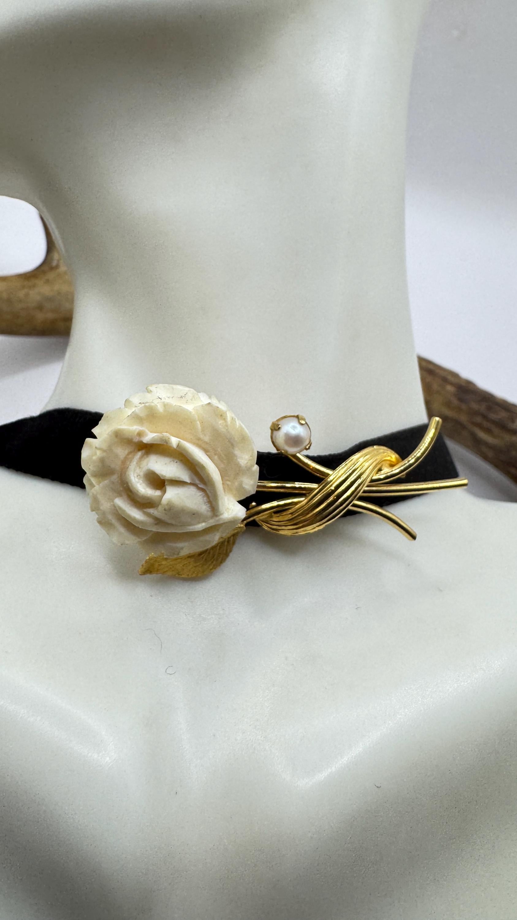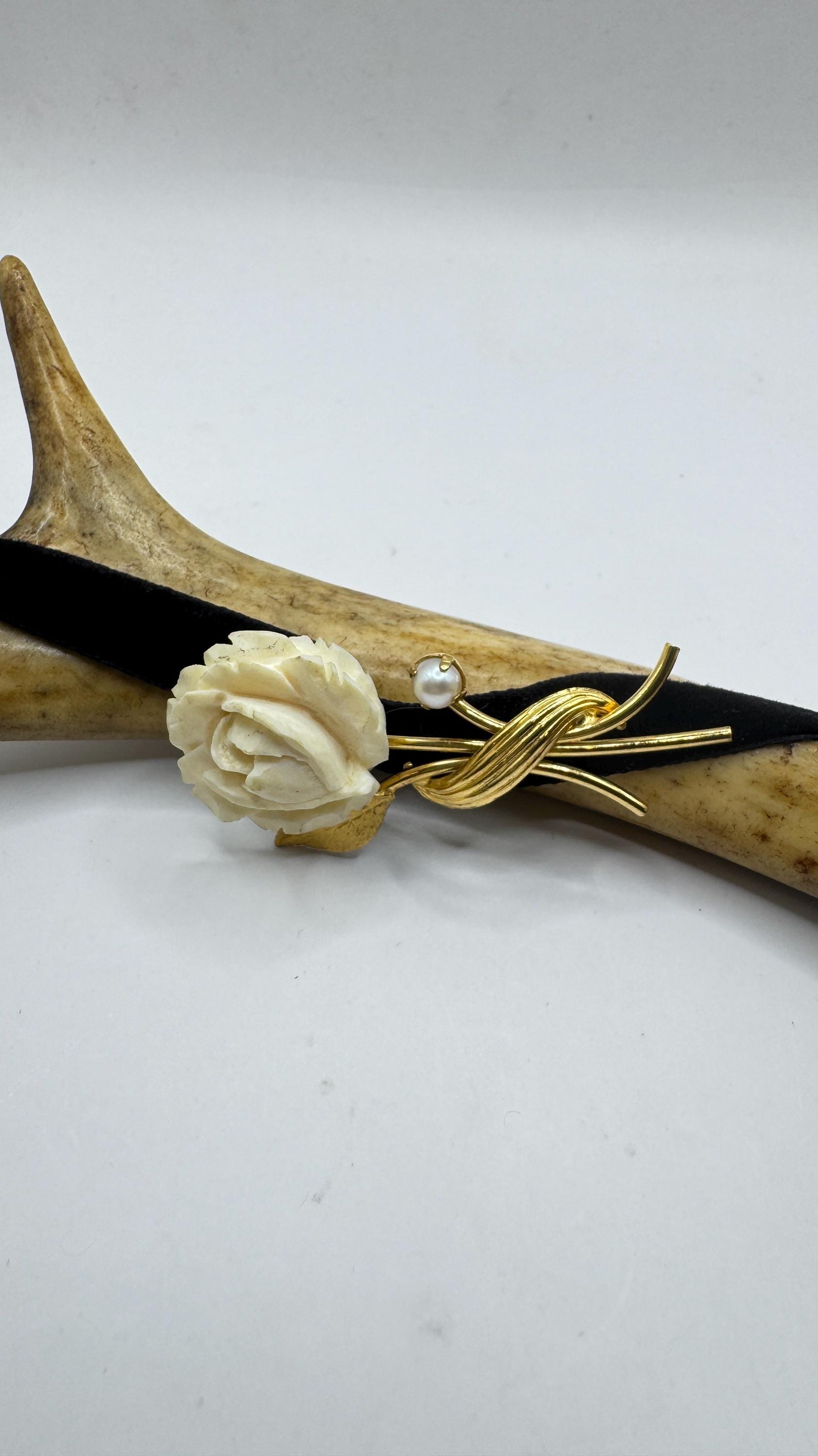 Vintage ivory rose brooch pin in Gold filled setting with genuine white pearl Over an inch long scatter pin Great... Read more