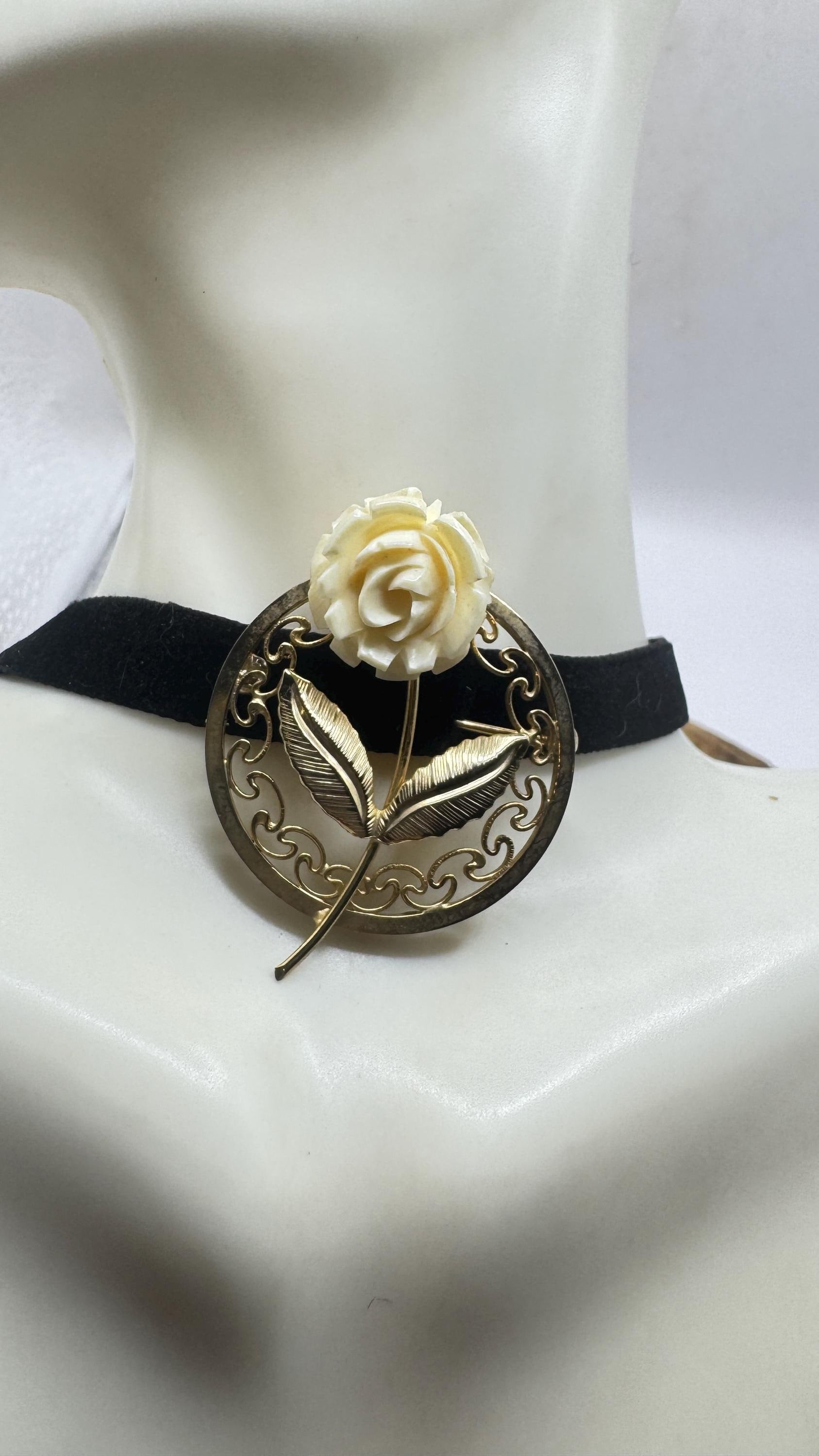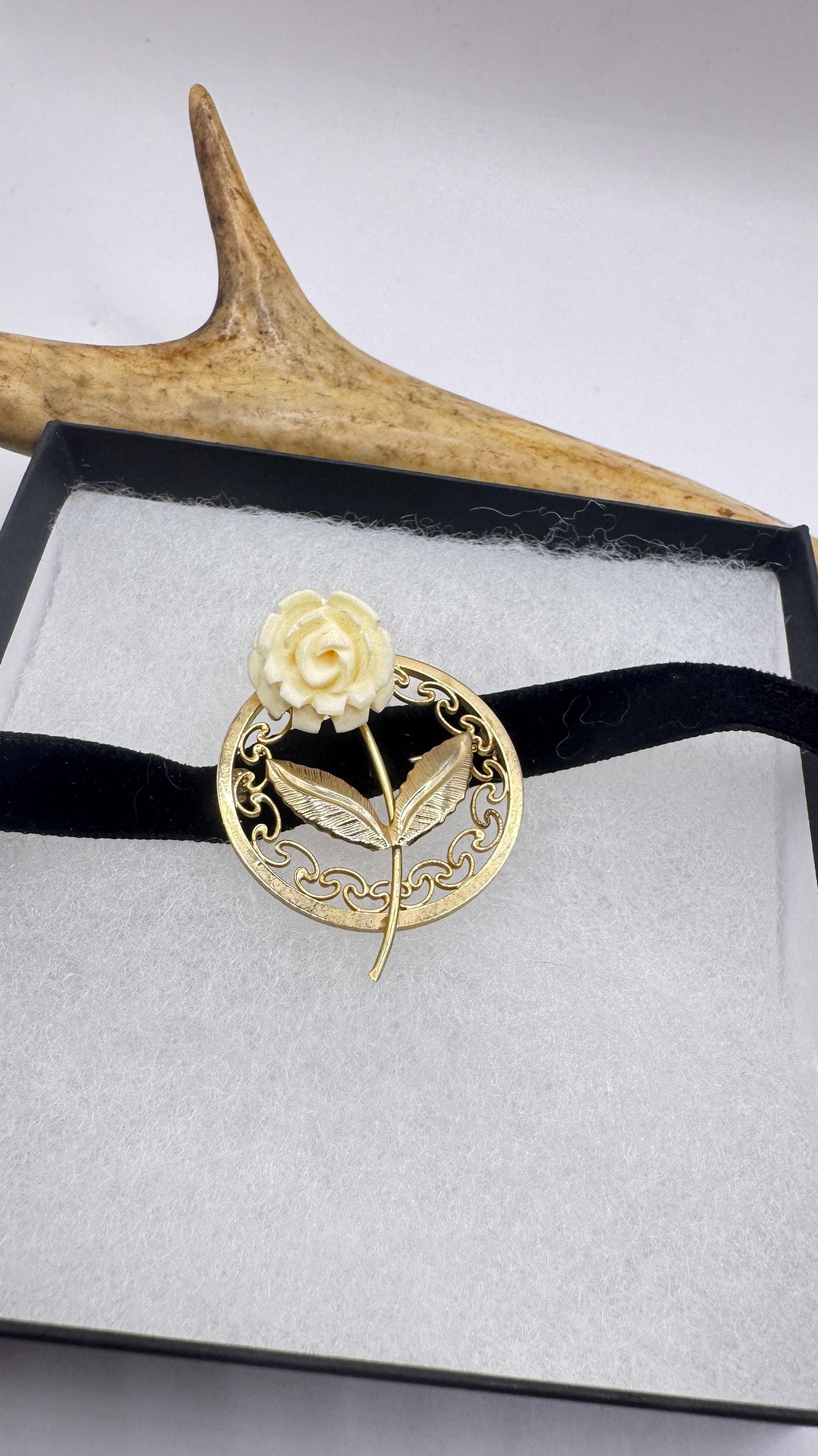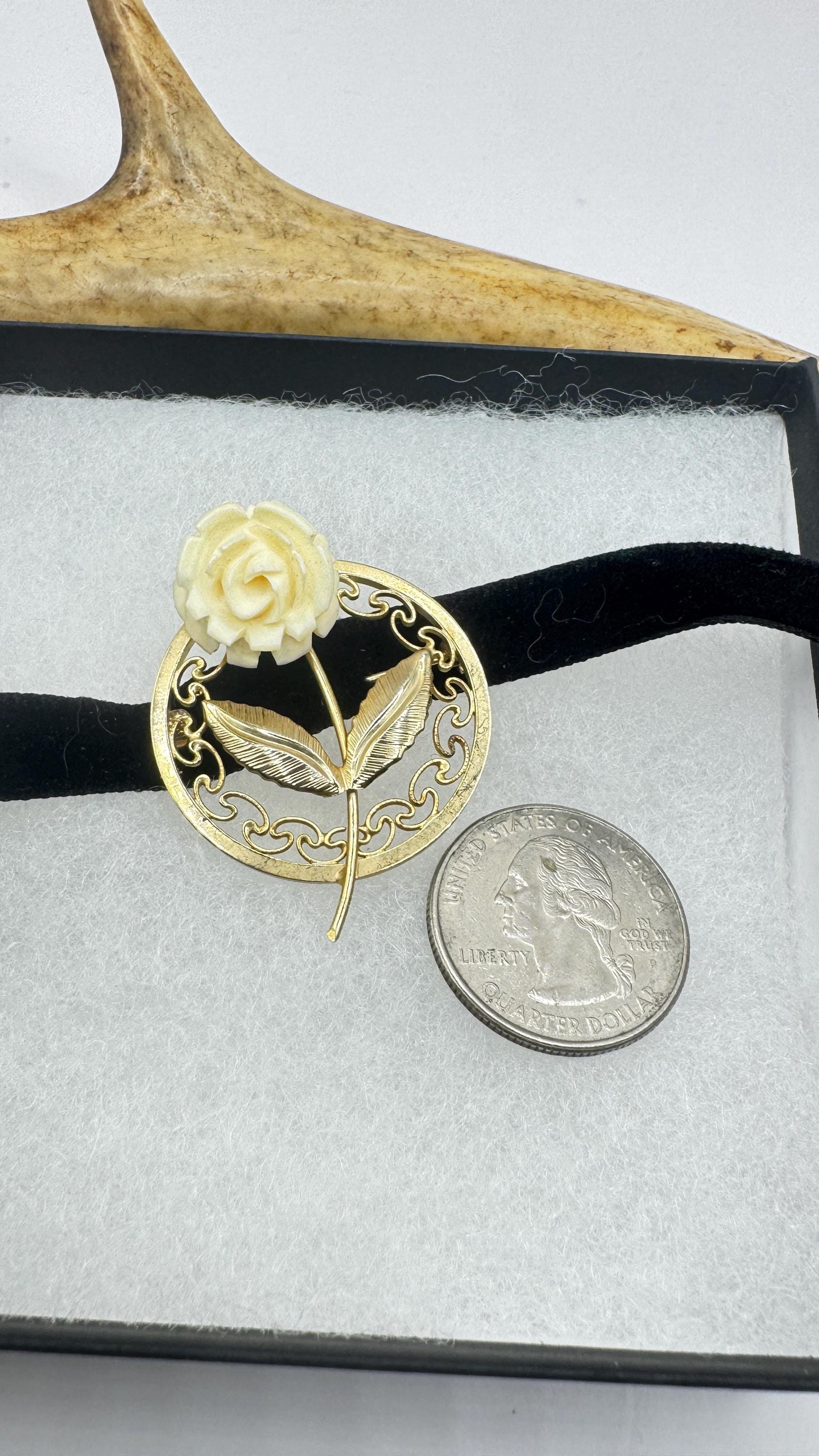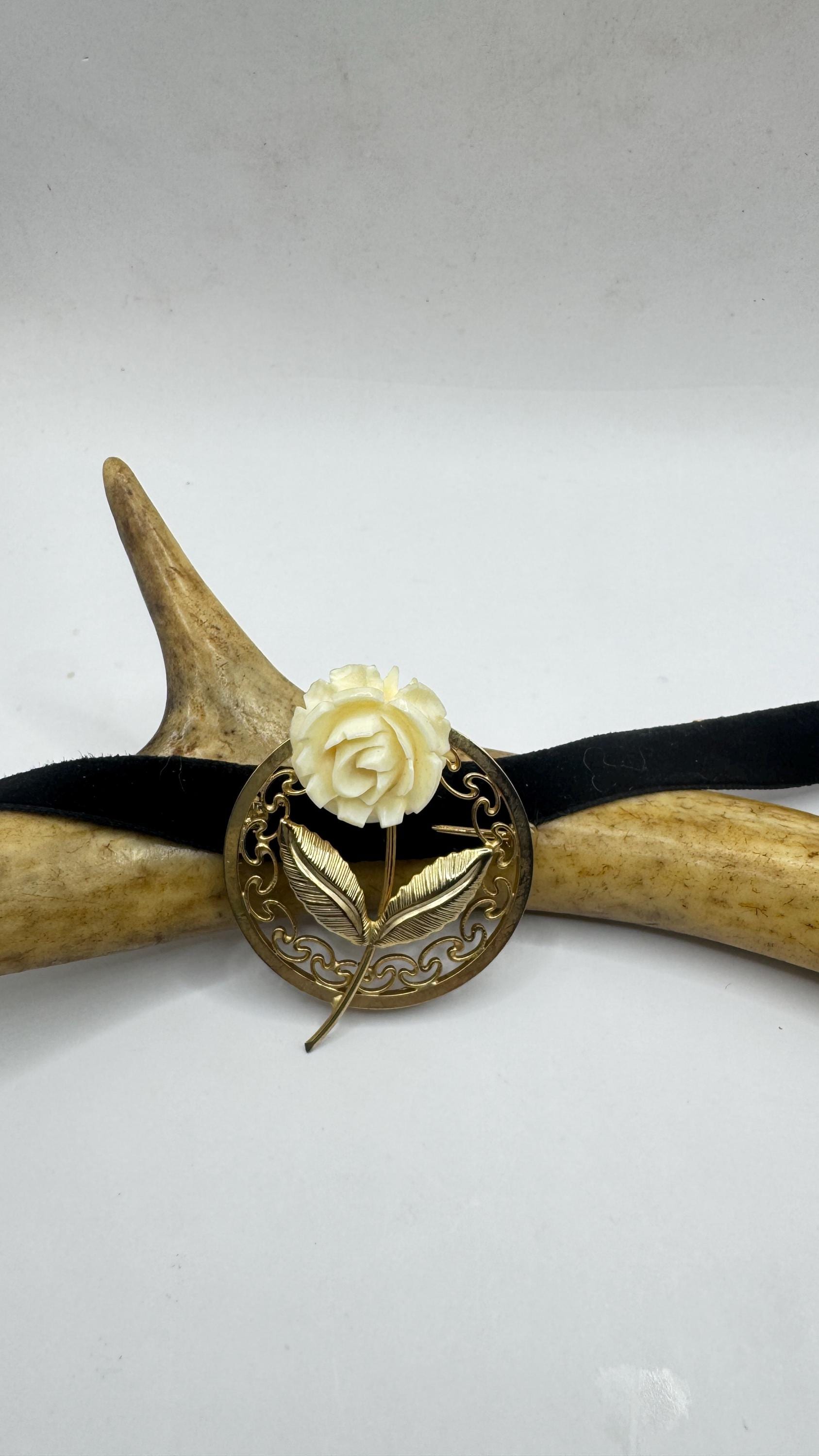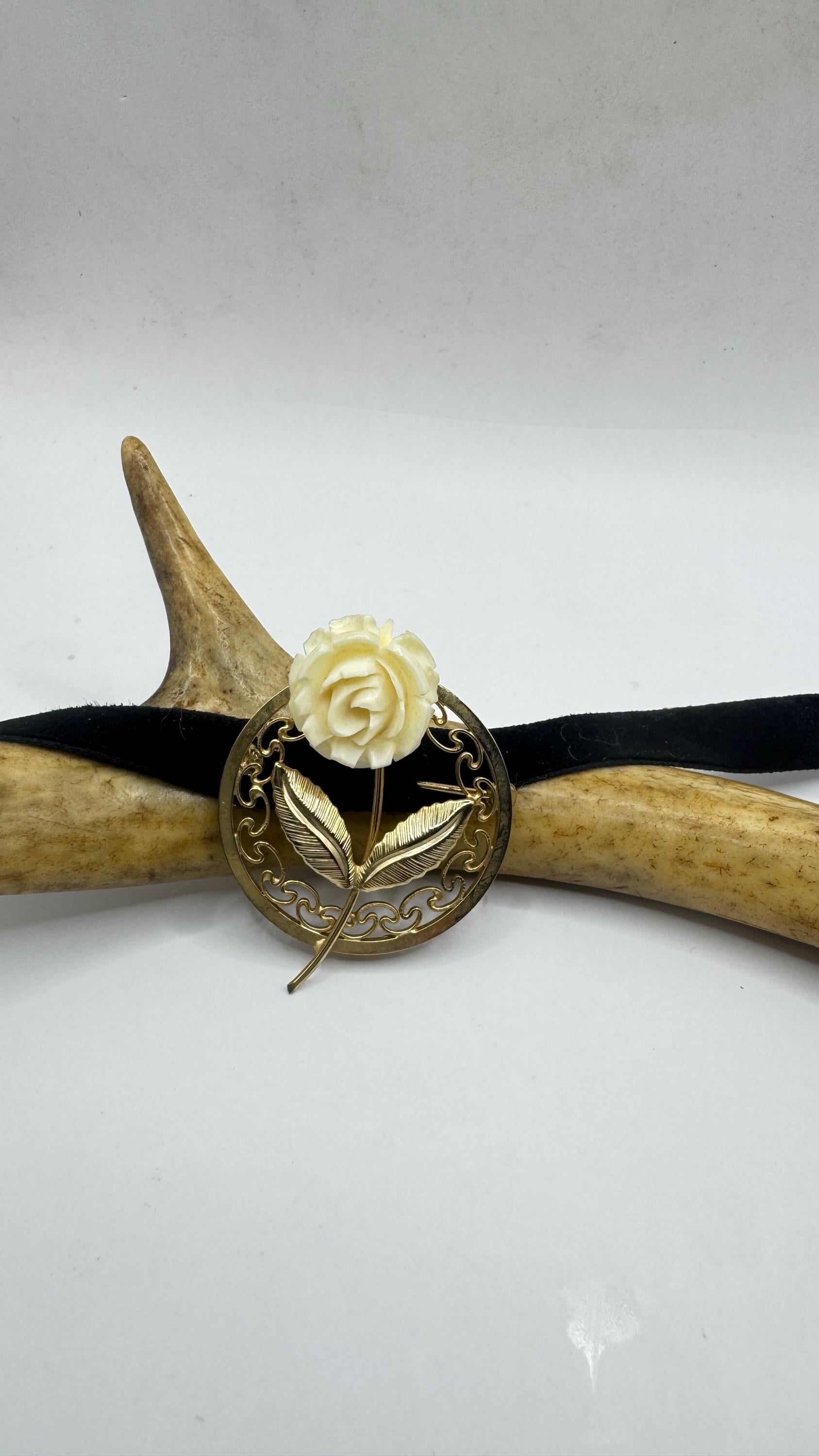 Vintage ivory rose brooch pin in Gold filled setting with genuine white pearl Over an inch long scatter pin Great... Read more