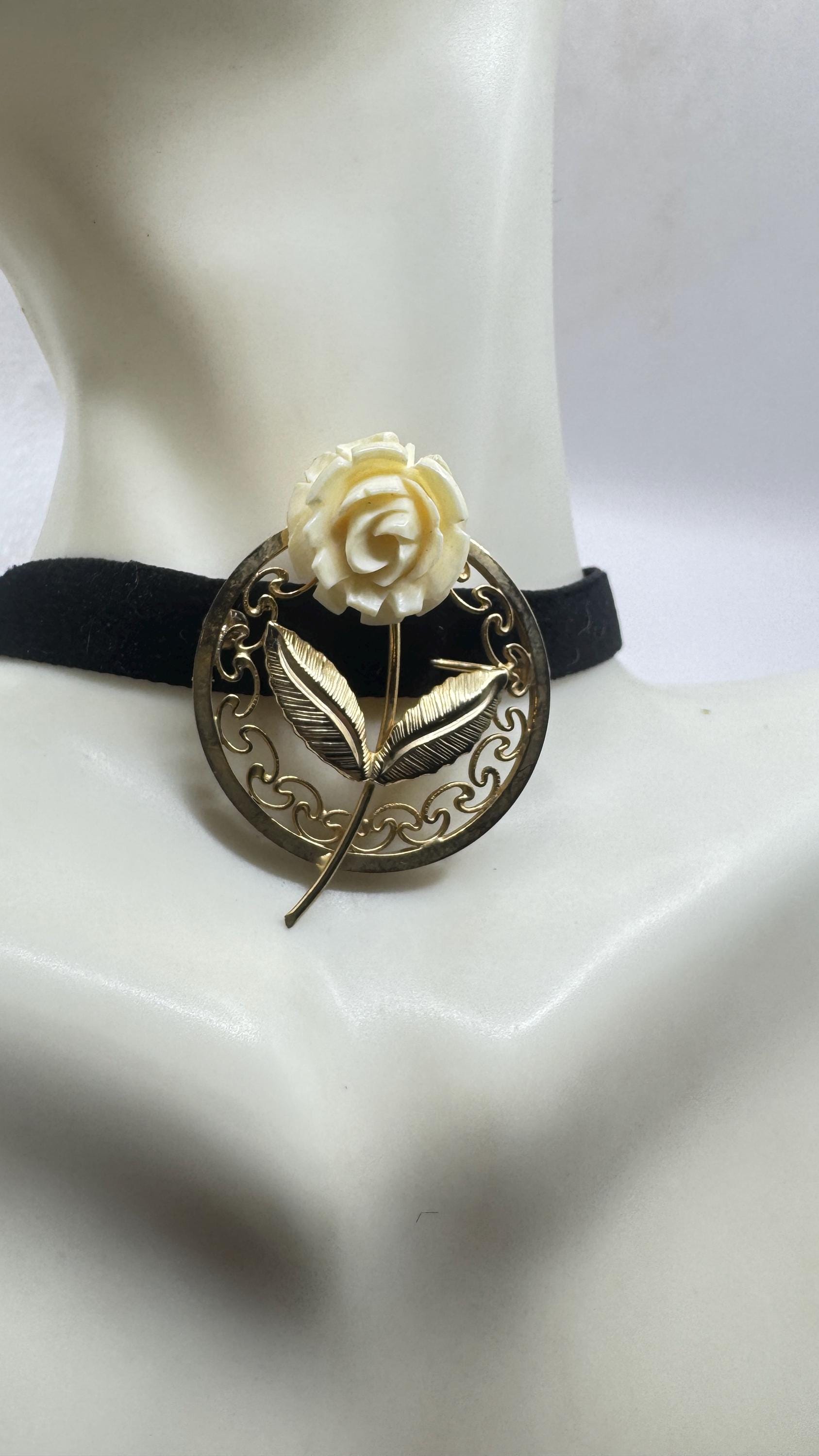 Vintage Rose Brooch – Ivory Flower Pin With Gold Filled Setting & Pearl Accent