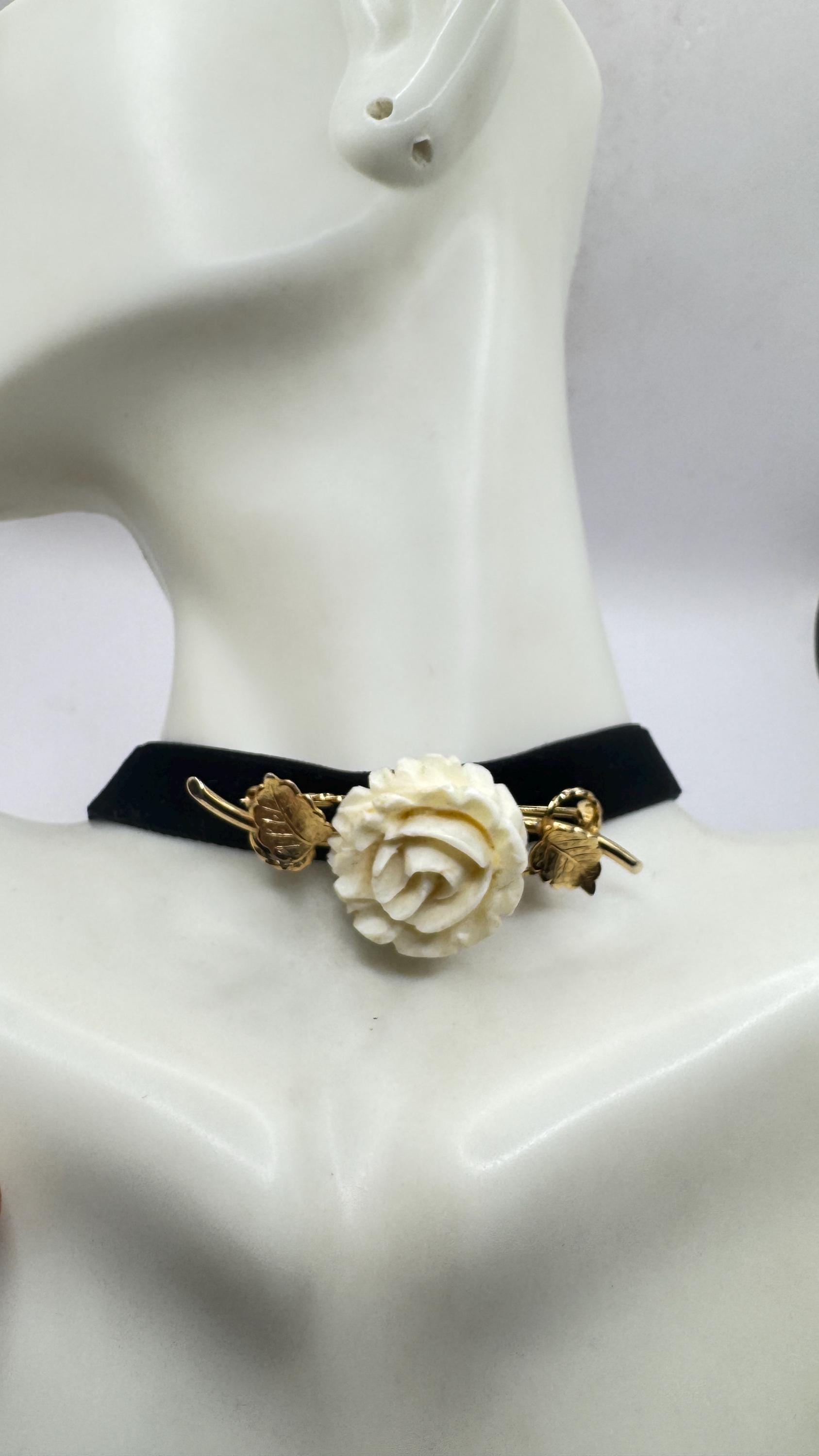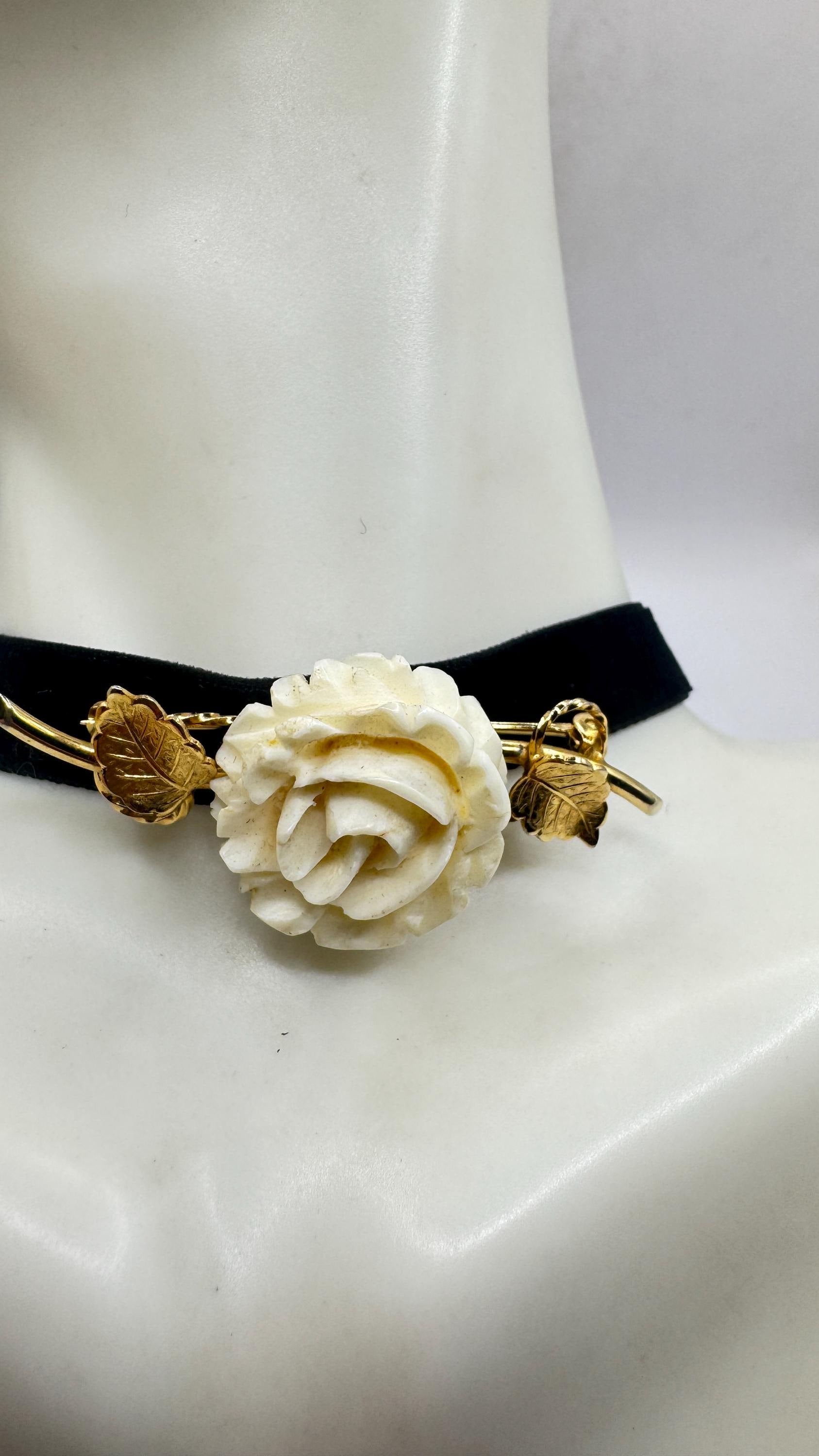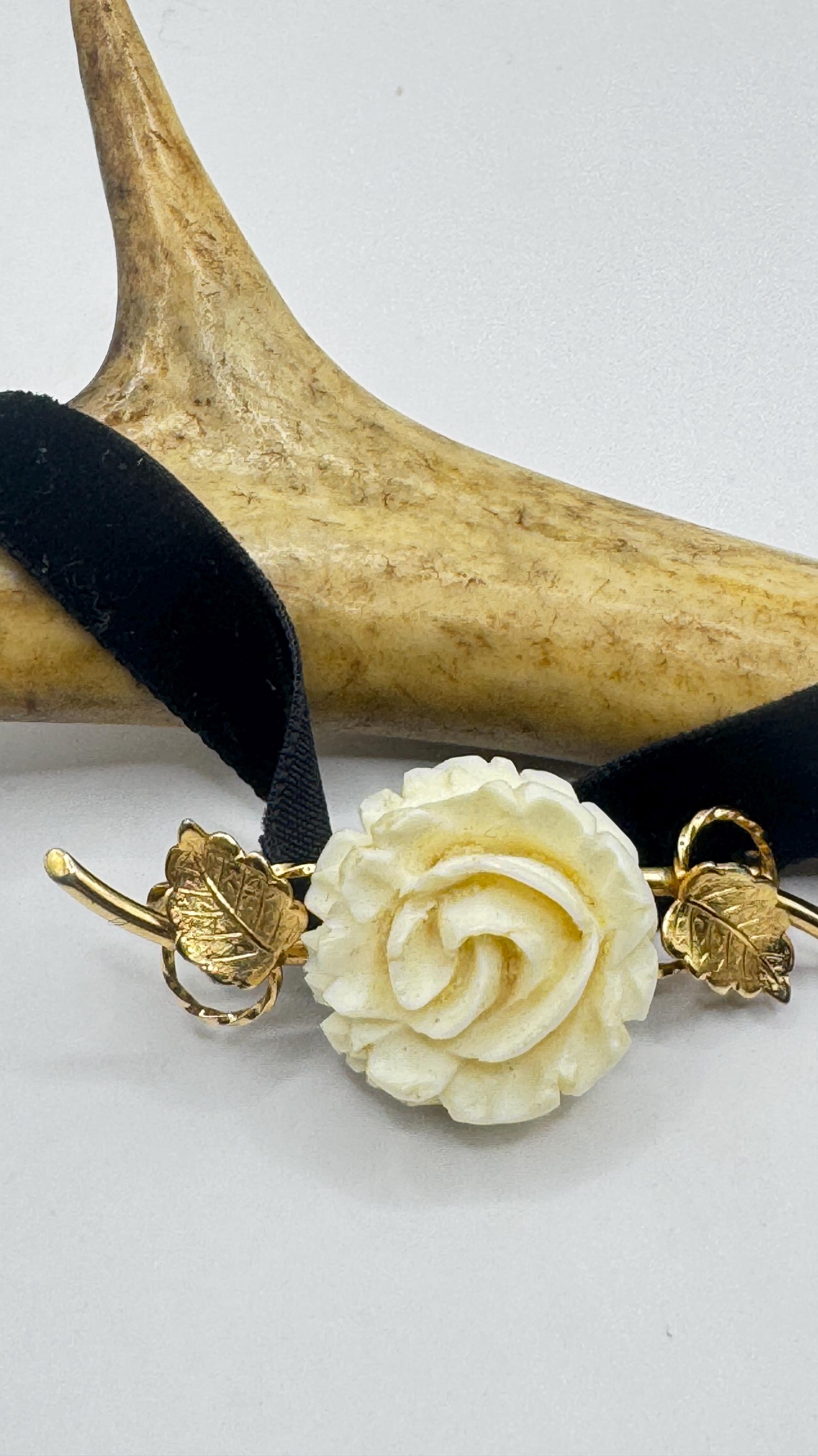 Vintage Ivory Flower Rose Brooch Pin Gold Filled