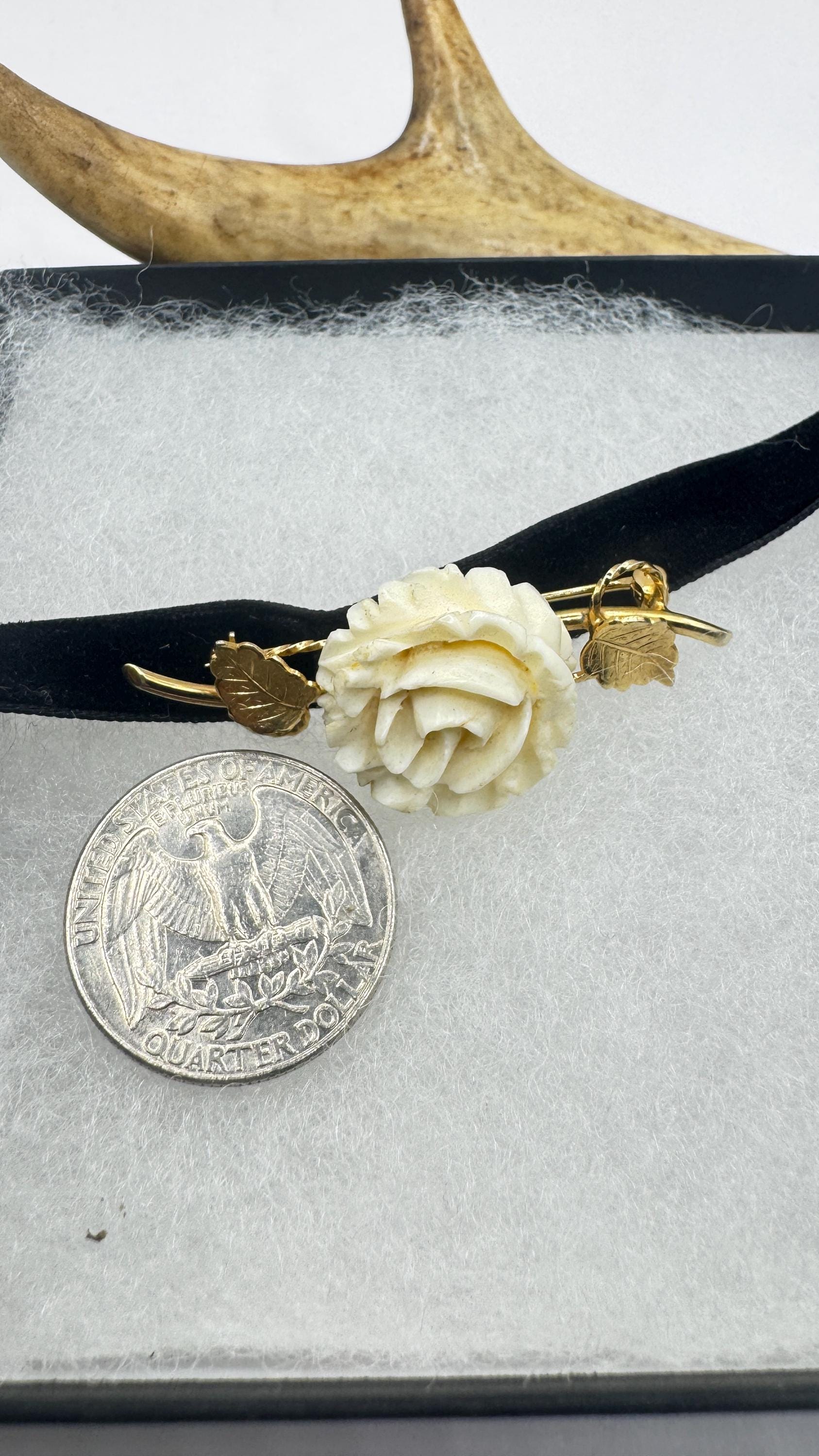 Vintage ivory rose brooch pin in Gold filled setting with genuine white pearl Over an inch long scatter pin Great... Read more