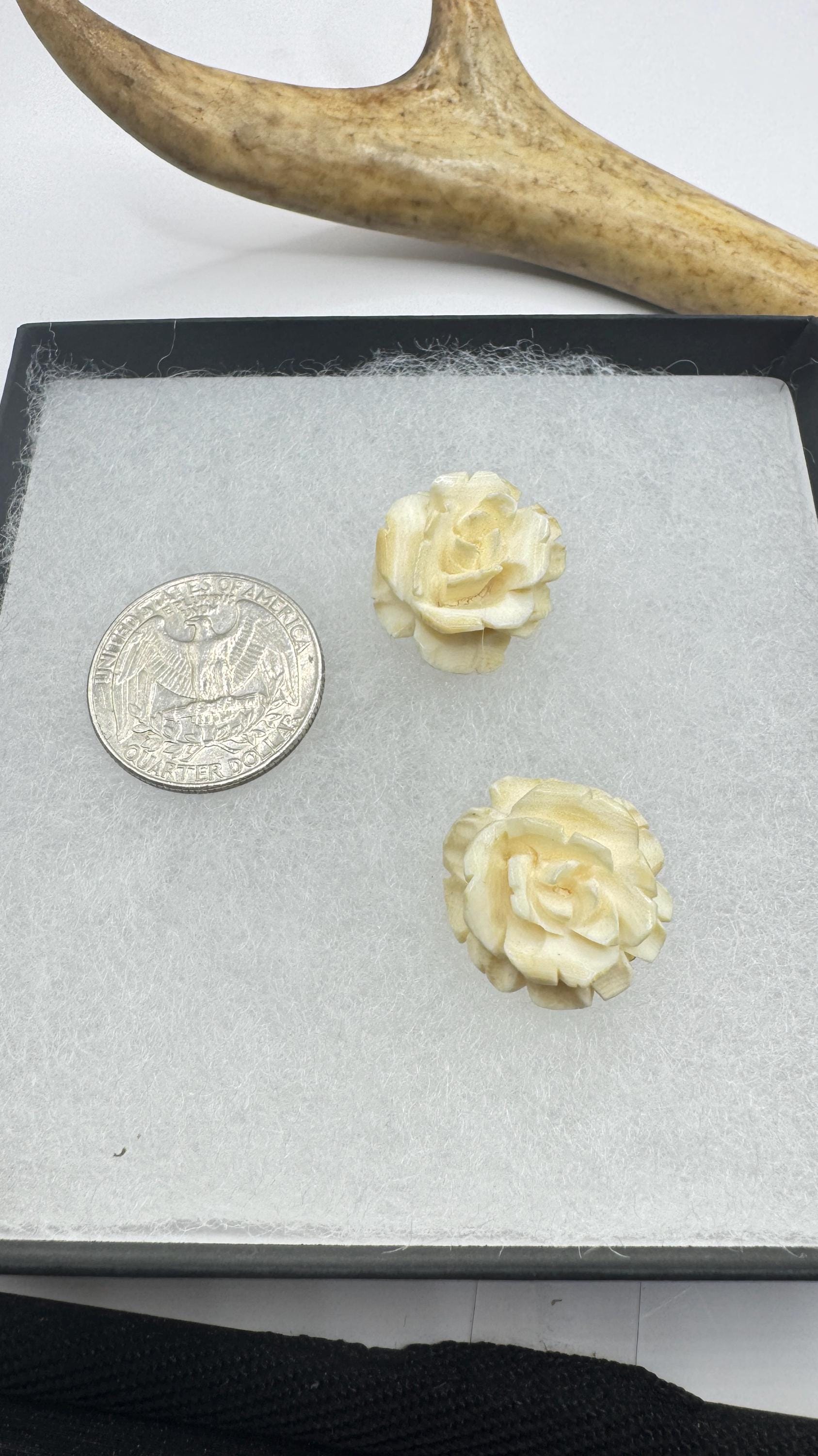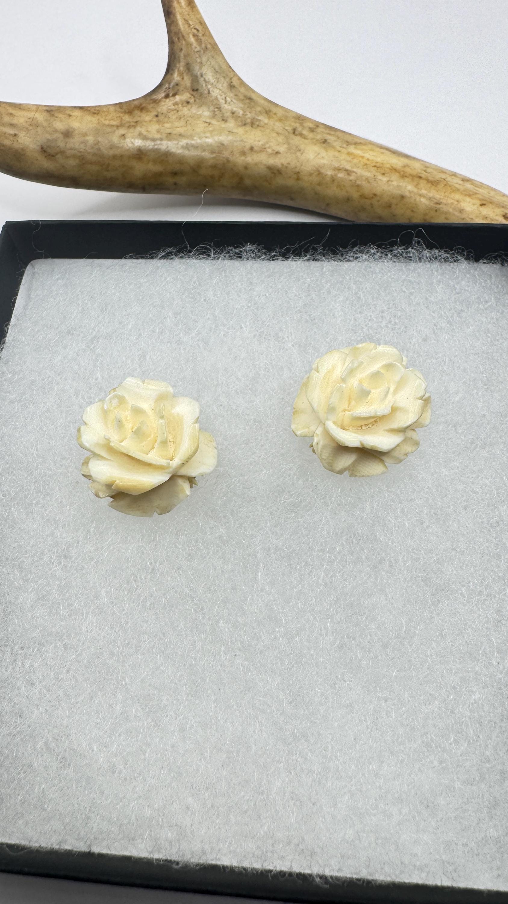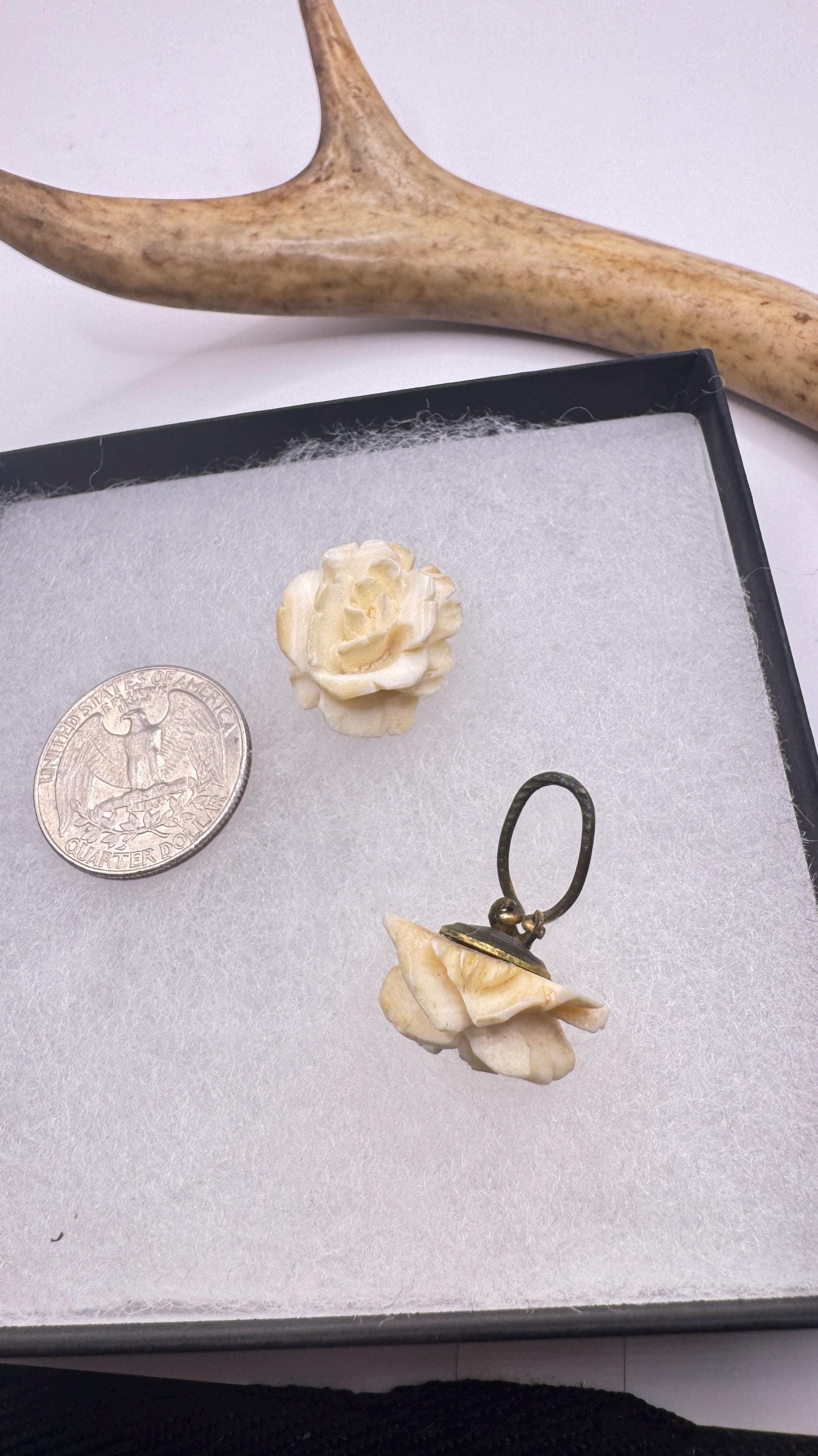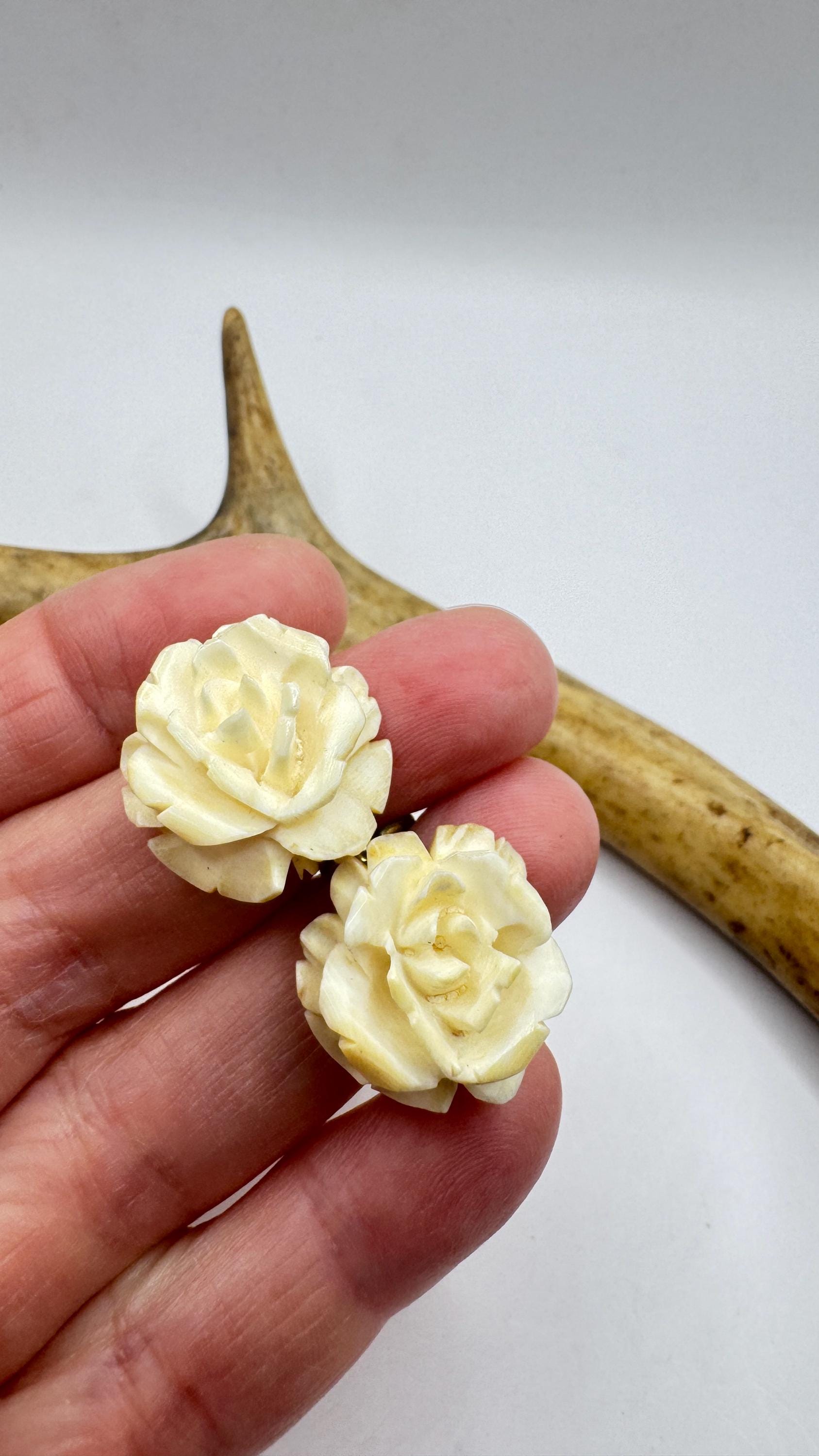 Vintage ivory rose Screwback clip on earrings Gold filled setting matching rose brooch available for set Thank you for supporting... Read more