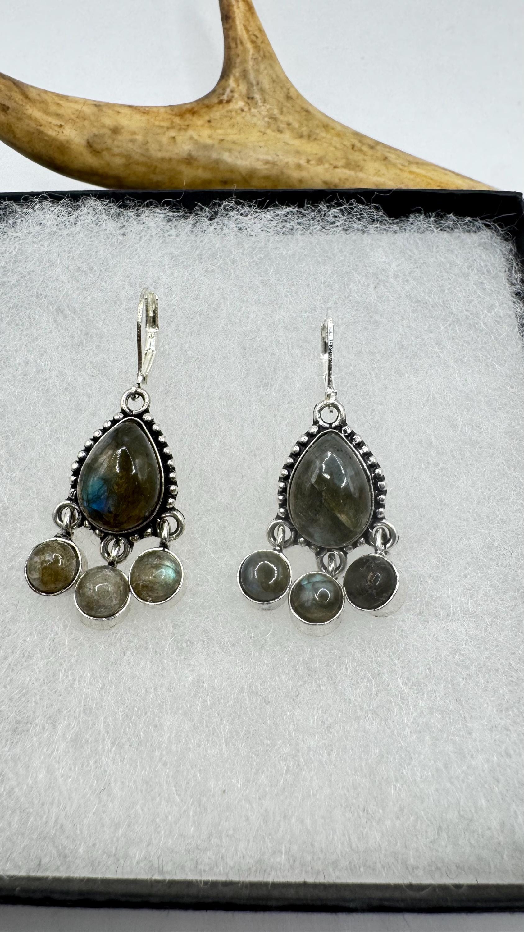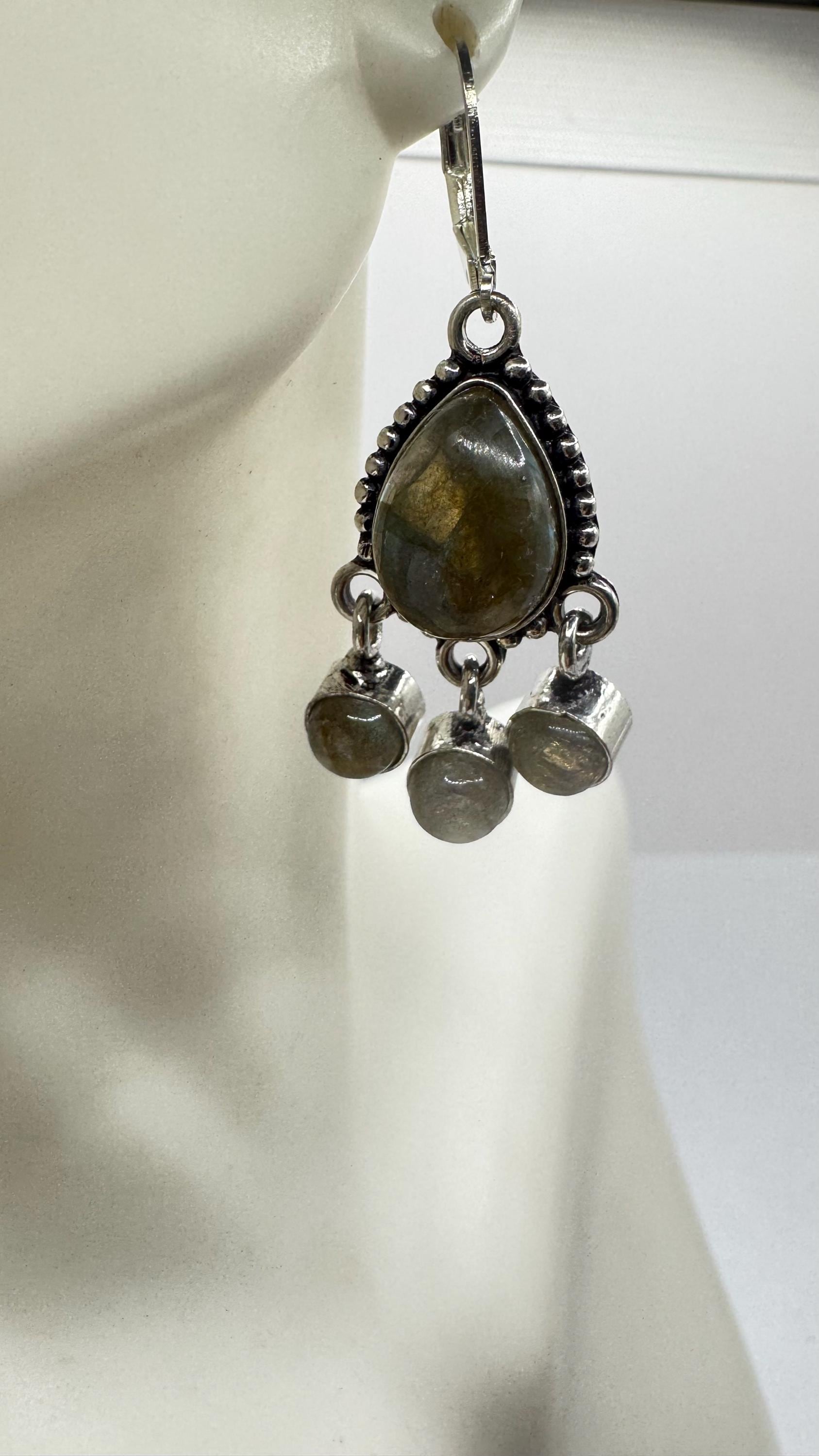 Vintage Labradorite Dangle Earrings Sterling Silver Design Statement Leverbacks