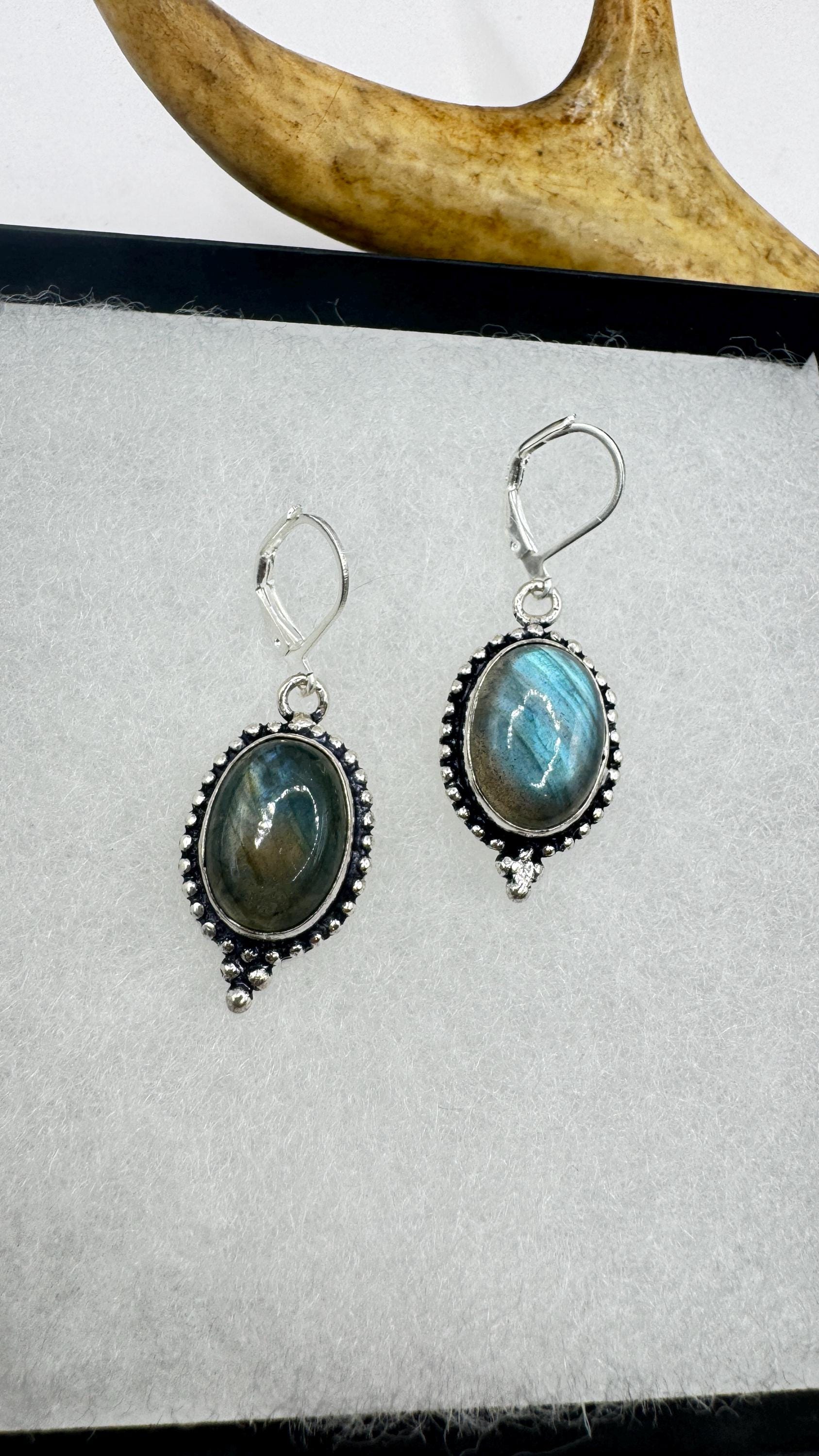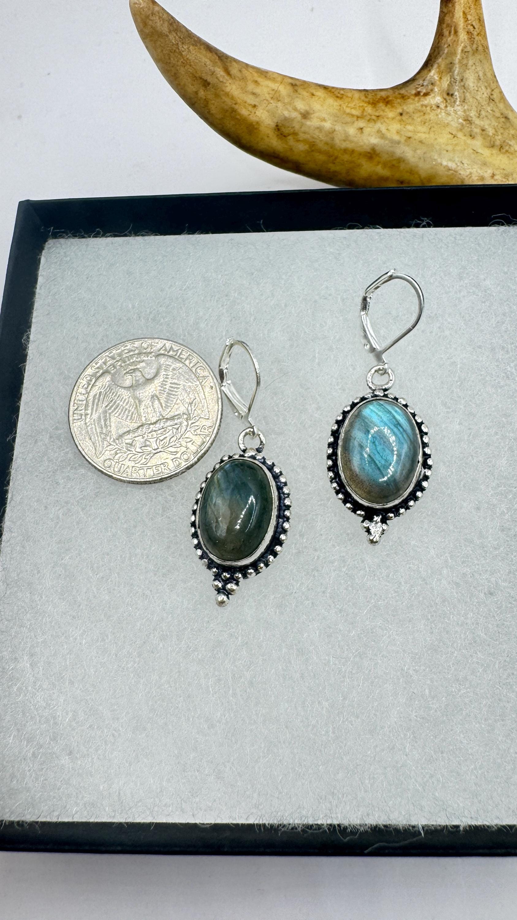 Vintage Labradorite Dangle Earrings Sterling Silver Leverbacks
