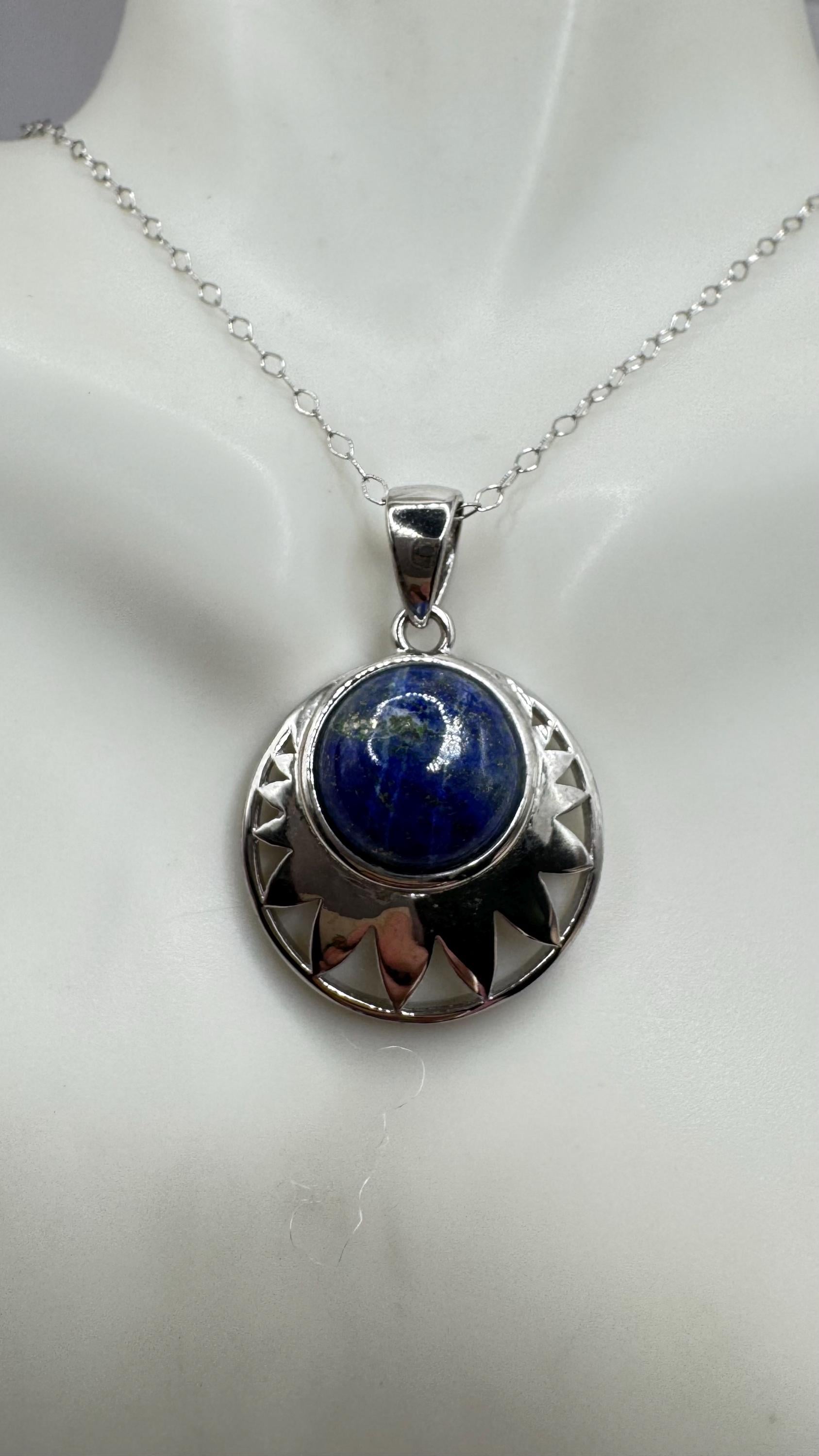 Vintage Lapis Lazuli Silver Gemstone Pendant