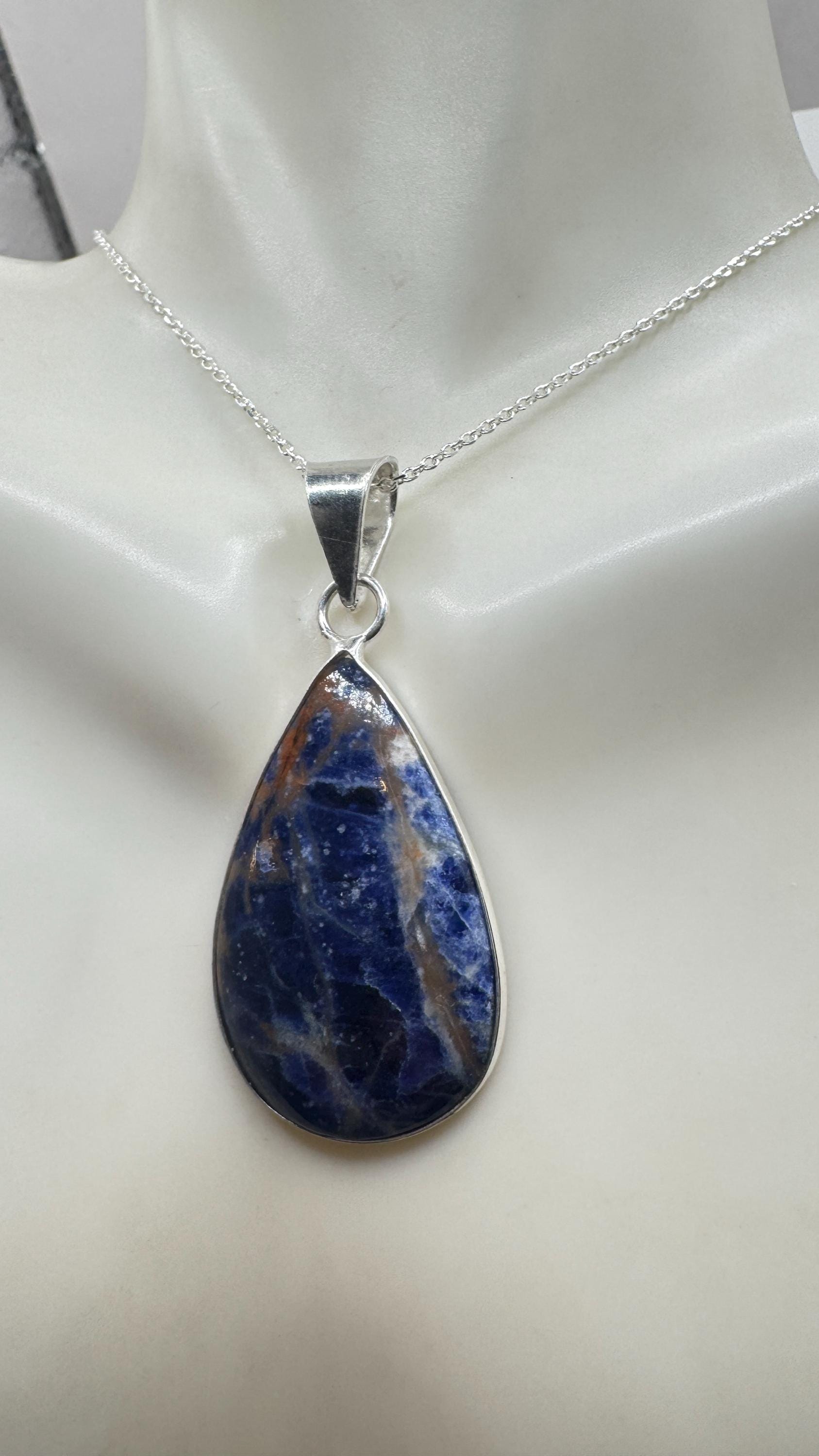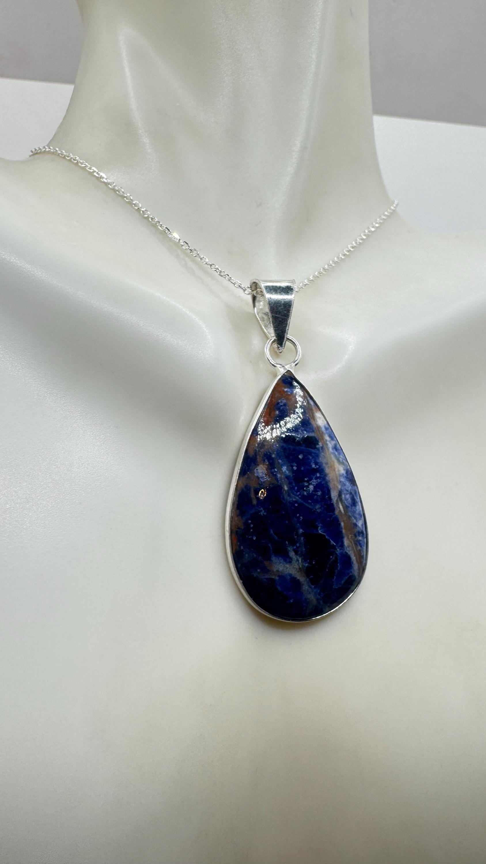 Vintage Lapis Lazuli Silver Gemstone Pendant | 925 Sterling Silver Necklace
