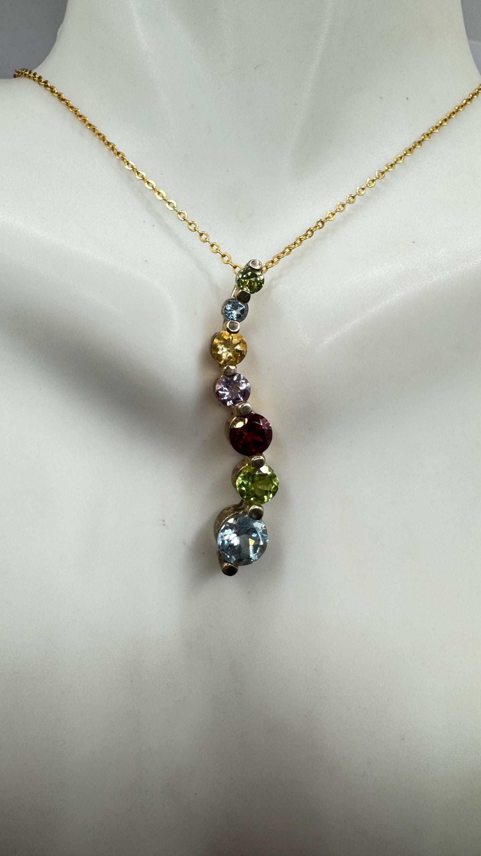 Vintage mixed Gemstone Choker 925 Sterling Silver in garnet, peridot, blue topaz, amethyst and citrine Ships on a 925 Sterling... Read more