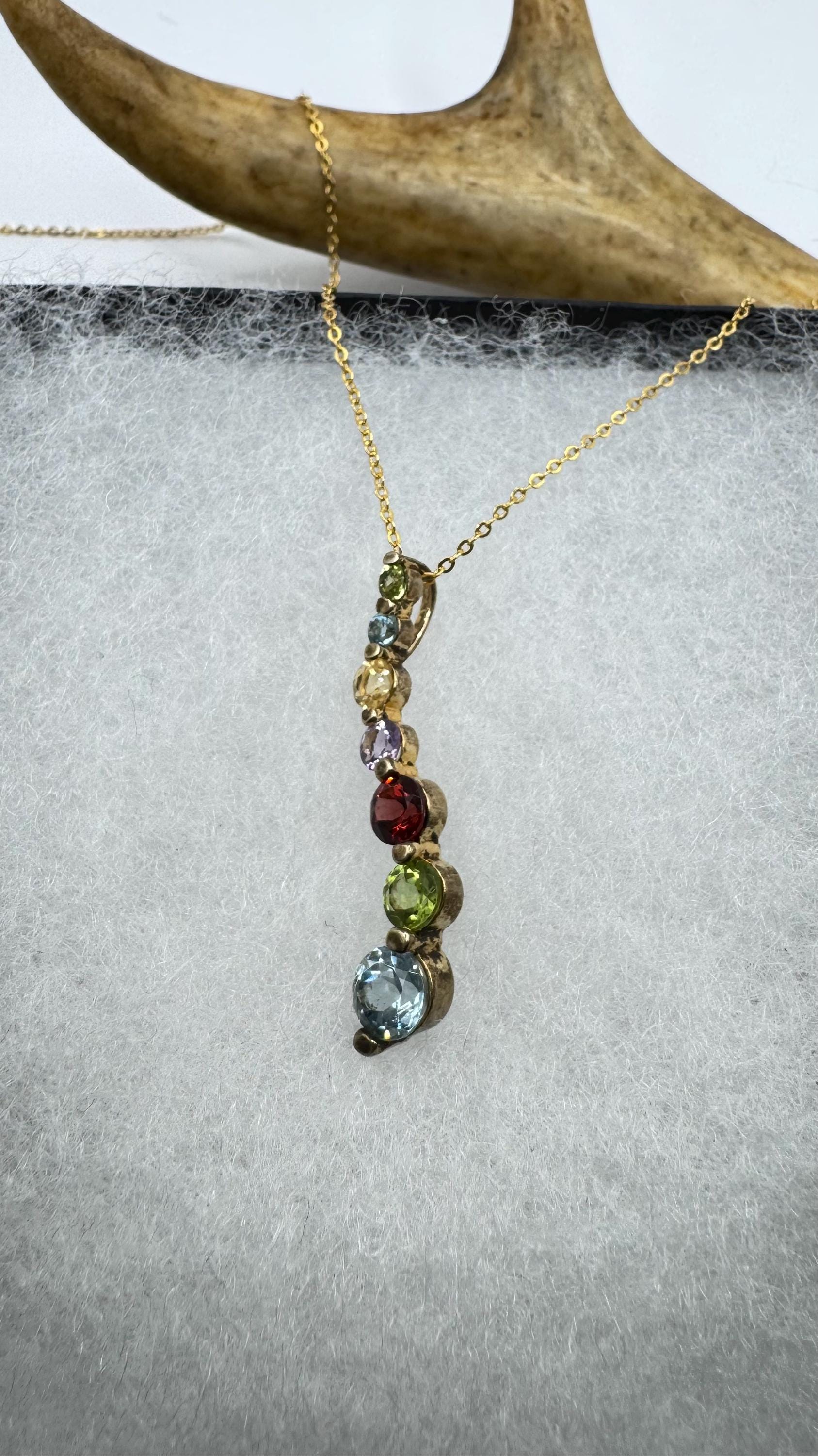 Vintage Mixed Gemstone Pendant Choker Necklace