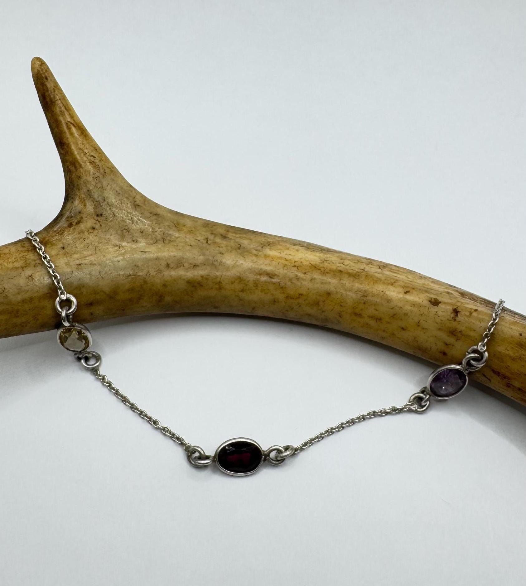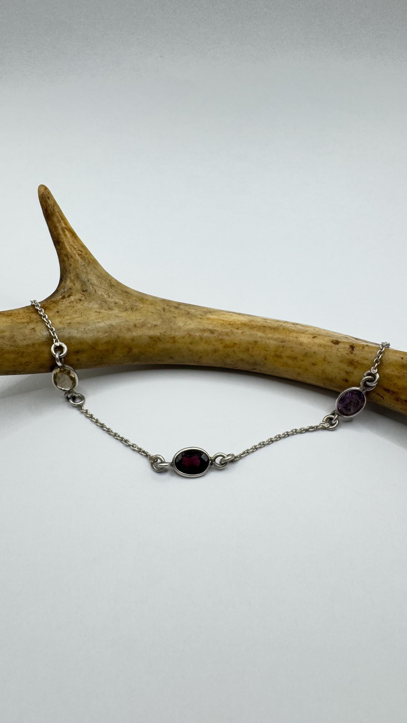 Vintage Mixed Gemstone Station Bracelet | Deep Red Garnet Set in 925 Sterling Silver | Stacking Layered Birthstone