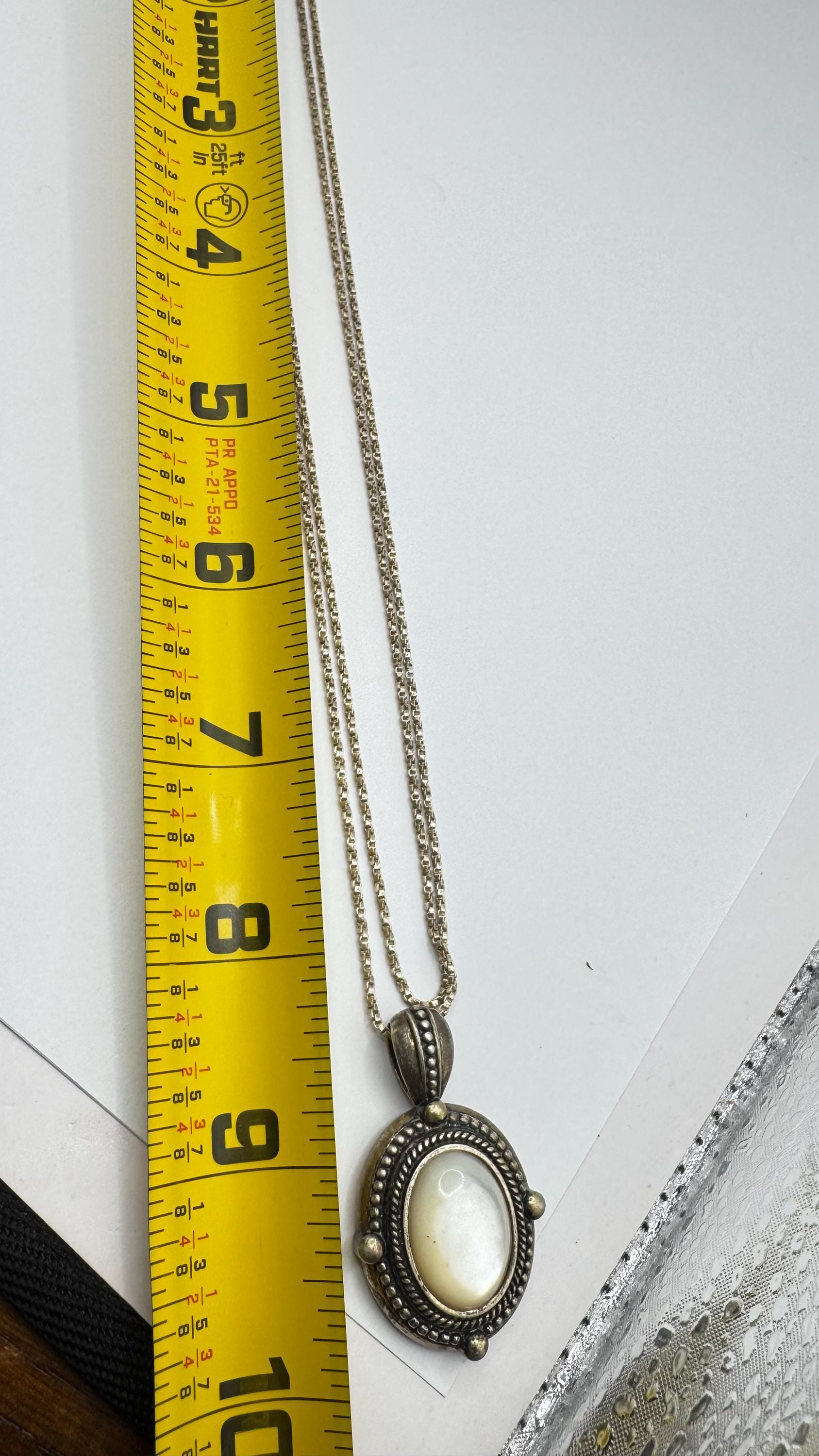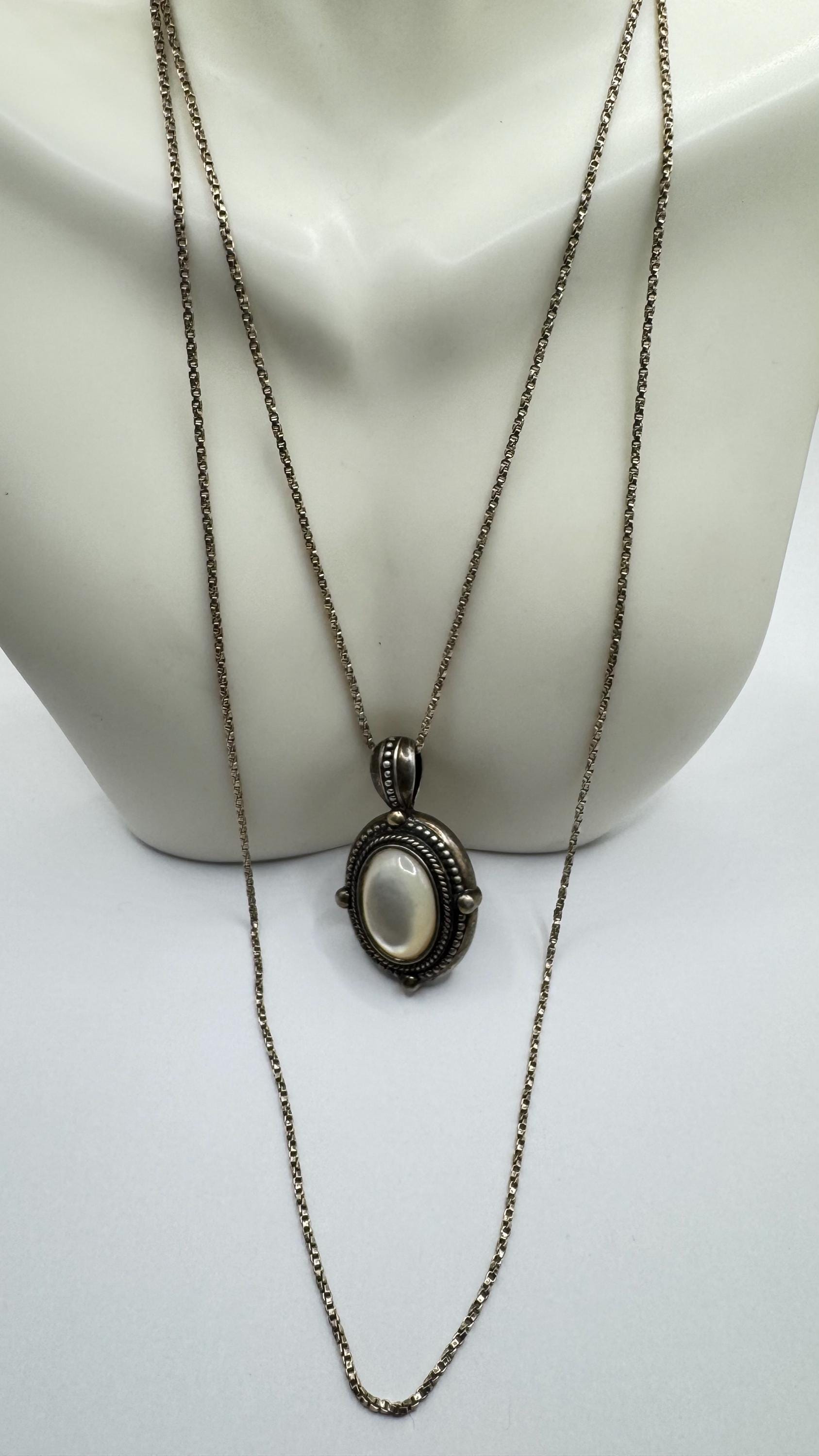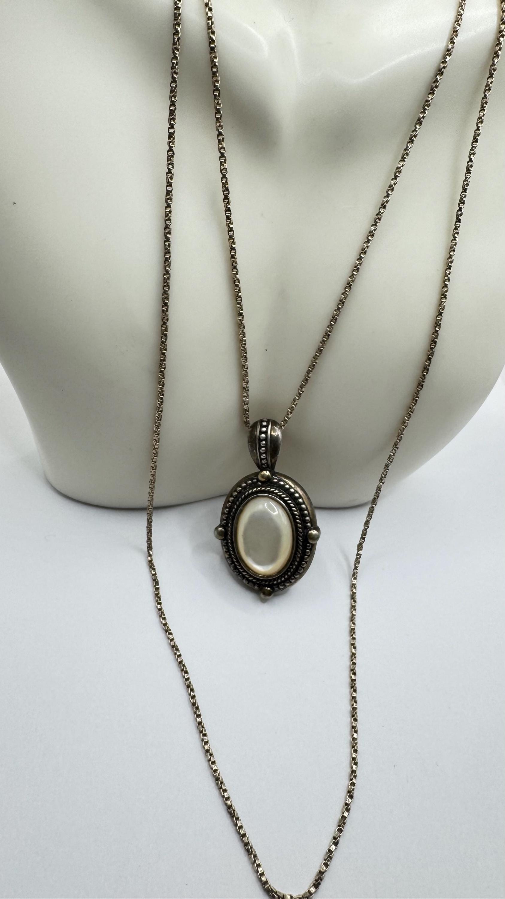 Vintage Silver Pendant Choker Necklace Mother of Pearl gemstone set in 925 Sterling Silver on a 36 inch long sterling... Read more