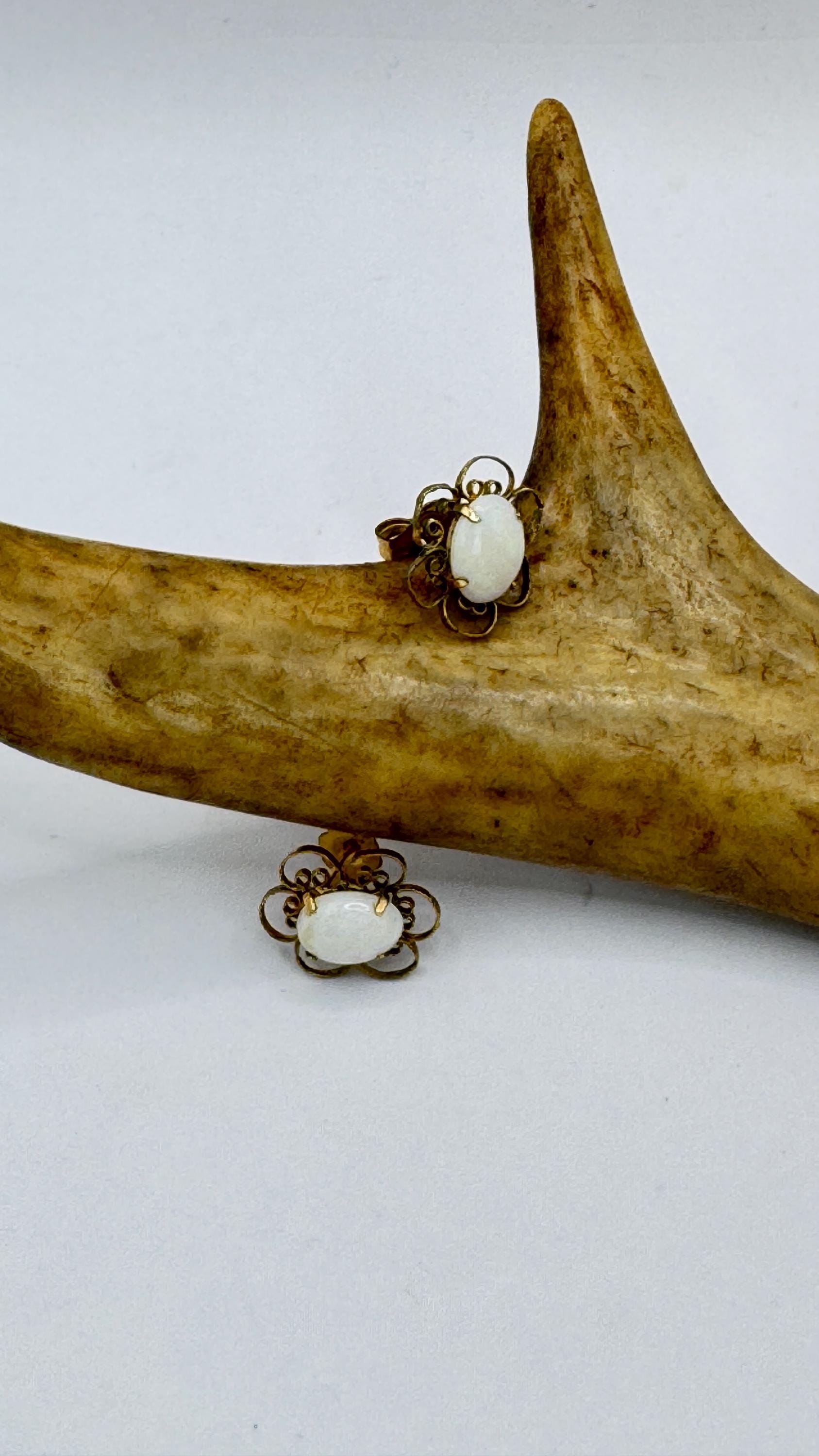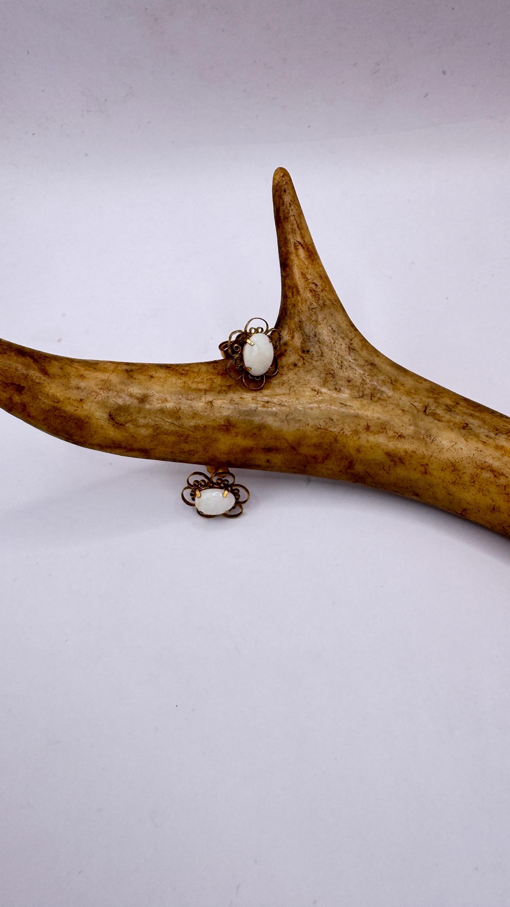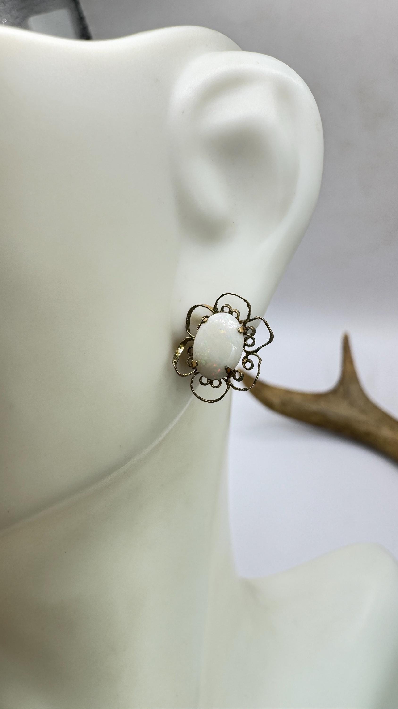 Star Silver Earrings featuring Mini white Fire Opals Gemstones. These elegant stud button earrings are a fun pair to wear... Read more