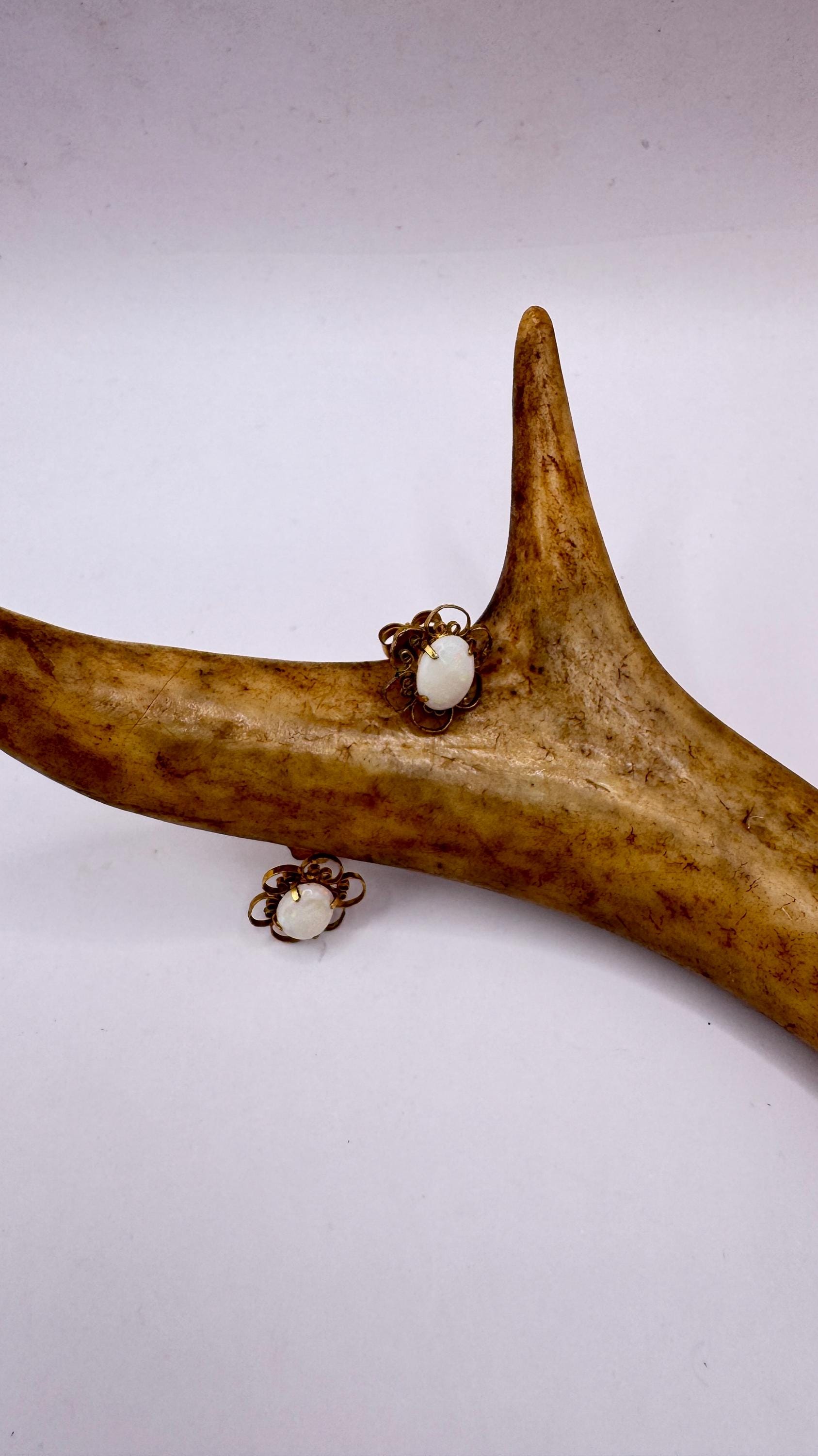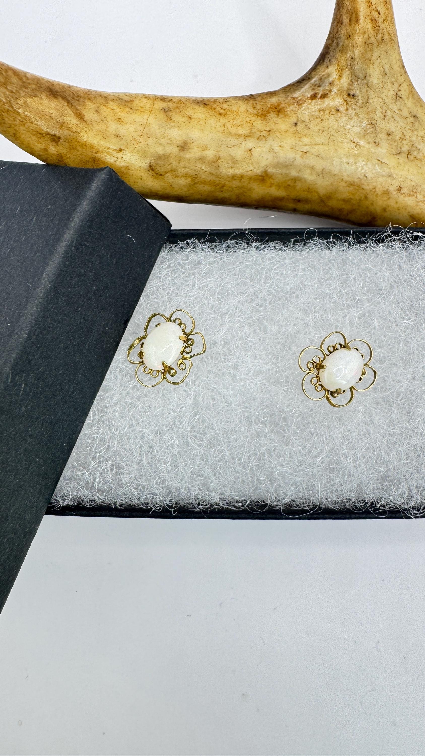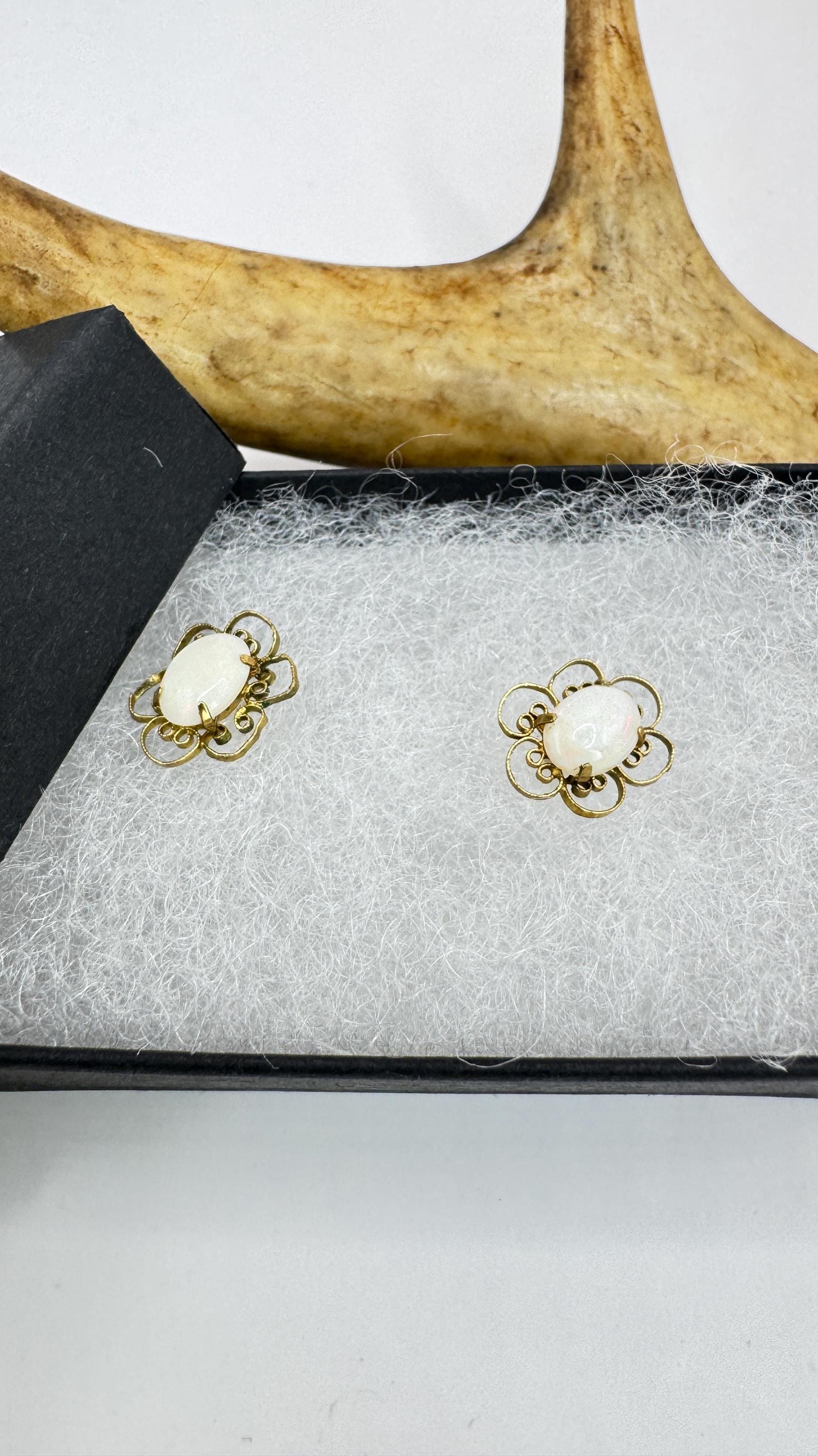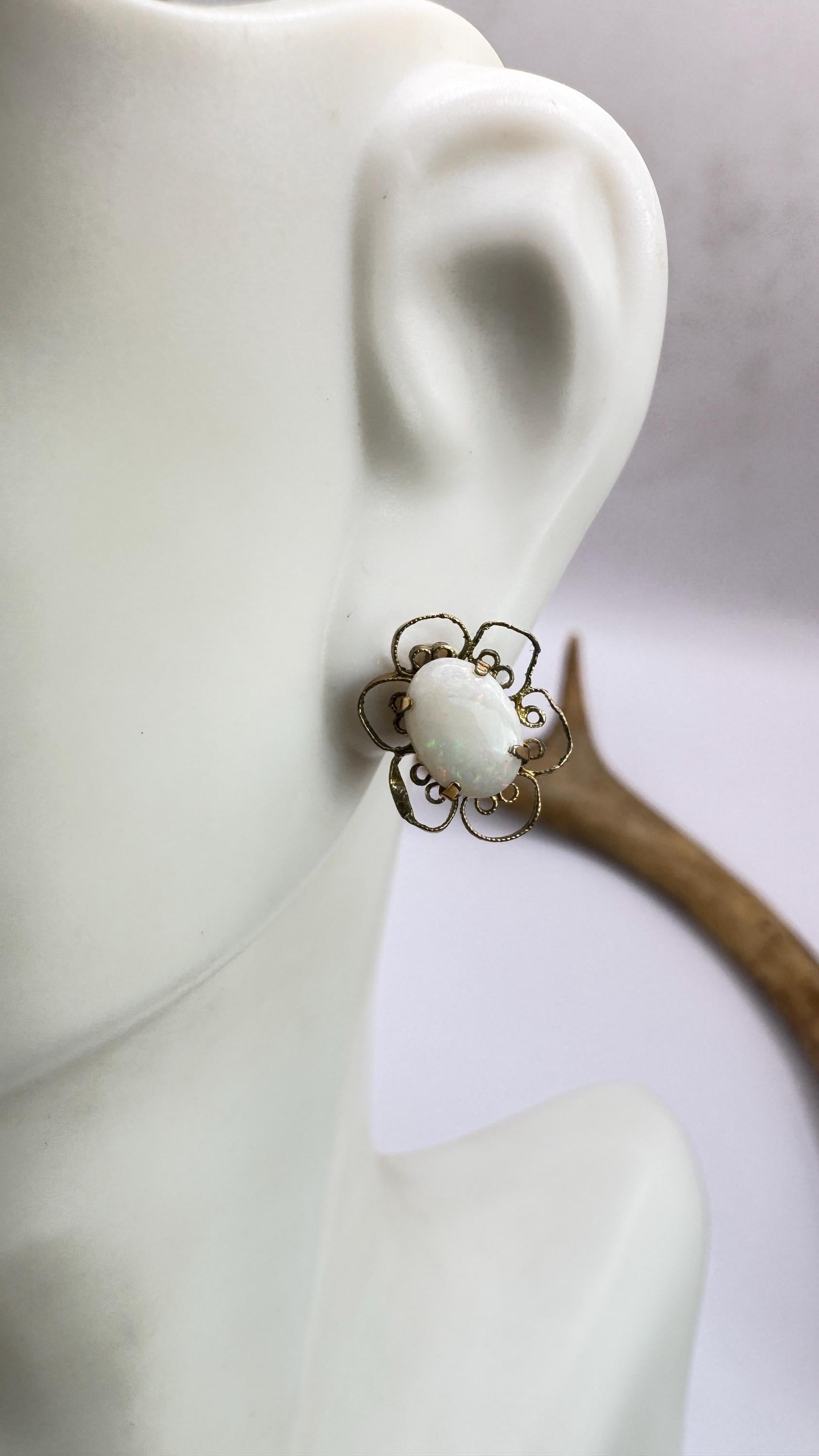 Star Silver Earrings featuring Mini white Fire Opals Gemstones. These elegant stud button earrings are a fun pair to wear... Read more