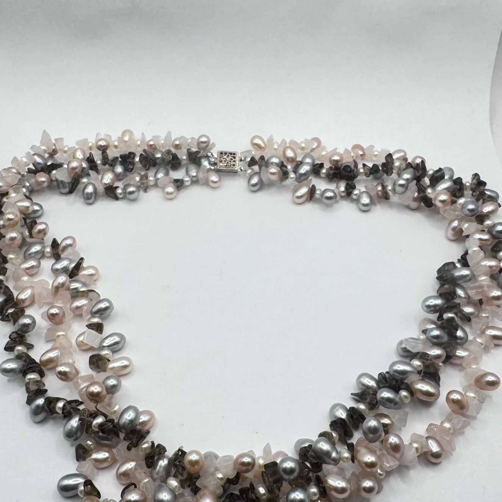 This Vintage Pearl Necklace features white pink and grey Pearl with quartz Gemstones 18 inch Jump Rope Length Necklace. This... Read more