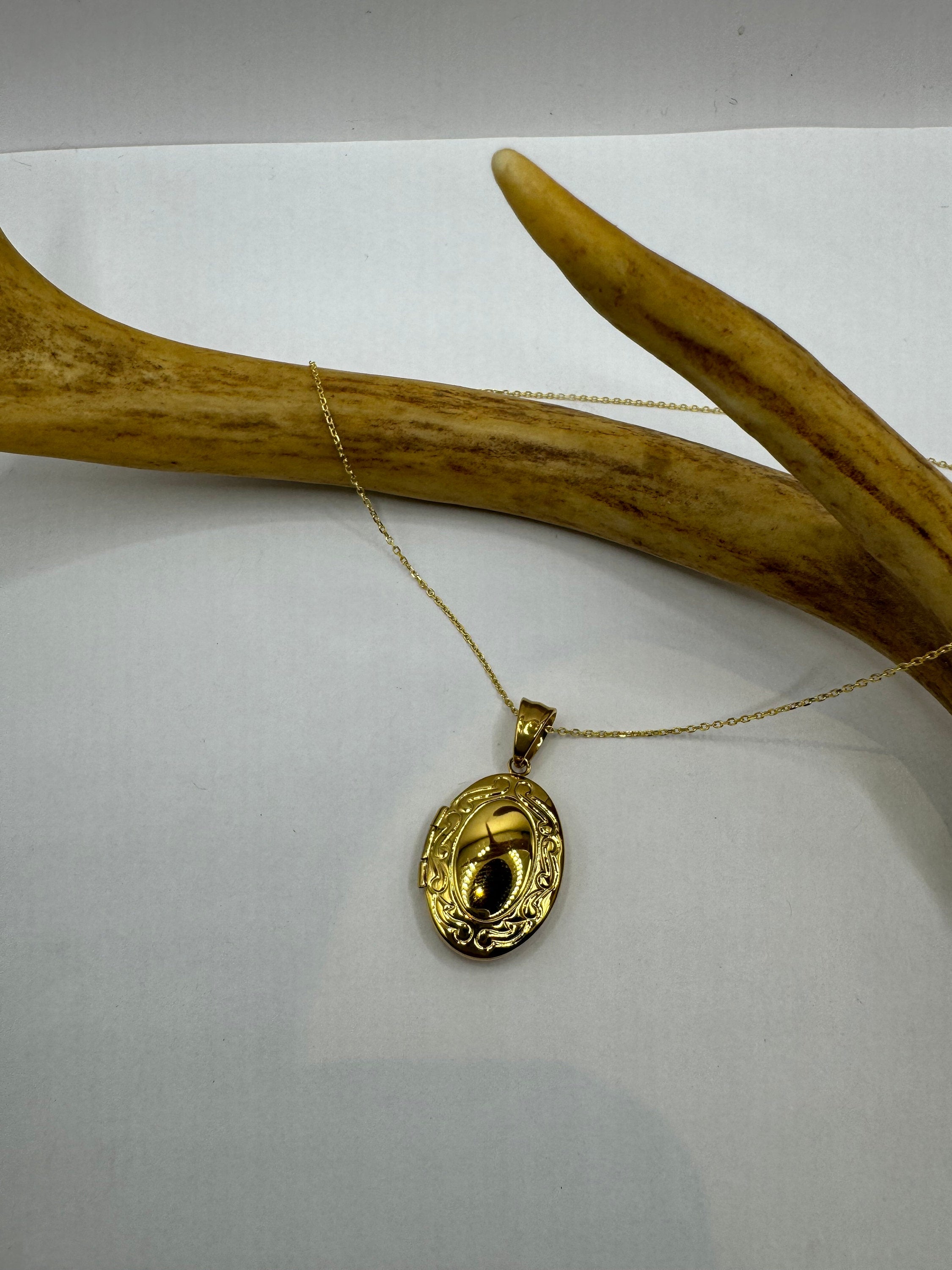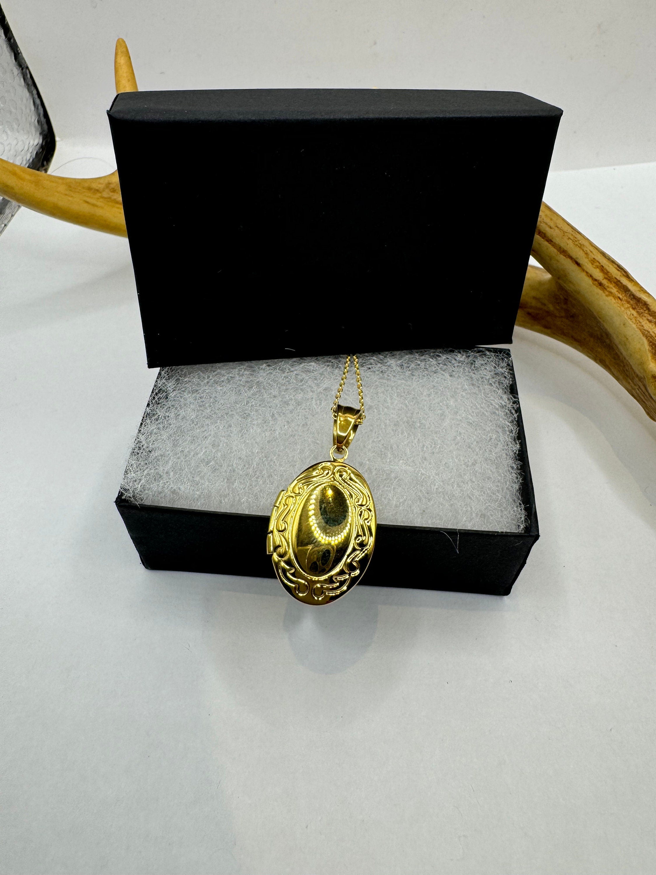 Vintage Photo Locket Necklace features a tiny golden stainless steel oval-shaped die cut etched photo memory charm pendant measuring about... Read more