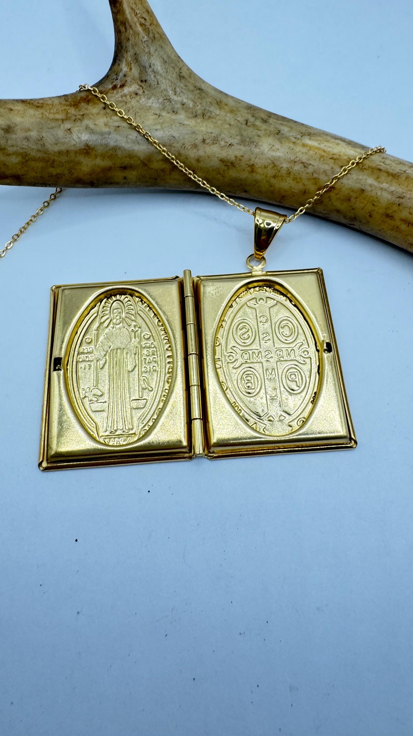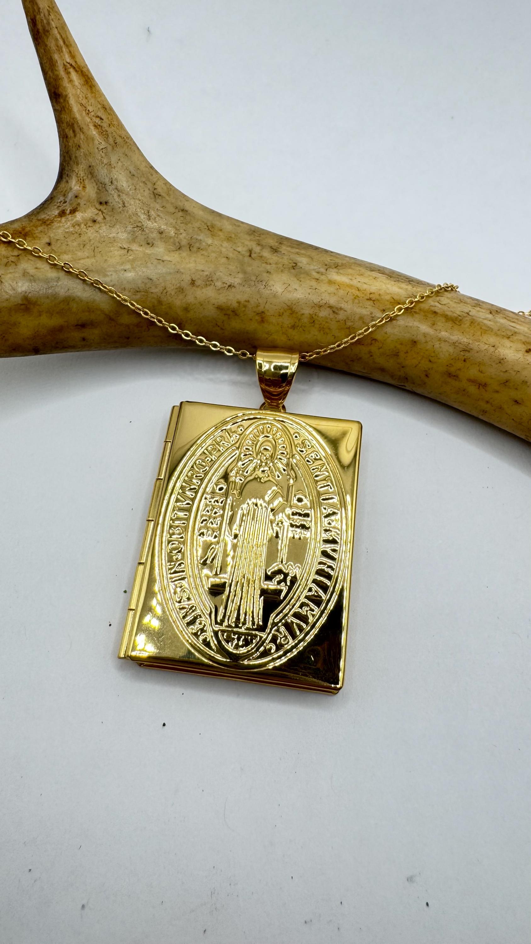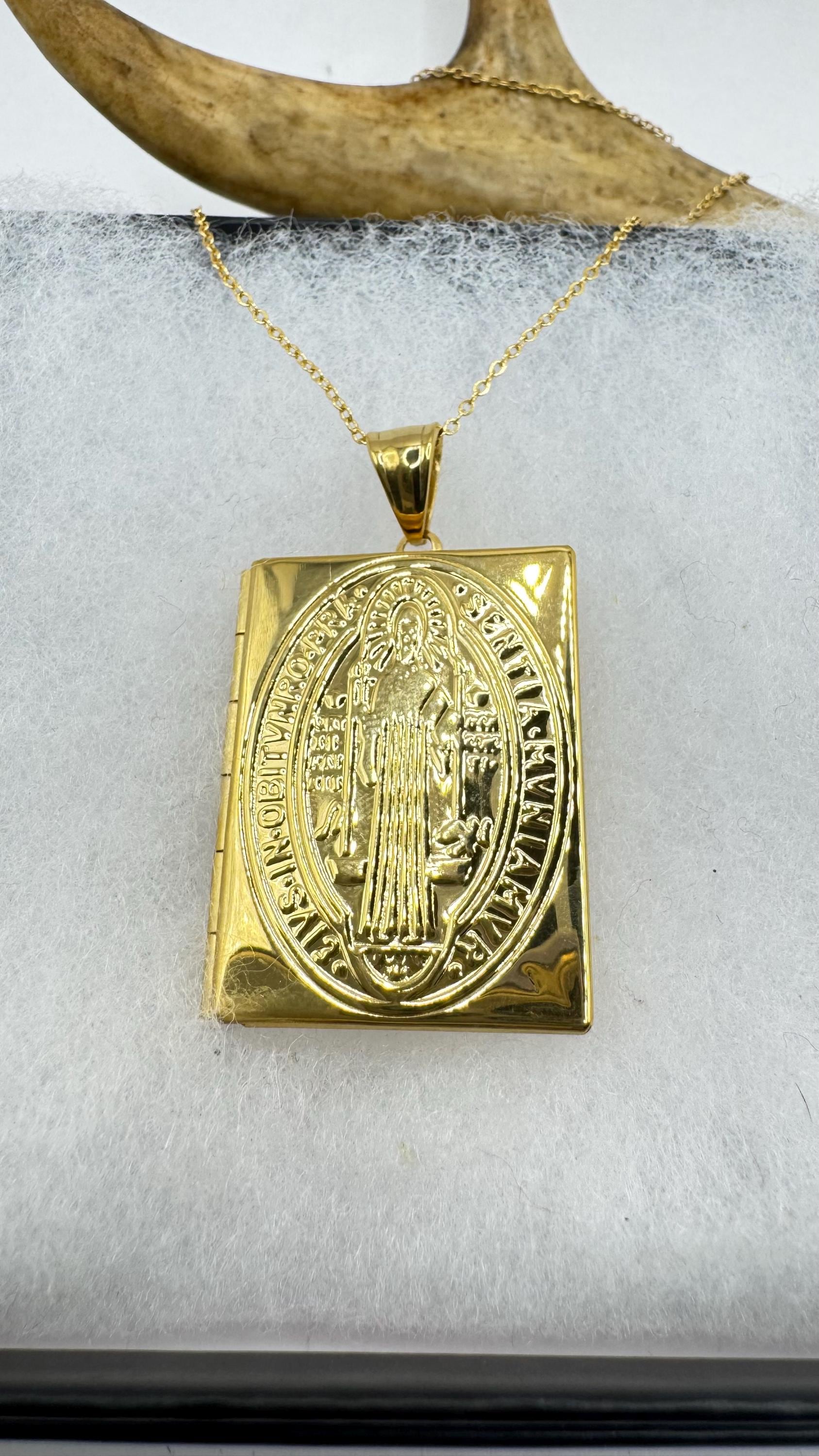 Vintage Gold Finished Photo Locket Necklace features a stainless steel book rectangle shaped die cut etched photo memory charm pendant... Read more
