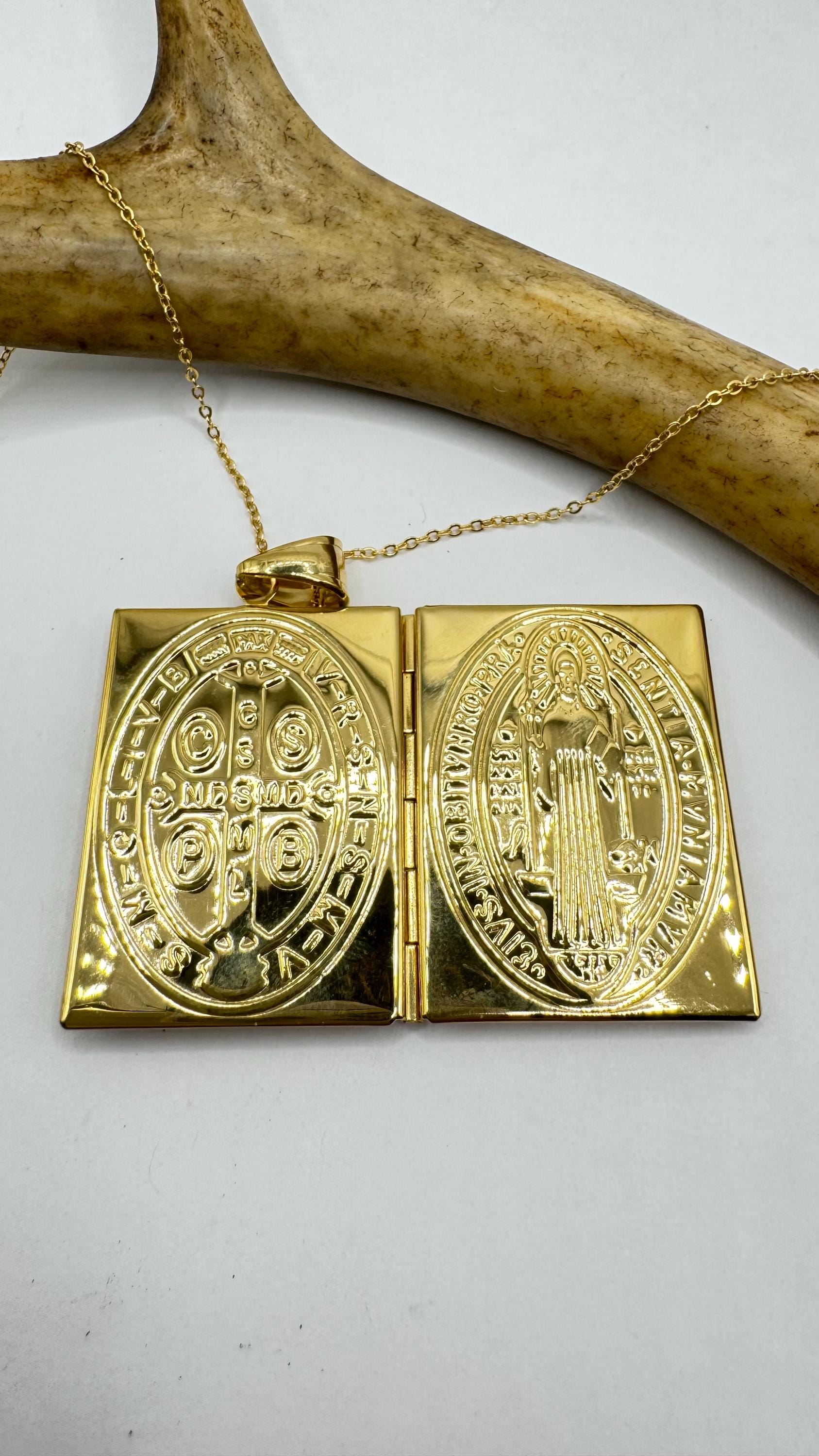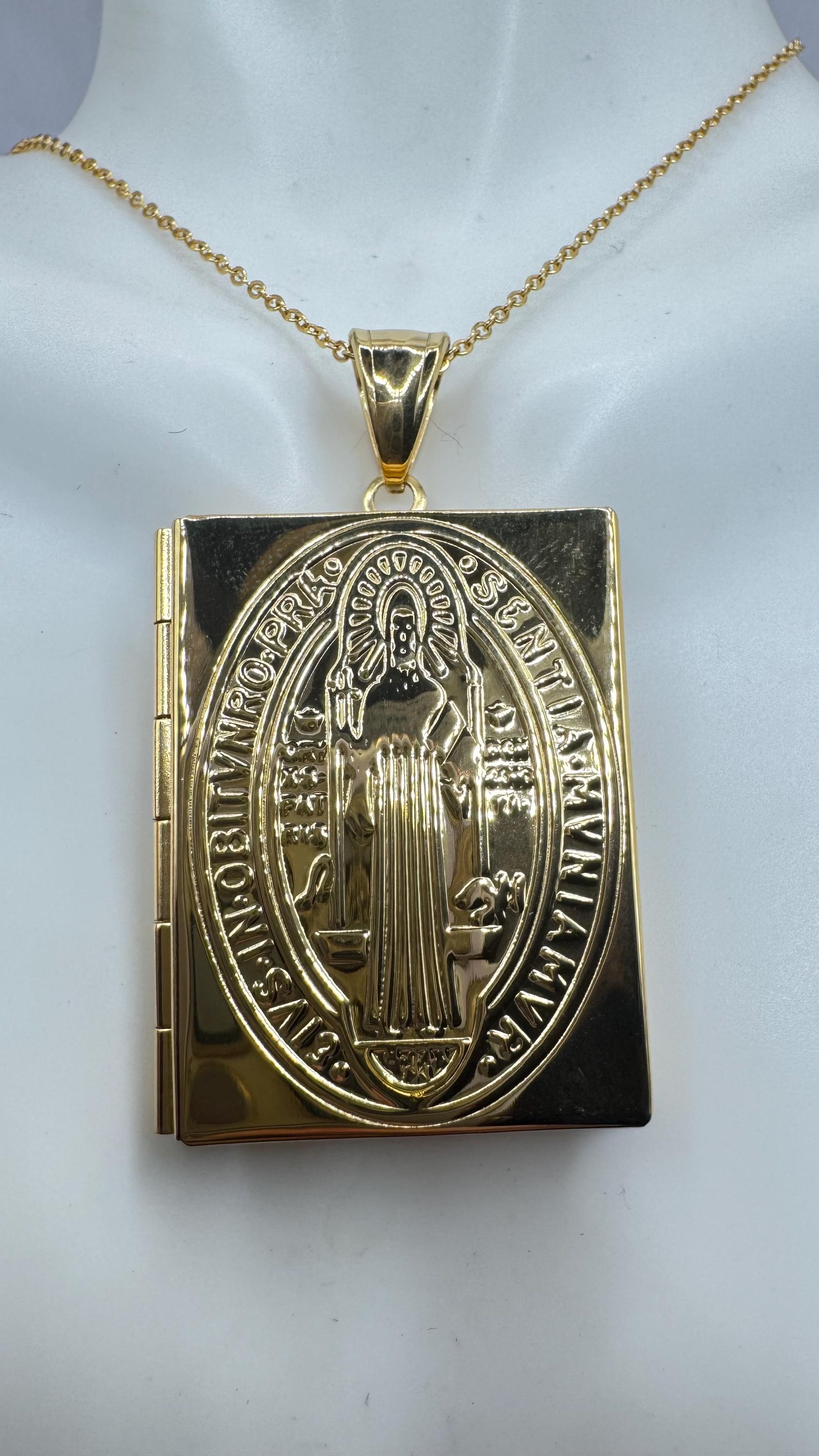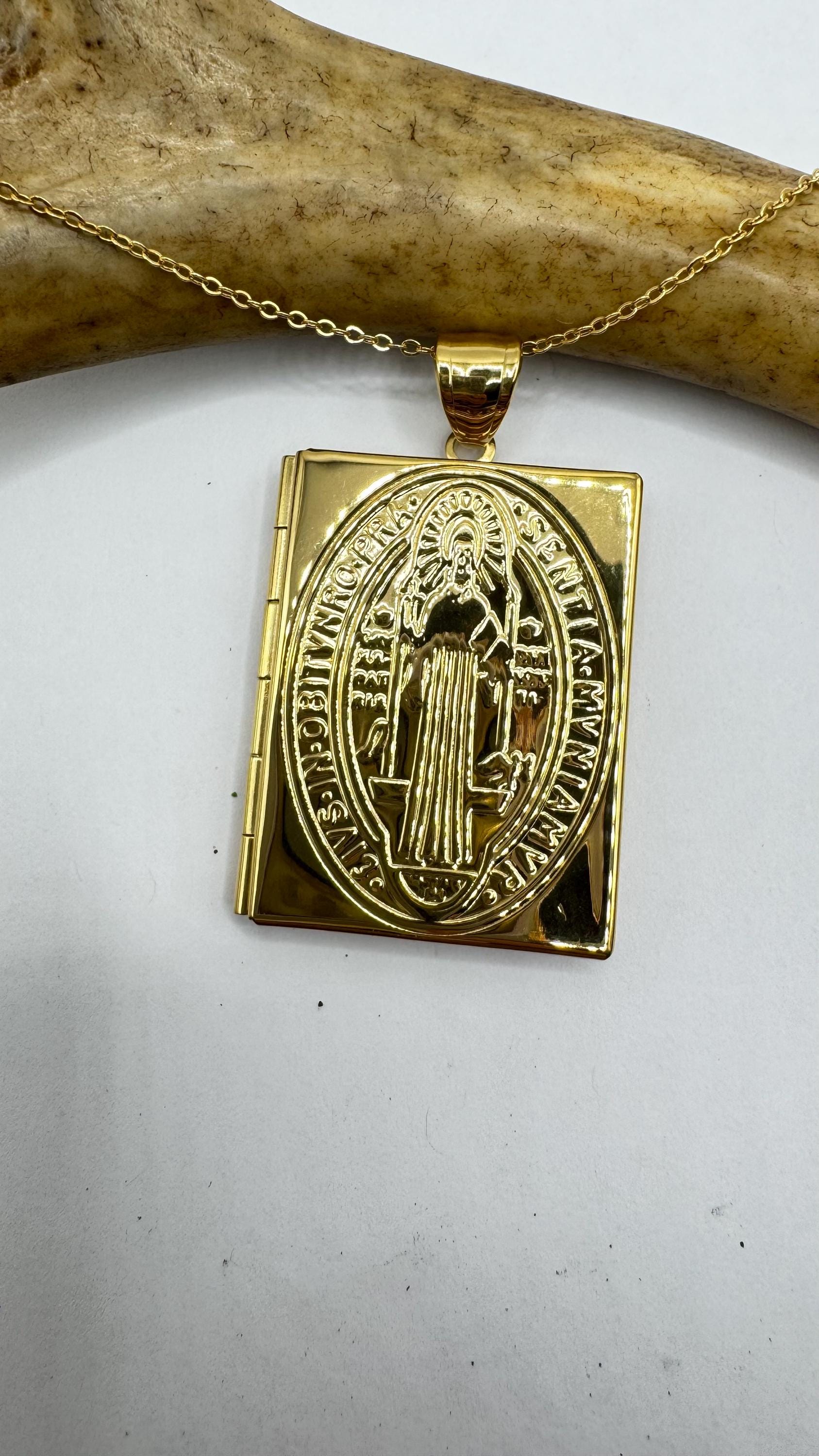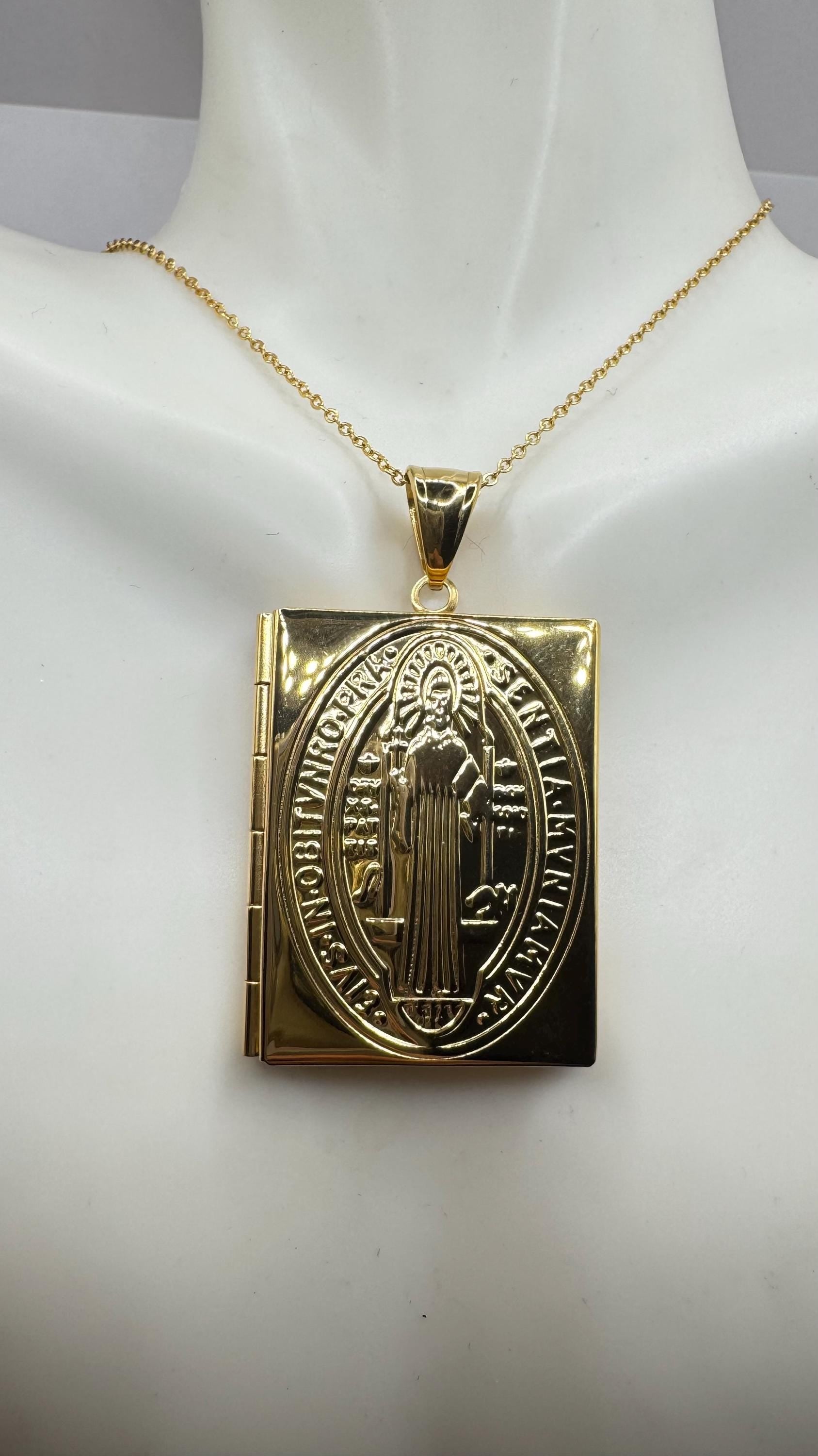 Vintage Gold Finished Photo Locket Necklace features a stainless steel book rectangle shaped die cut etched photo memory charm pendant... Read more