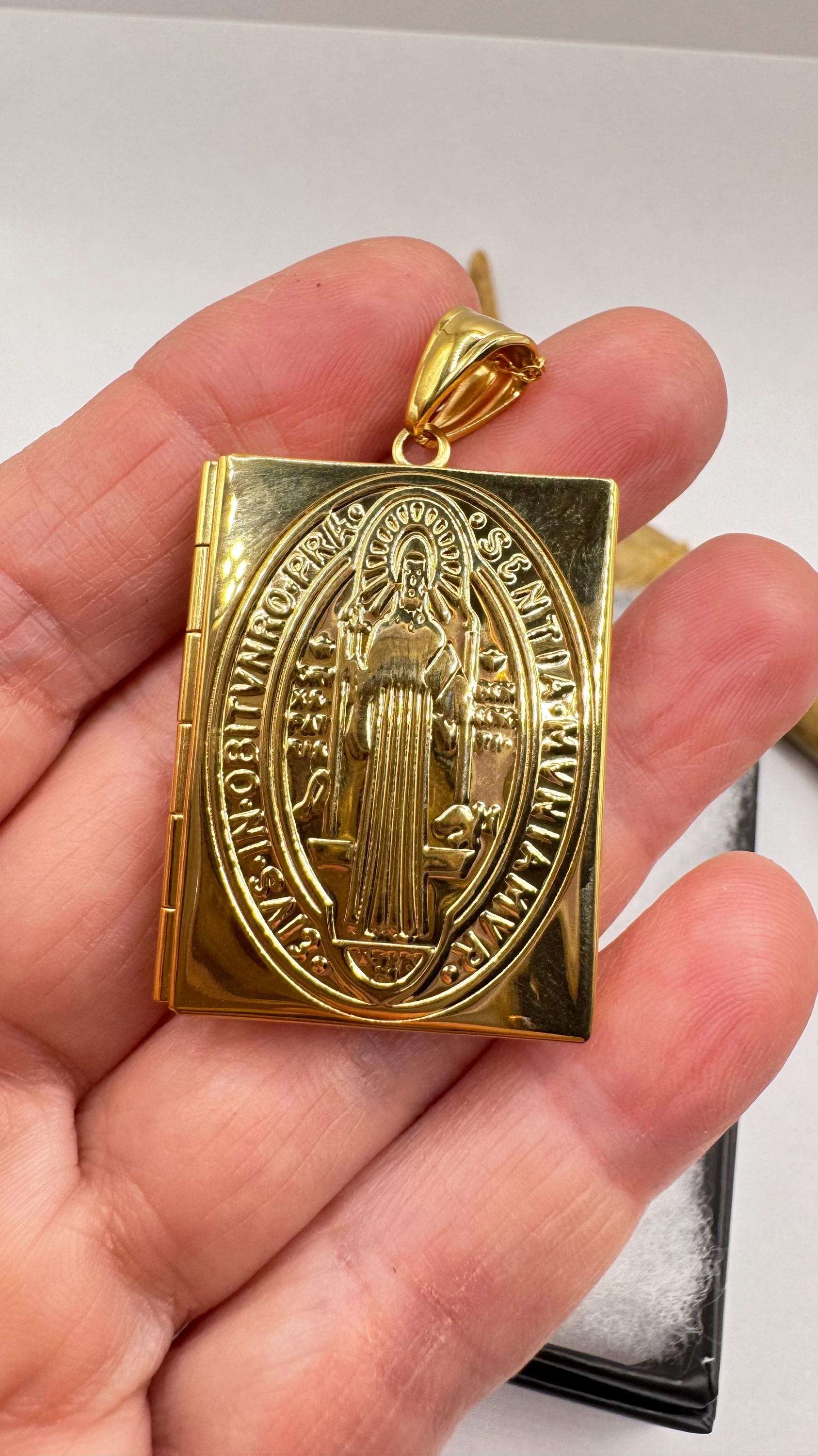 Vintage Photo Locket |Etched Book Memory Charm Pendant Stainless Steel