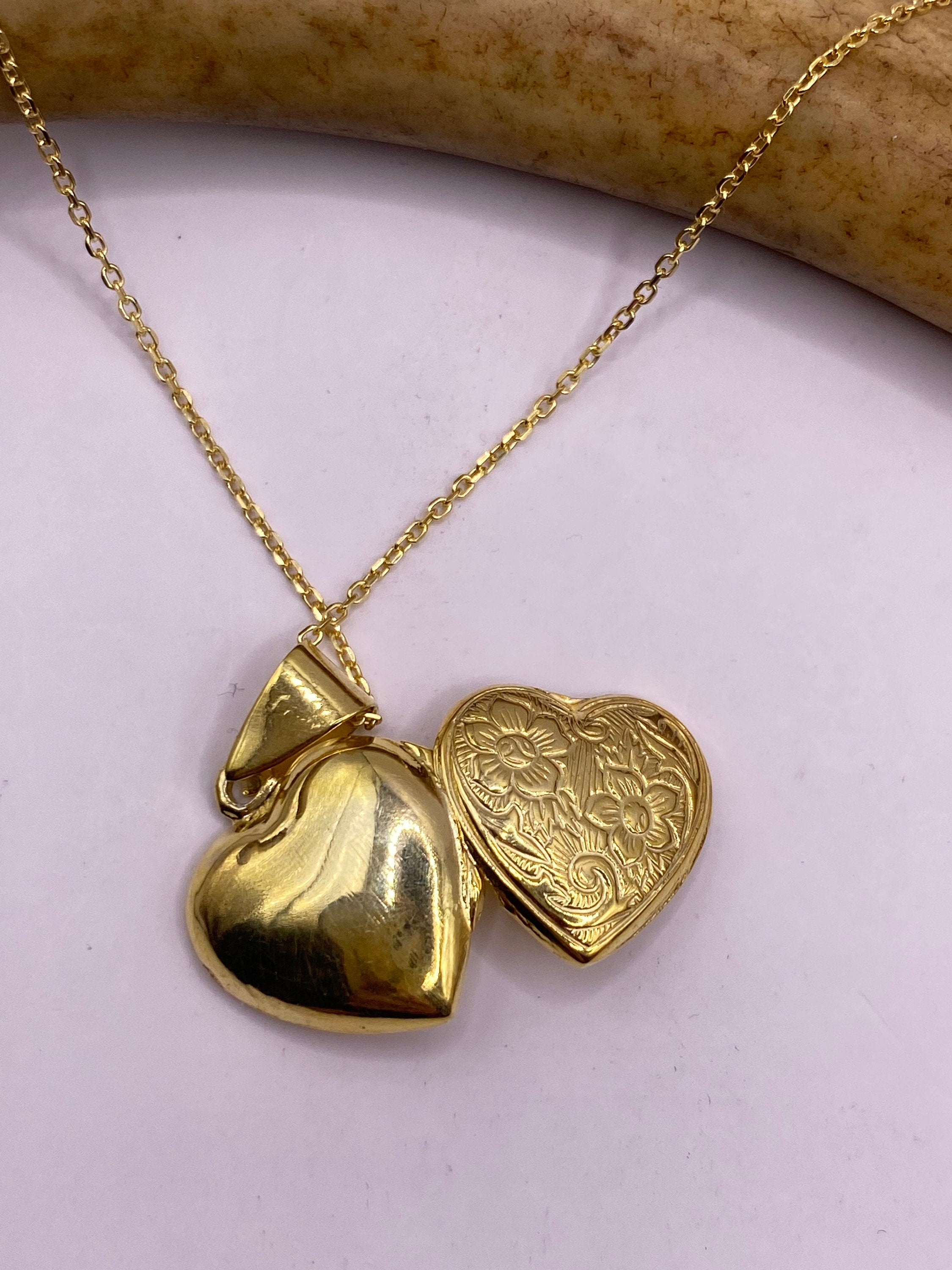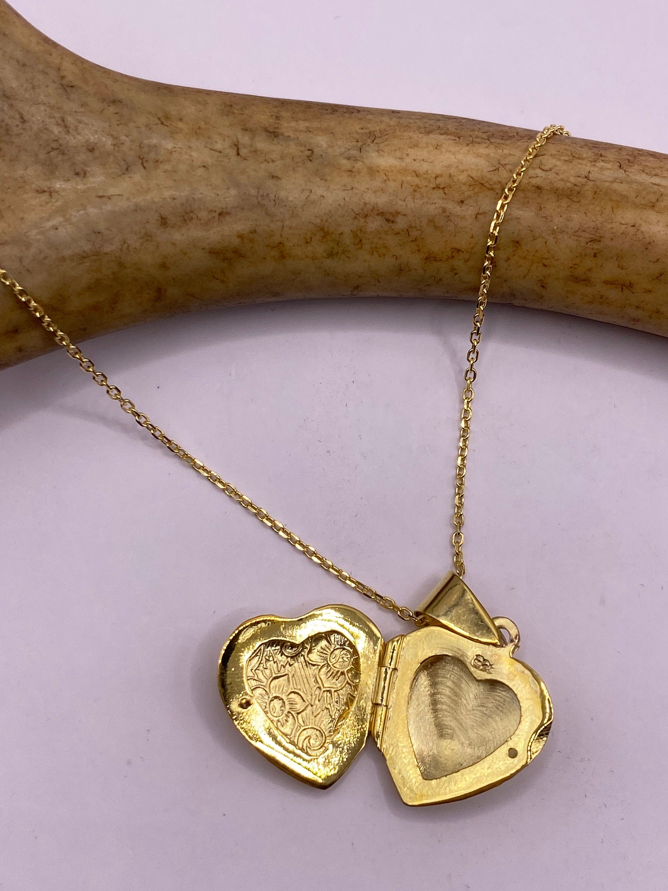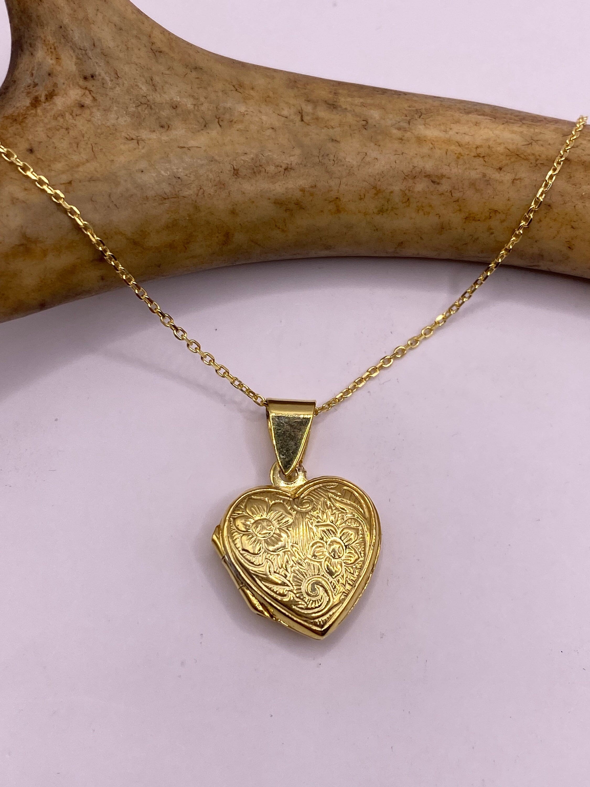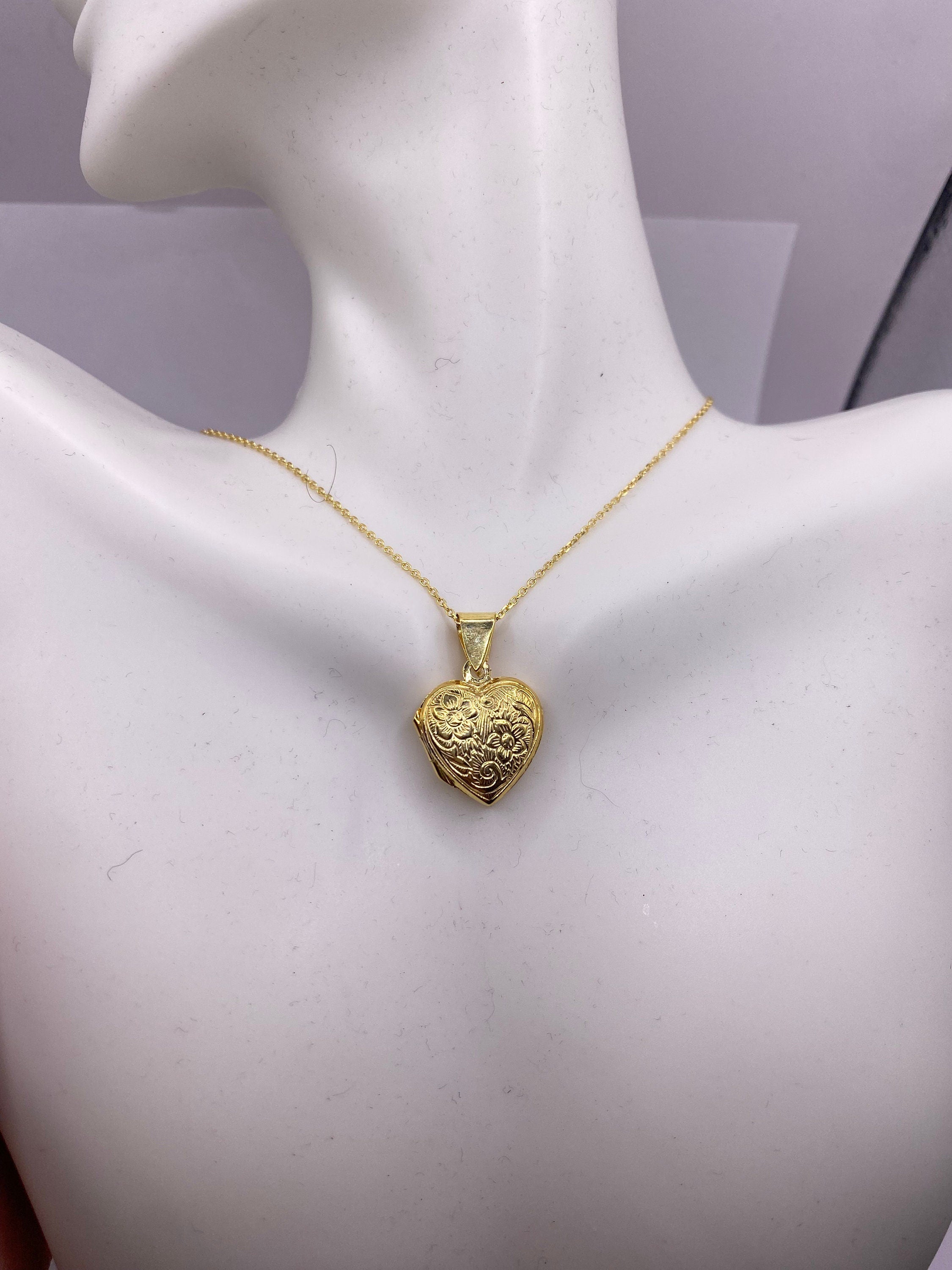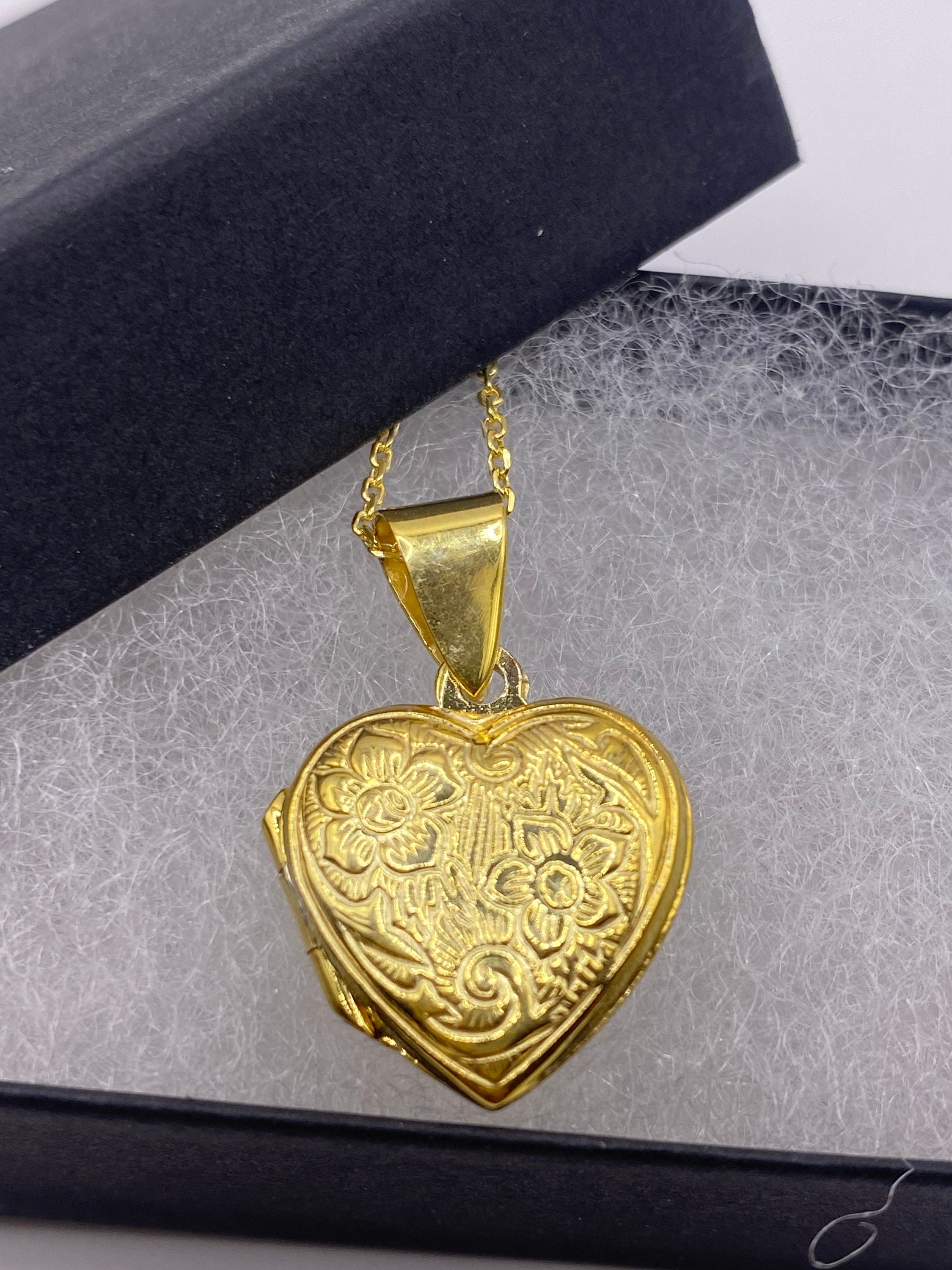 Vintage Photo Locket Necklace | Tiny Heart Photo Memory Small Mini Charm Pendant Cast in Golden 925 Sterling Silver Delicate Chain 3 reviews Share Deel Pin it Vintage Photo Locket Necklace | Tiny Heart Photo Memory Small Mini Charm Pendant Cast in Golden 925 Sterling Silver Delicate Chain 3 reviews Share Deel Pin it Product form Our Vintage Photo Locket is about 1/2 inch (12mm) long and features a lovely etched design Features a Tiny gold... Read more Necklace length Free pickup in our shop(s) 16 18 20 22 24 Free pickup in our shop(s) $95.00 $76.00 Quantity Add to cart This item is a recurring or deferred purchase. By continuing, I agree to the cancellation policy and authorize you to charge my payment method at the prices, frequency and dates listed on this page until my order is fulfilled or I cancel, if permitted.
