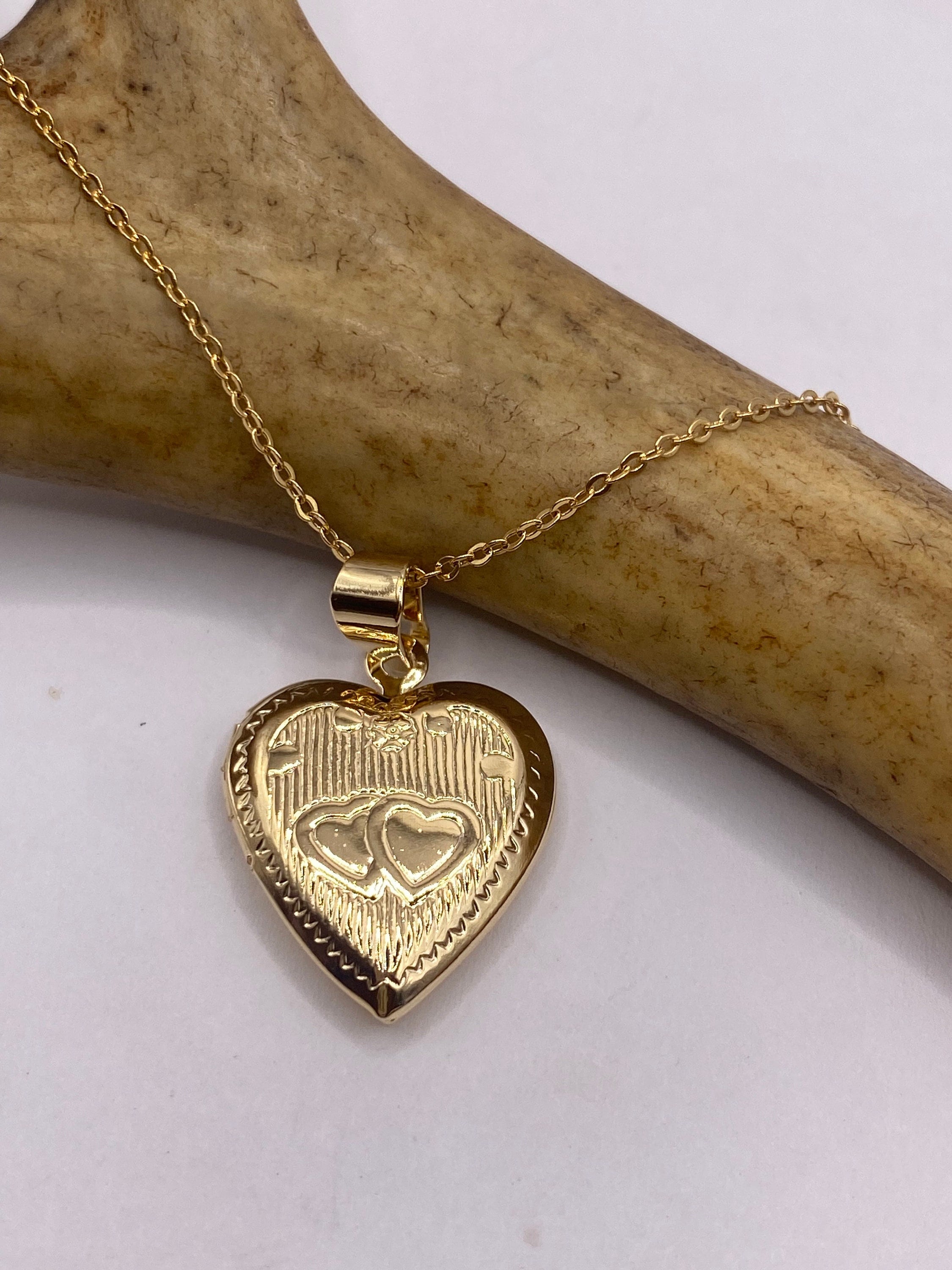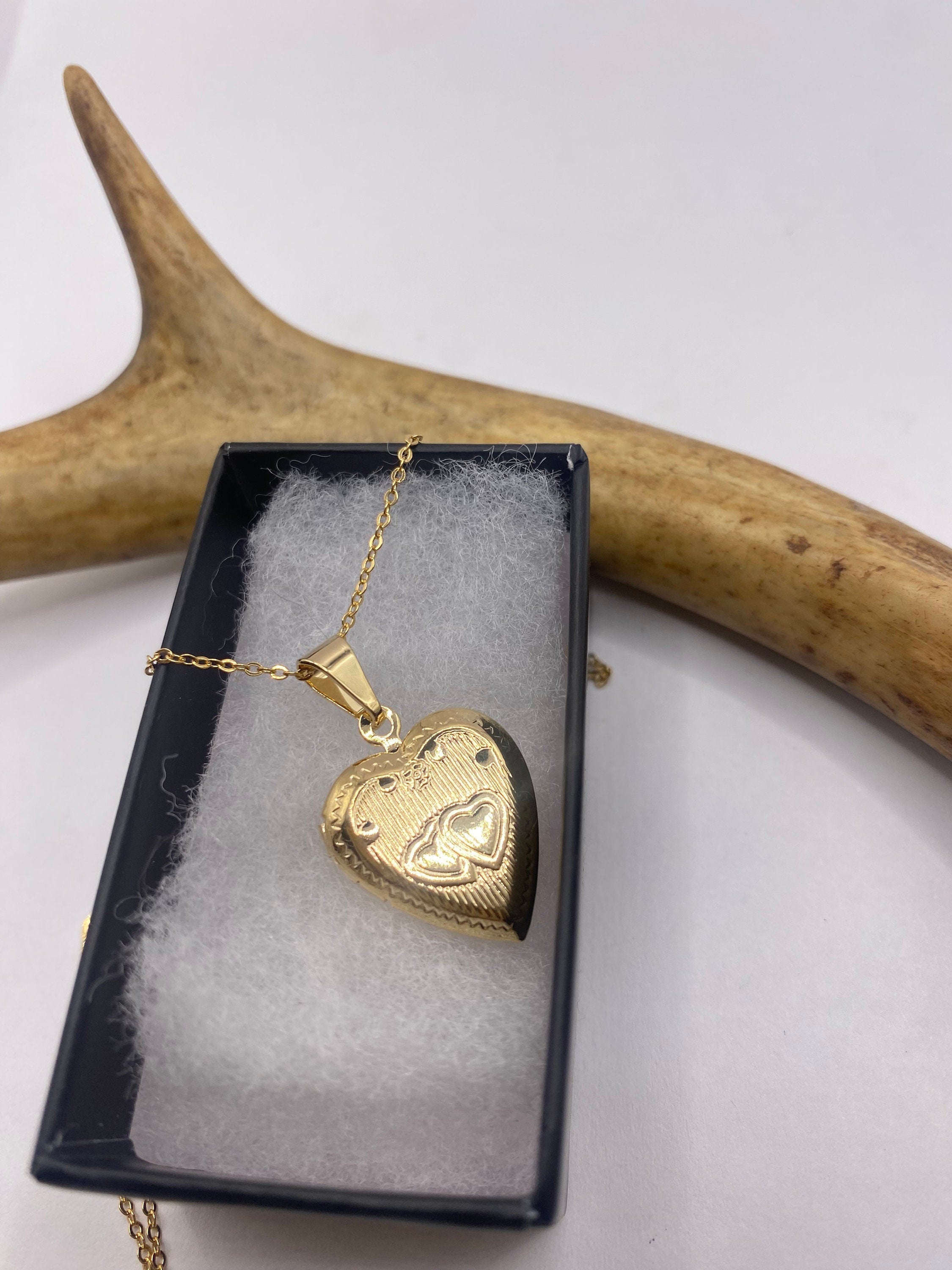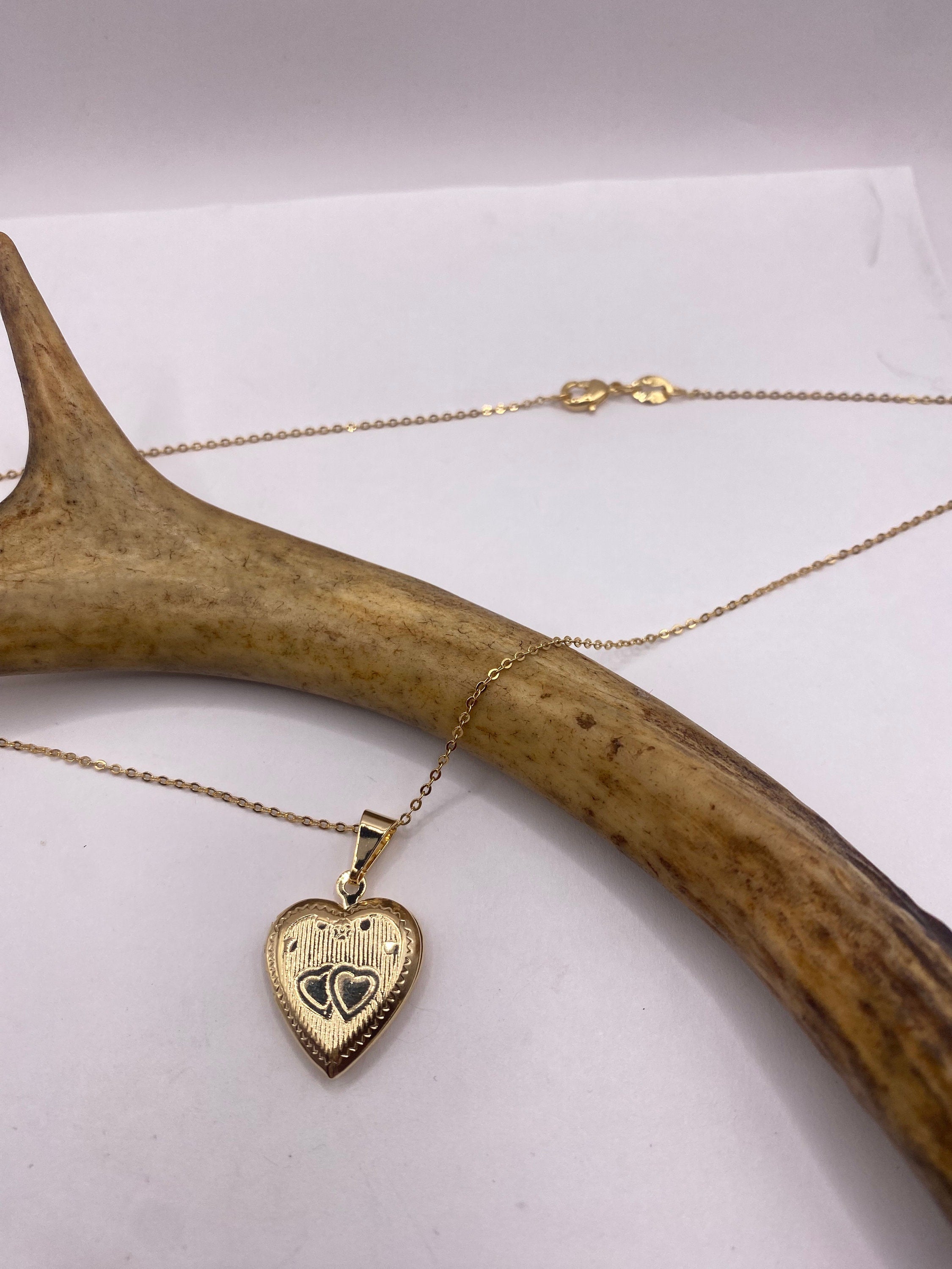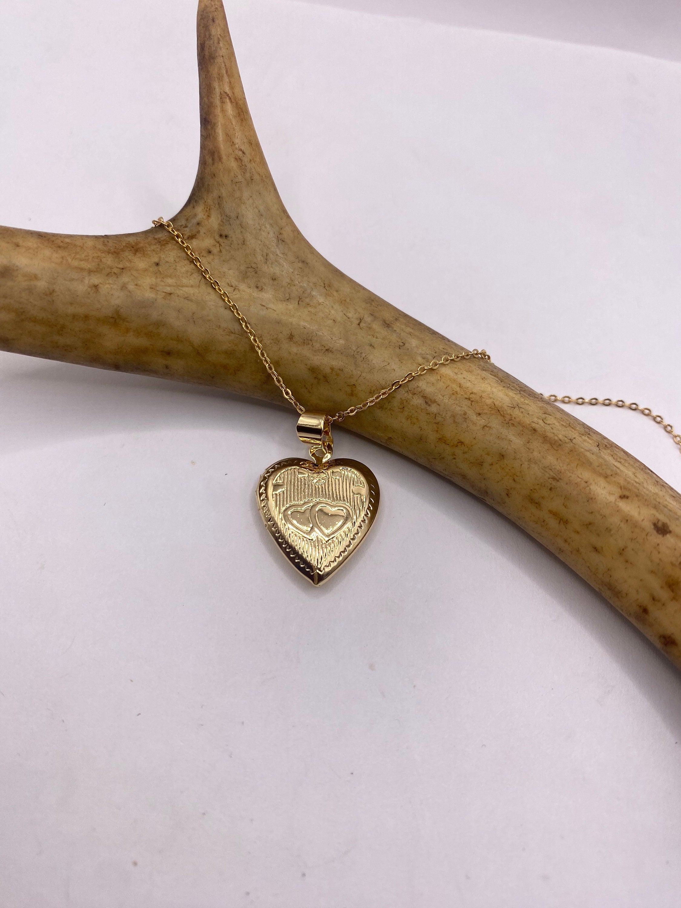 Our Small Heart Shaped Vintage Photo Locket with Engraved Twin Hearts in 9K Gold Filled This tiny treasure has about... Read more