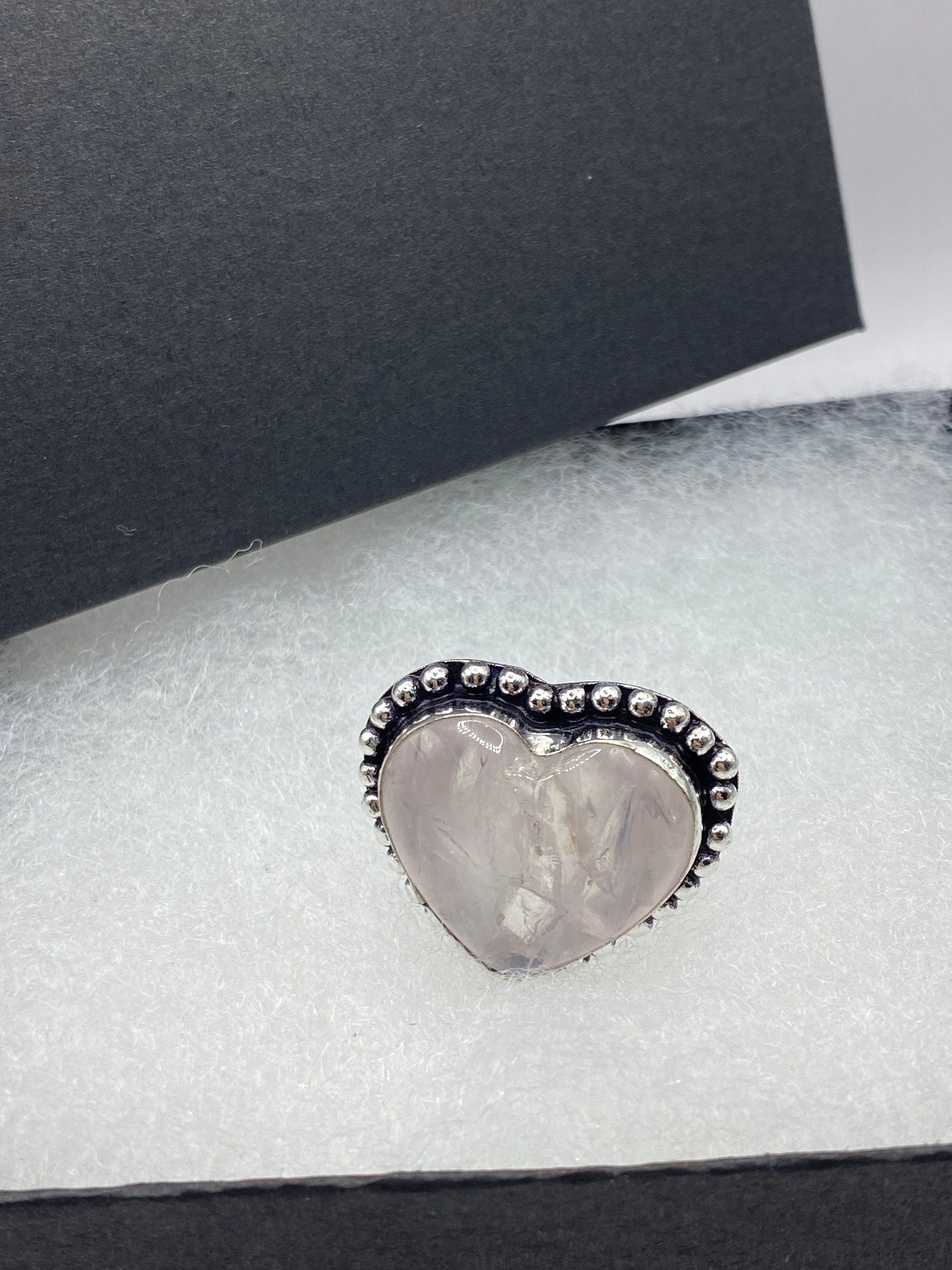 Vintage pink rose quartz heart statement ring white bronze setting NOT 925 Sterling Silver This is one of my hand... Read more