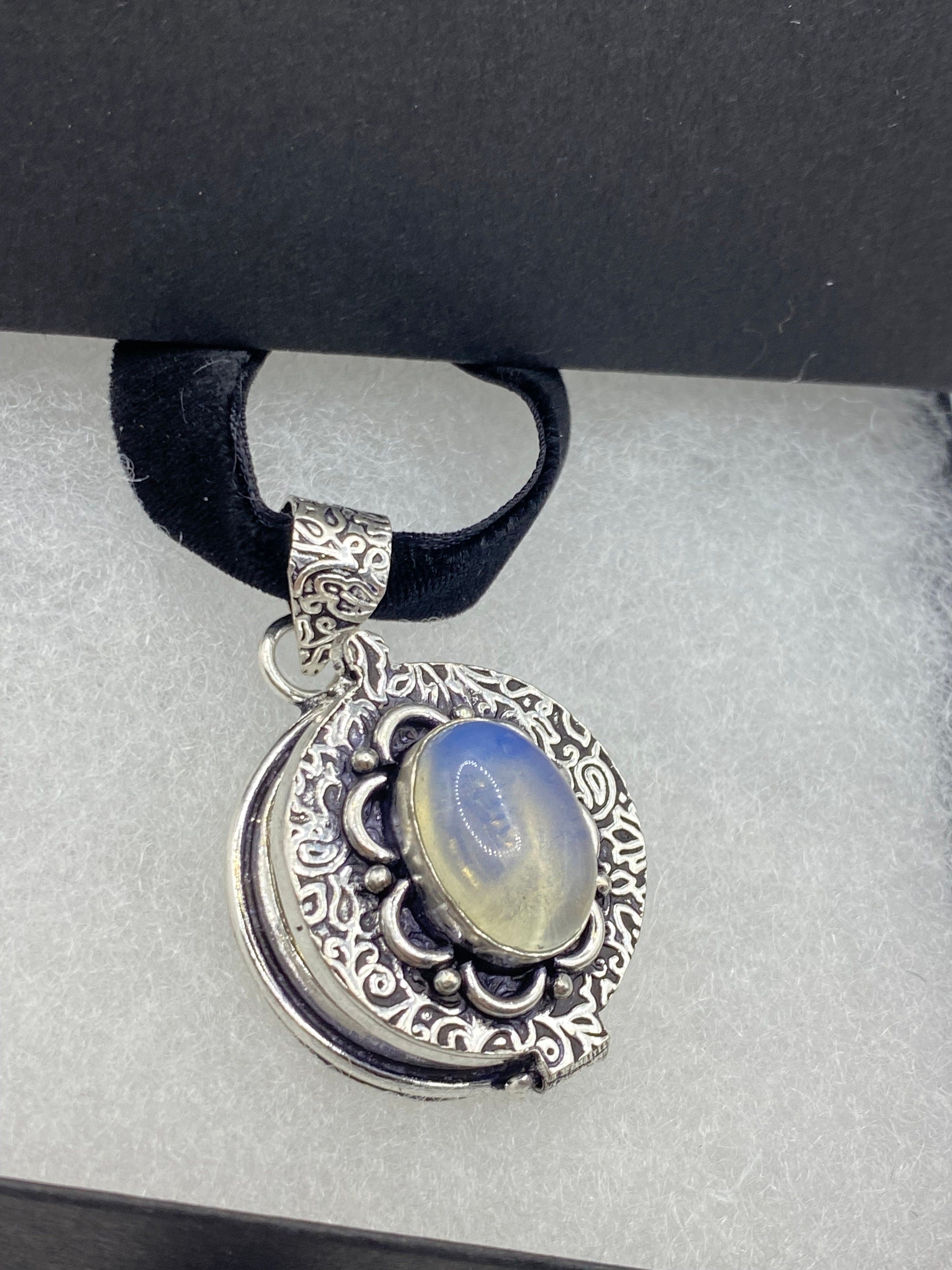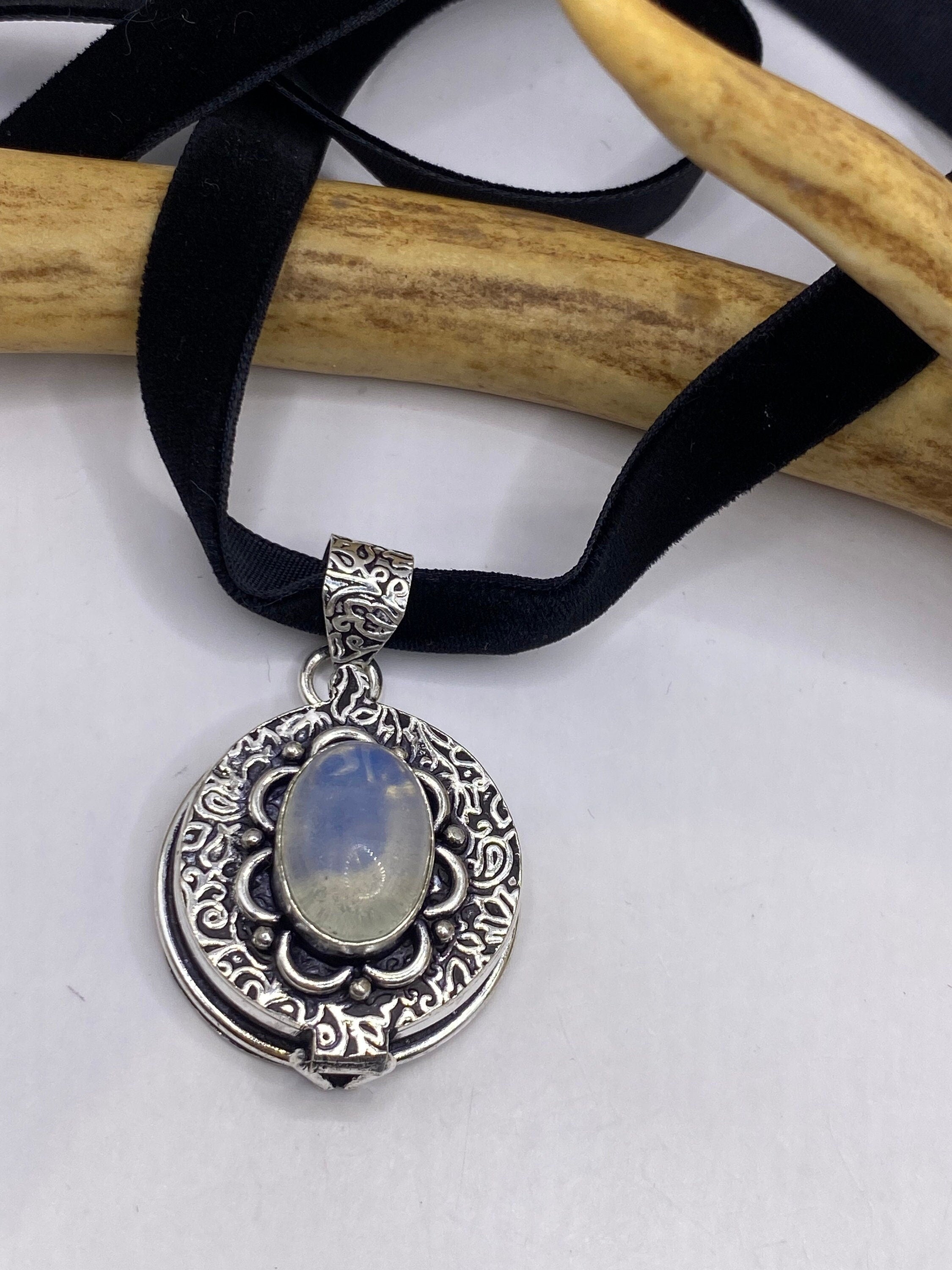 Vintage Poison Pillbox Velvet Choker Locket - Silver, White Bronze, Antique Design, Milk Glass Necklace