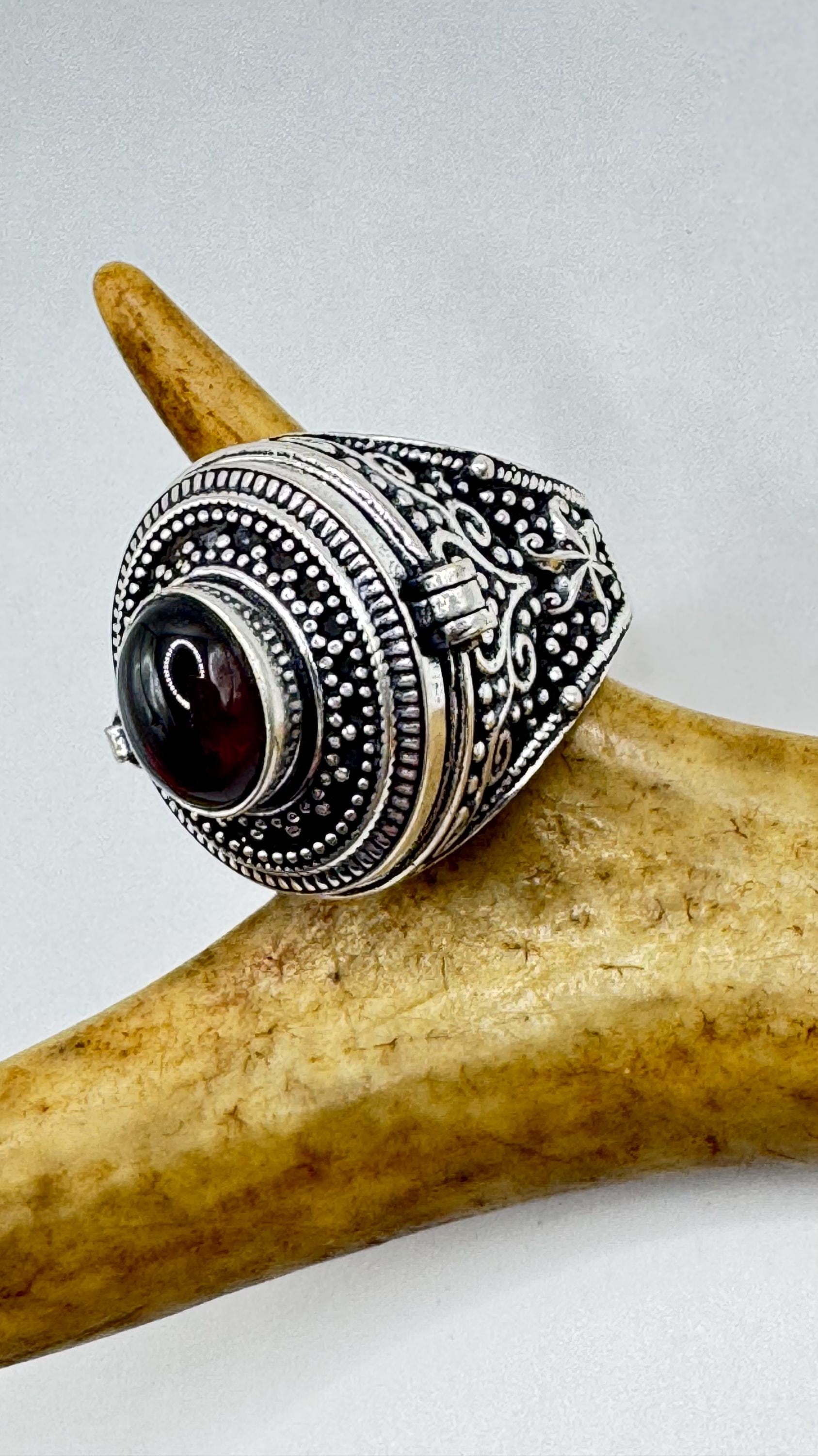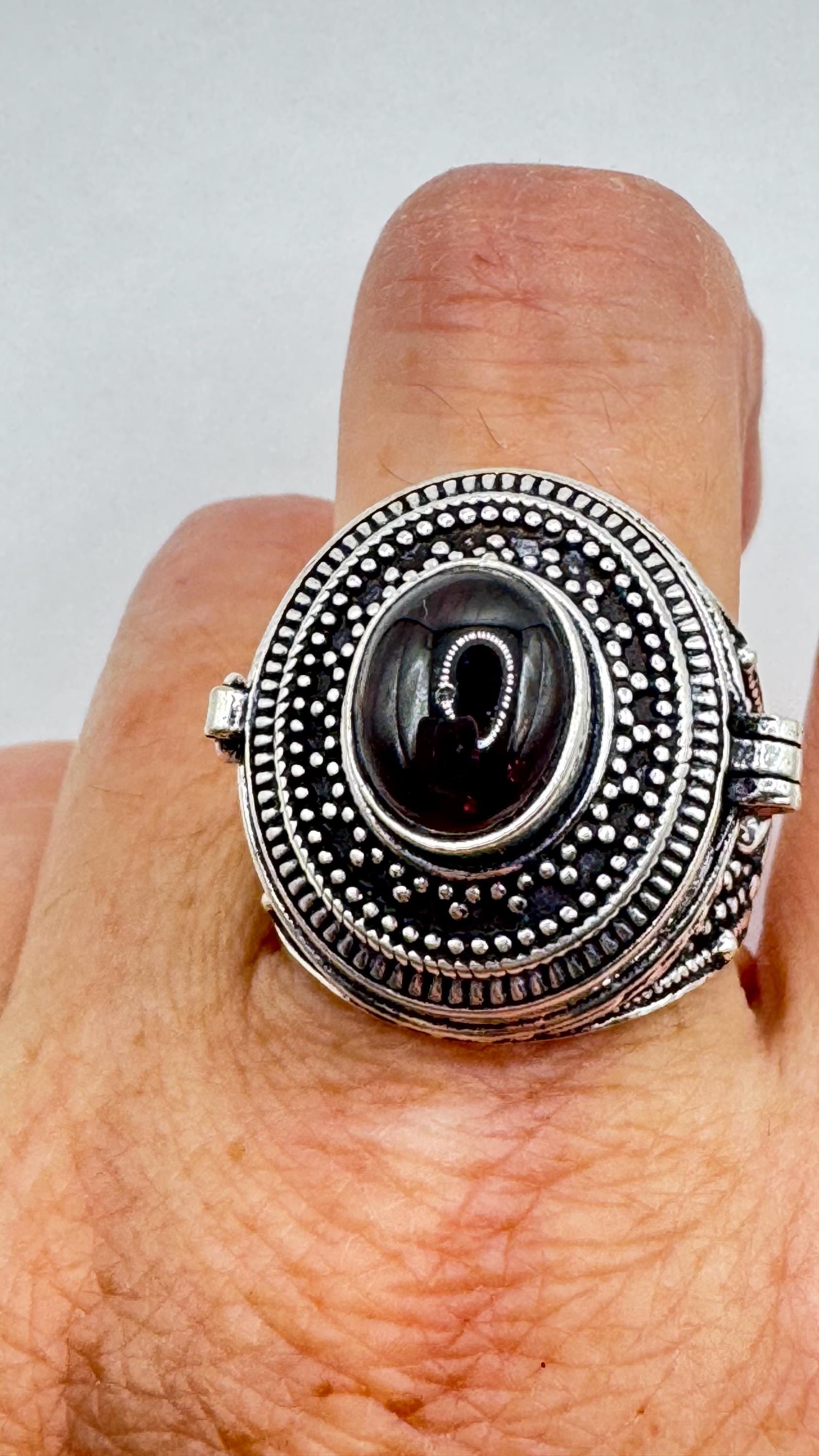 ๐ Vintage Poison Ring | Garnet Gemstone Set in Silver Bronze Pill Box Band ๐ Discover the allure of this... Read more