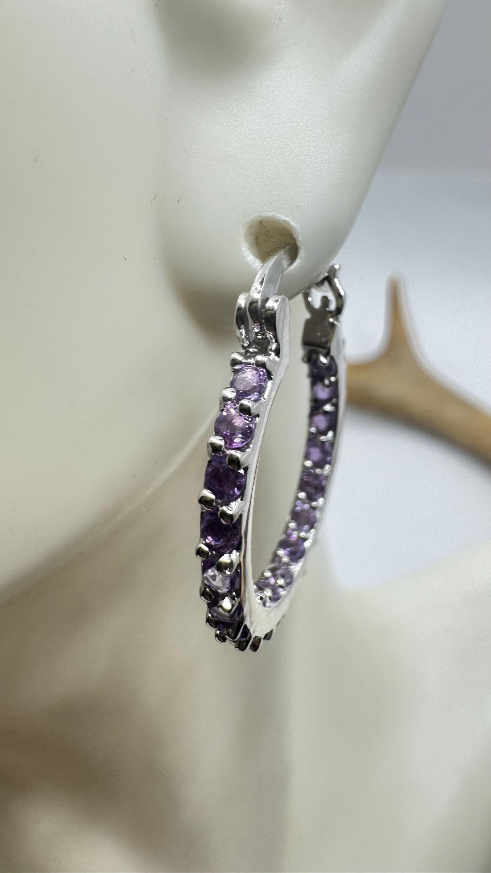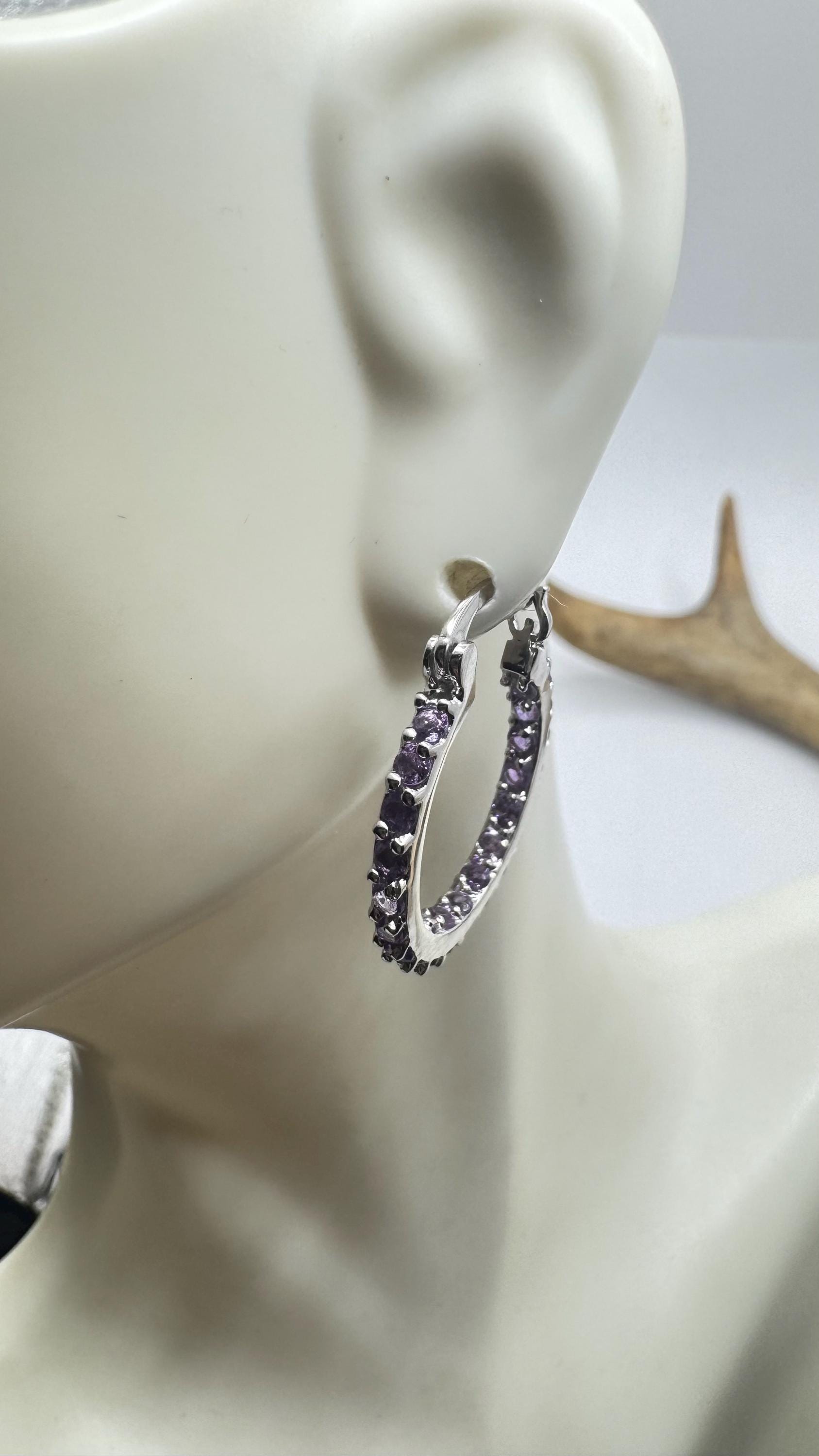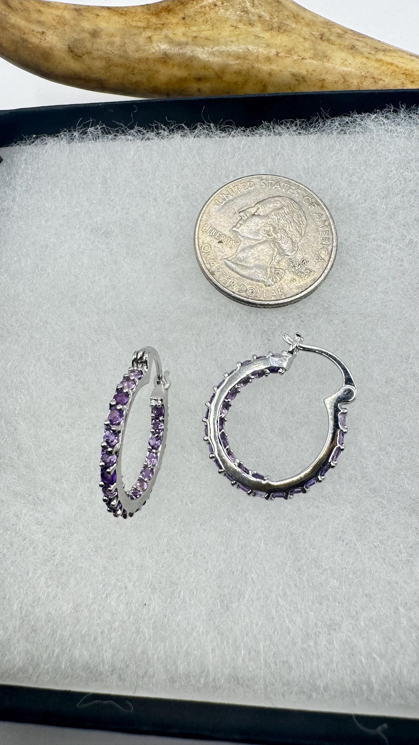 Vintage Purple Amethyst 925 Sterling Silver Hoop Earrings