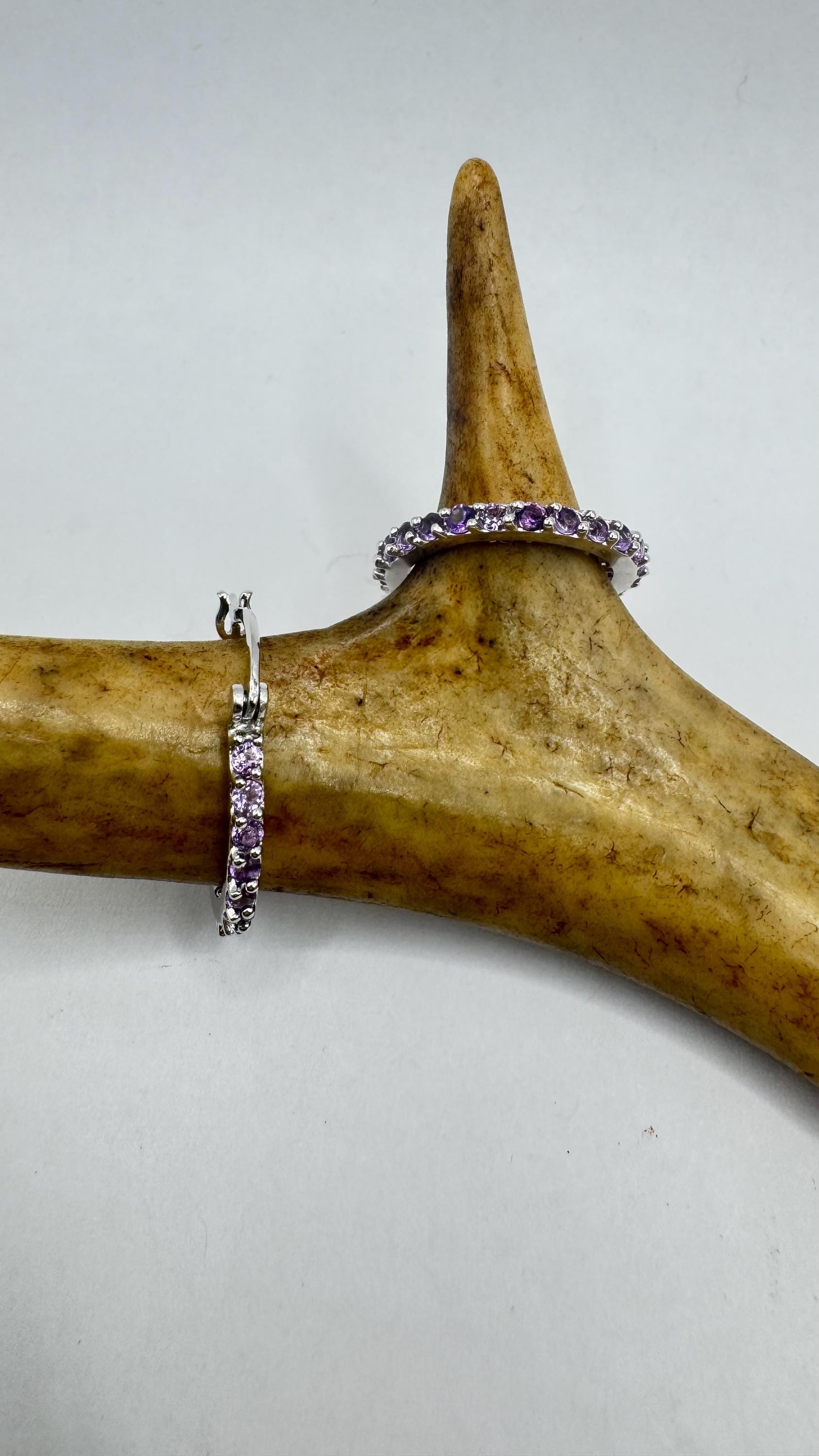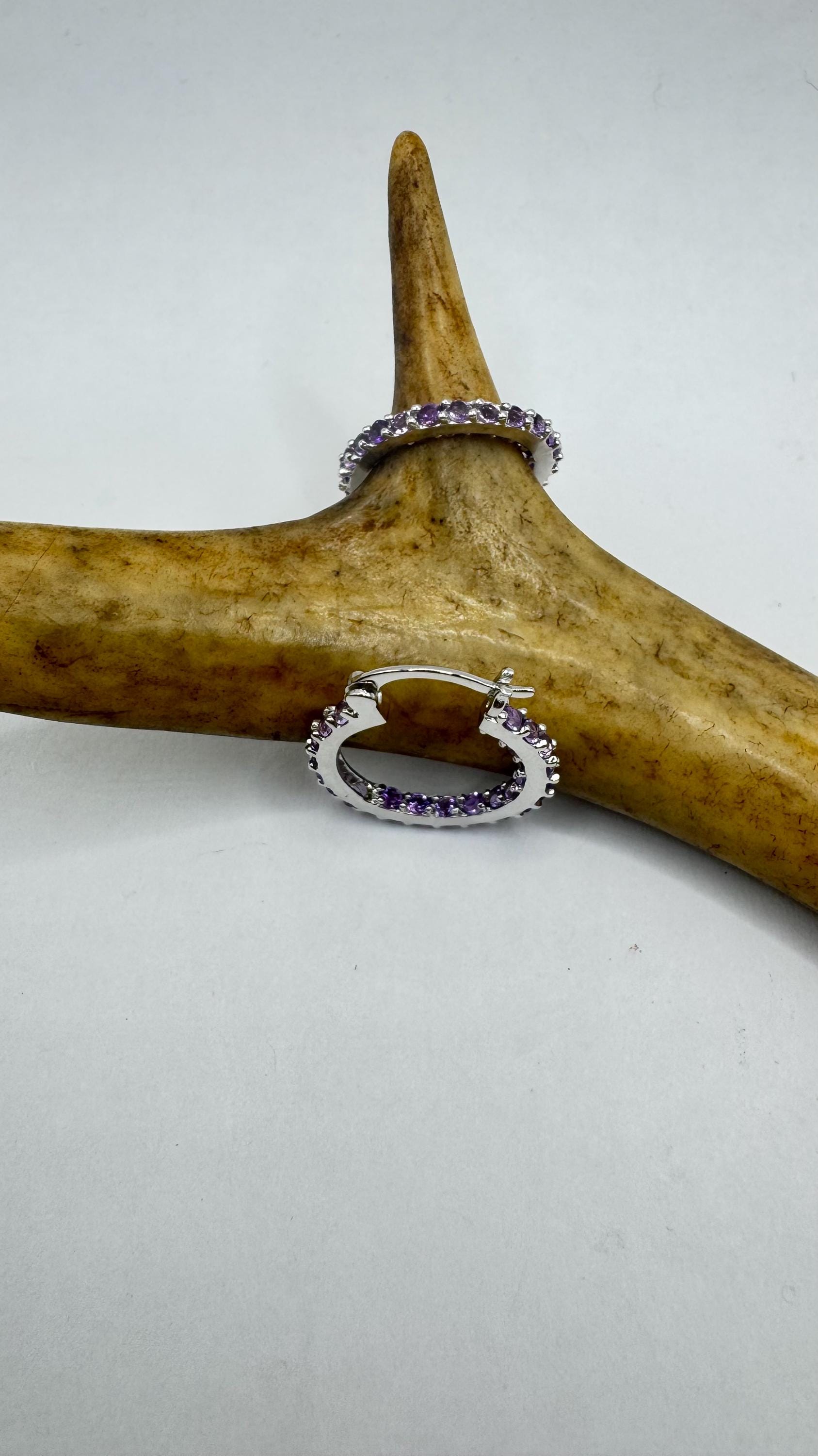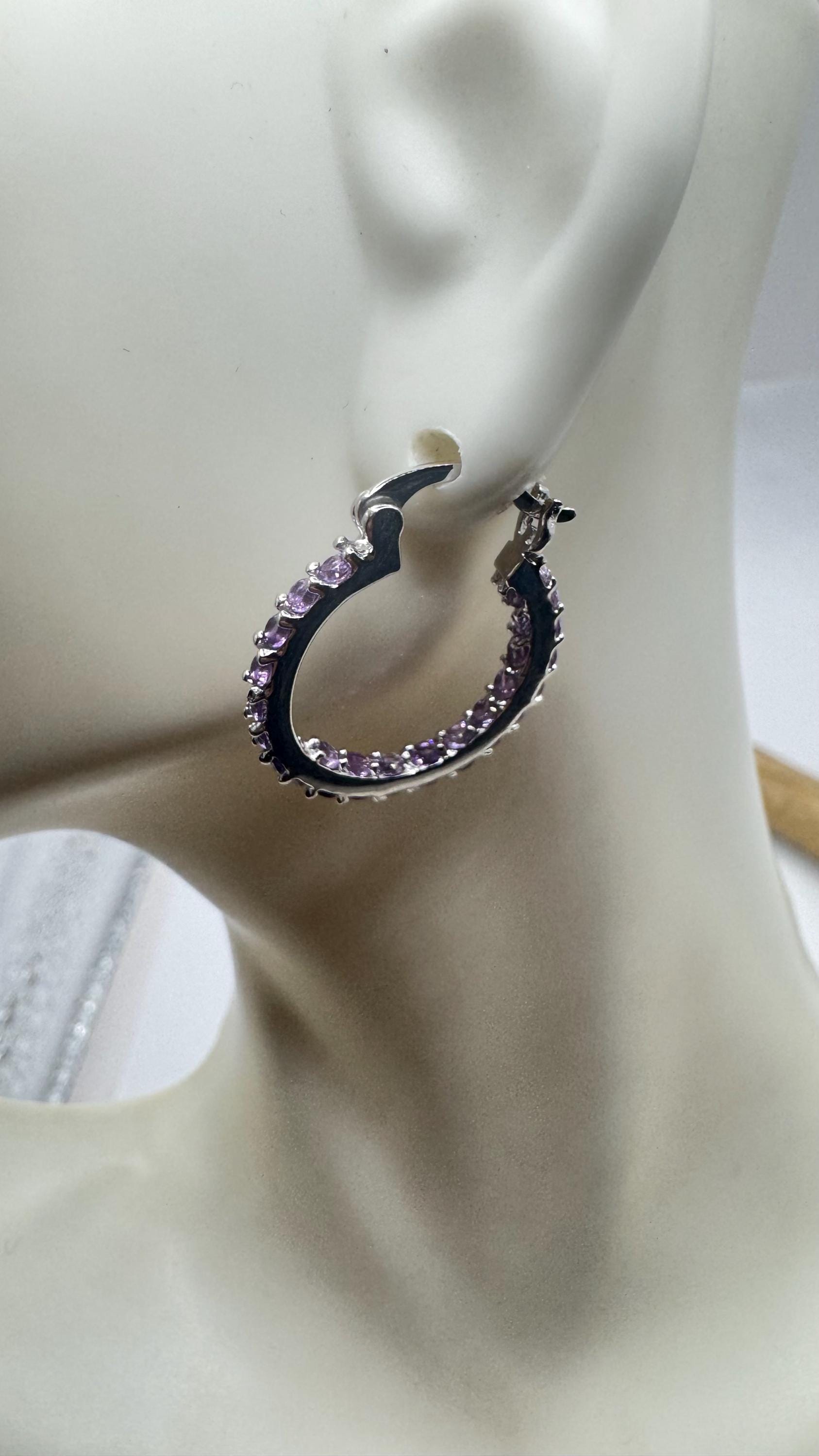 Vintage Purple Amethyst 925 Sterling Silver Hoop Earrings