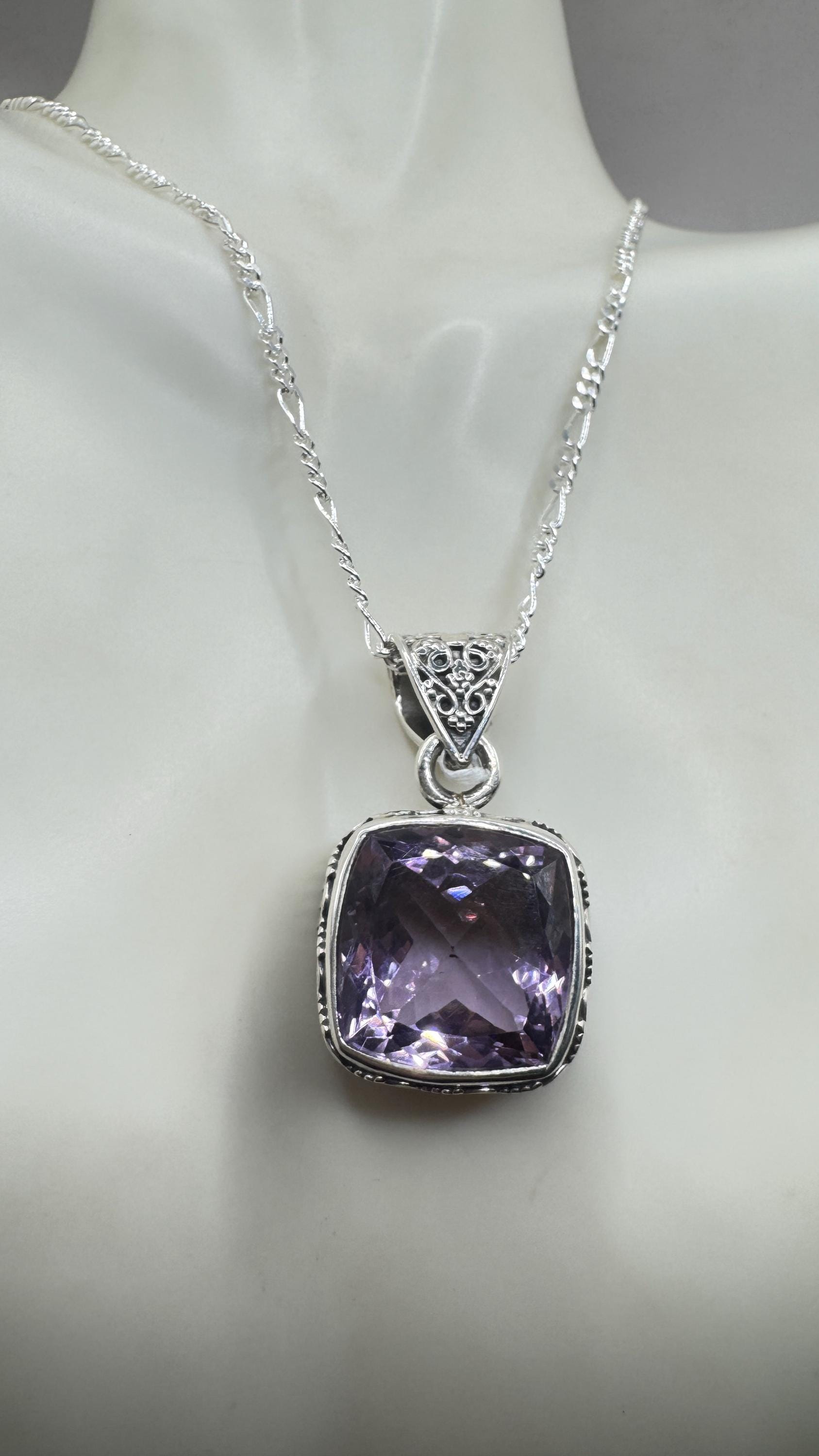 Vintage Purple Amethyst Necklace | Gemstone 925 Sterling Silver