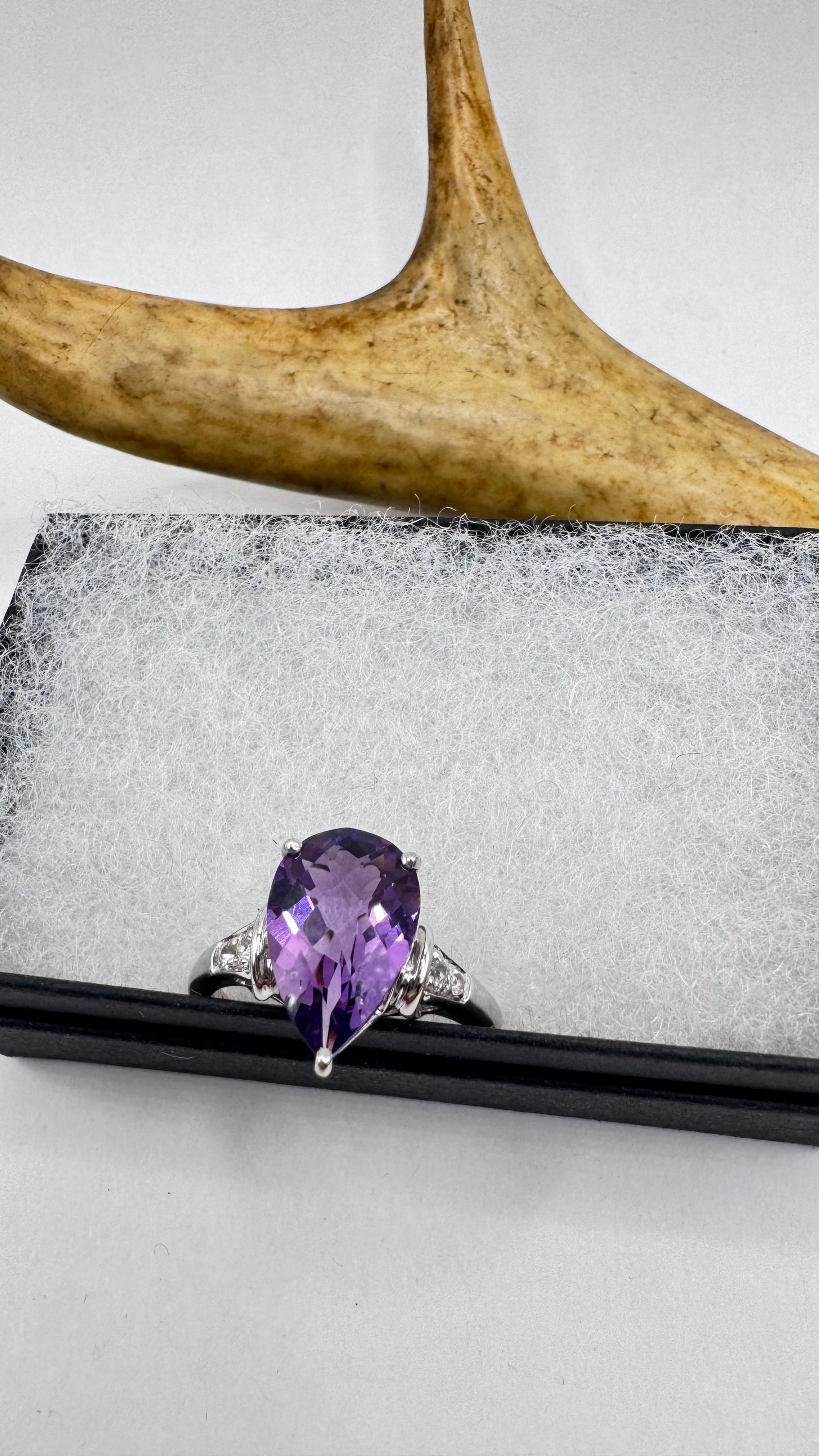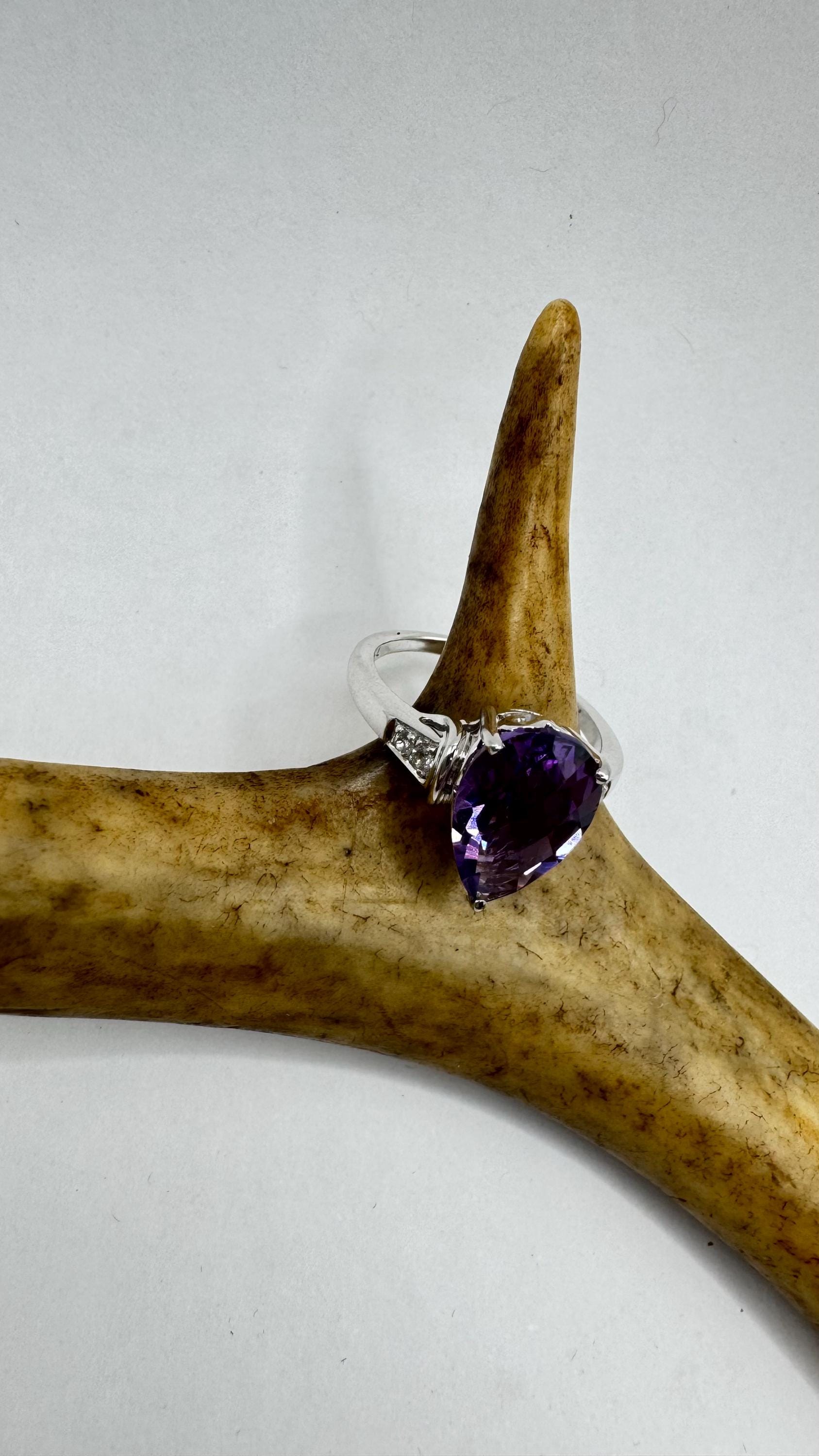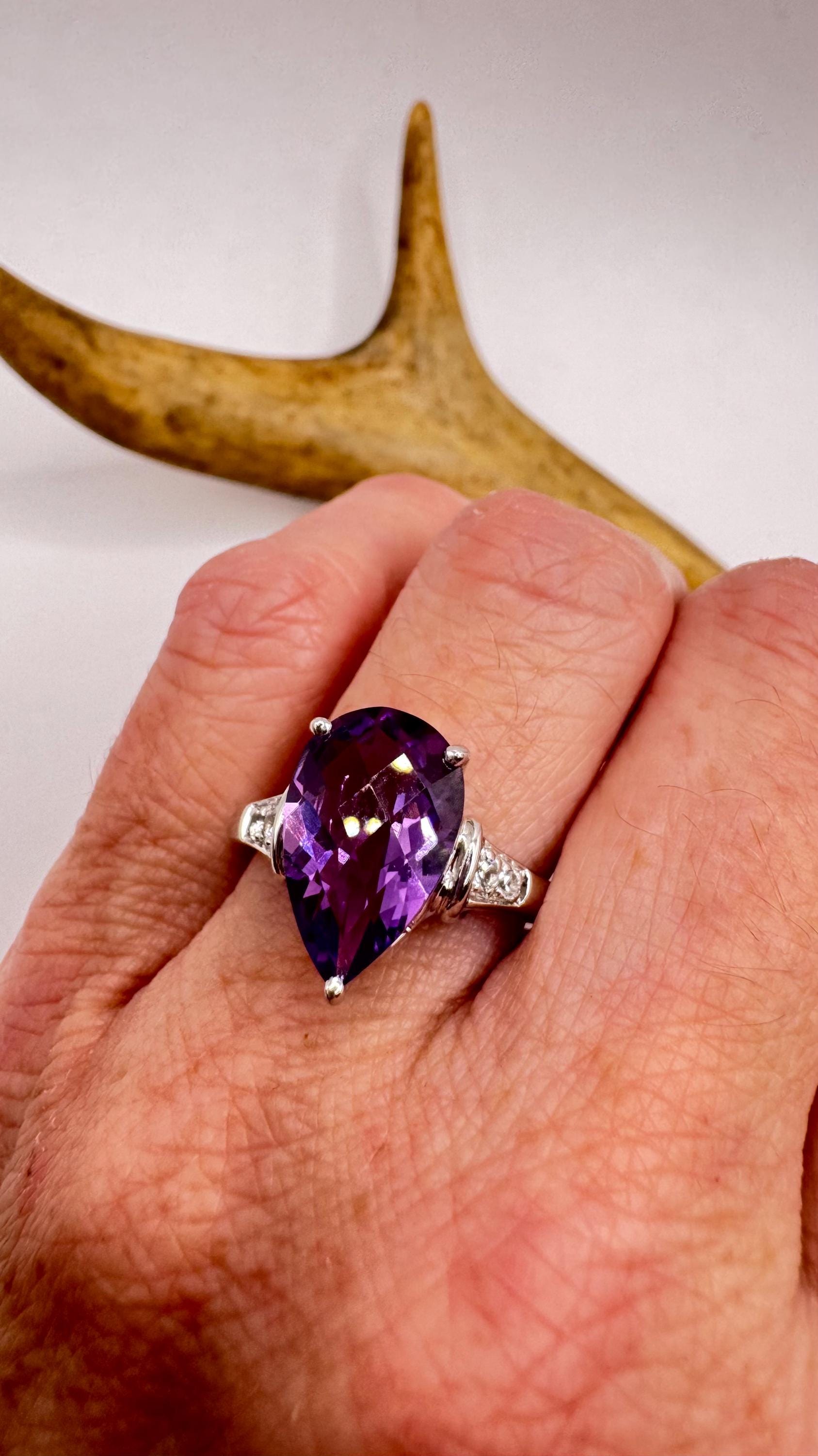 Vintage Purple Amethyst Ring Band 925 Sterling Silver cocktail statement ring