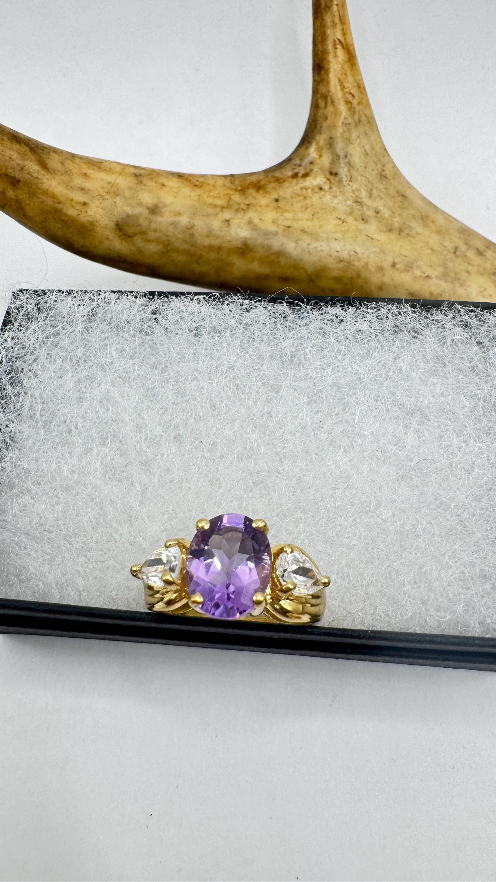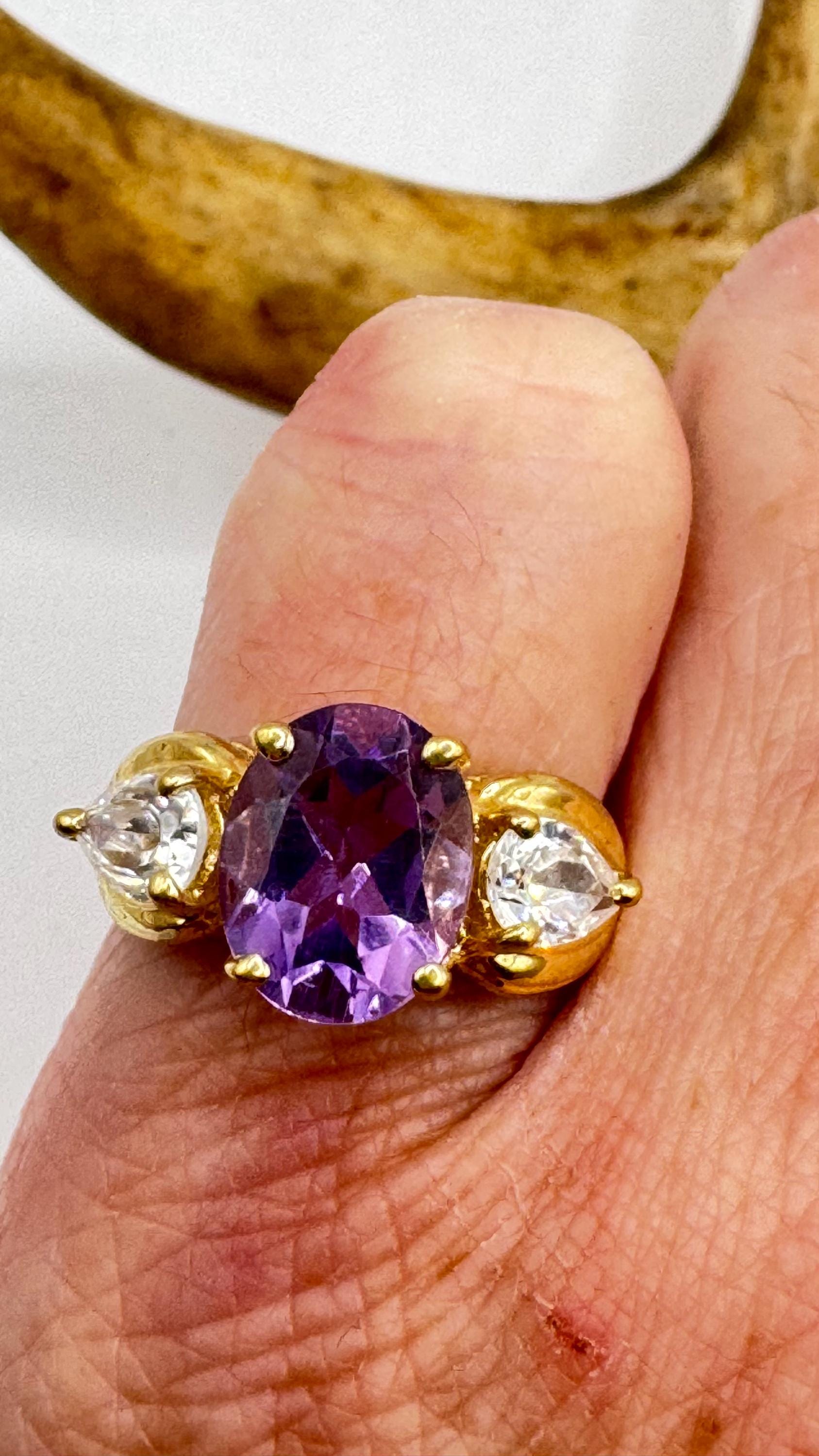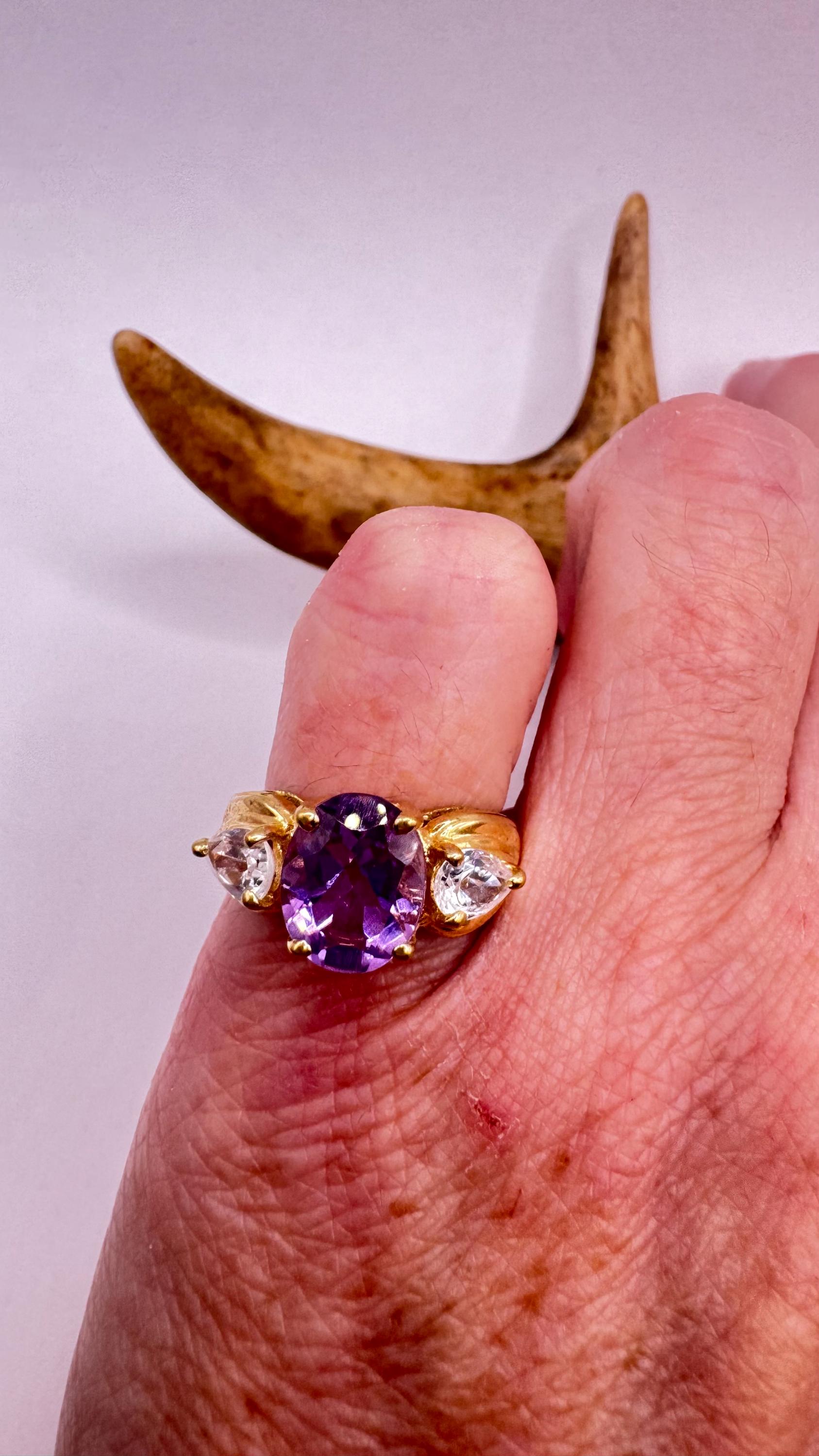 Vintage Purple Amethyst Ring Gemstone Set in Golden 925 Sterling Silver Elegant cocktail statement ring