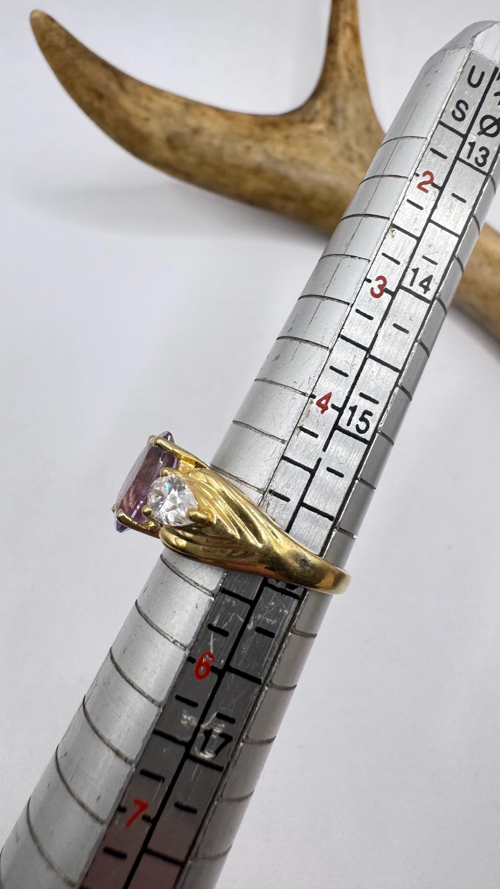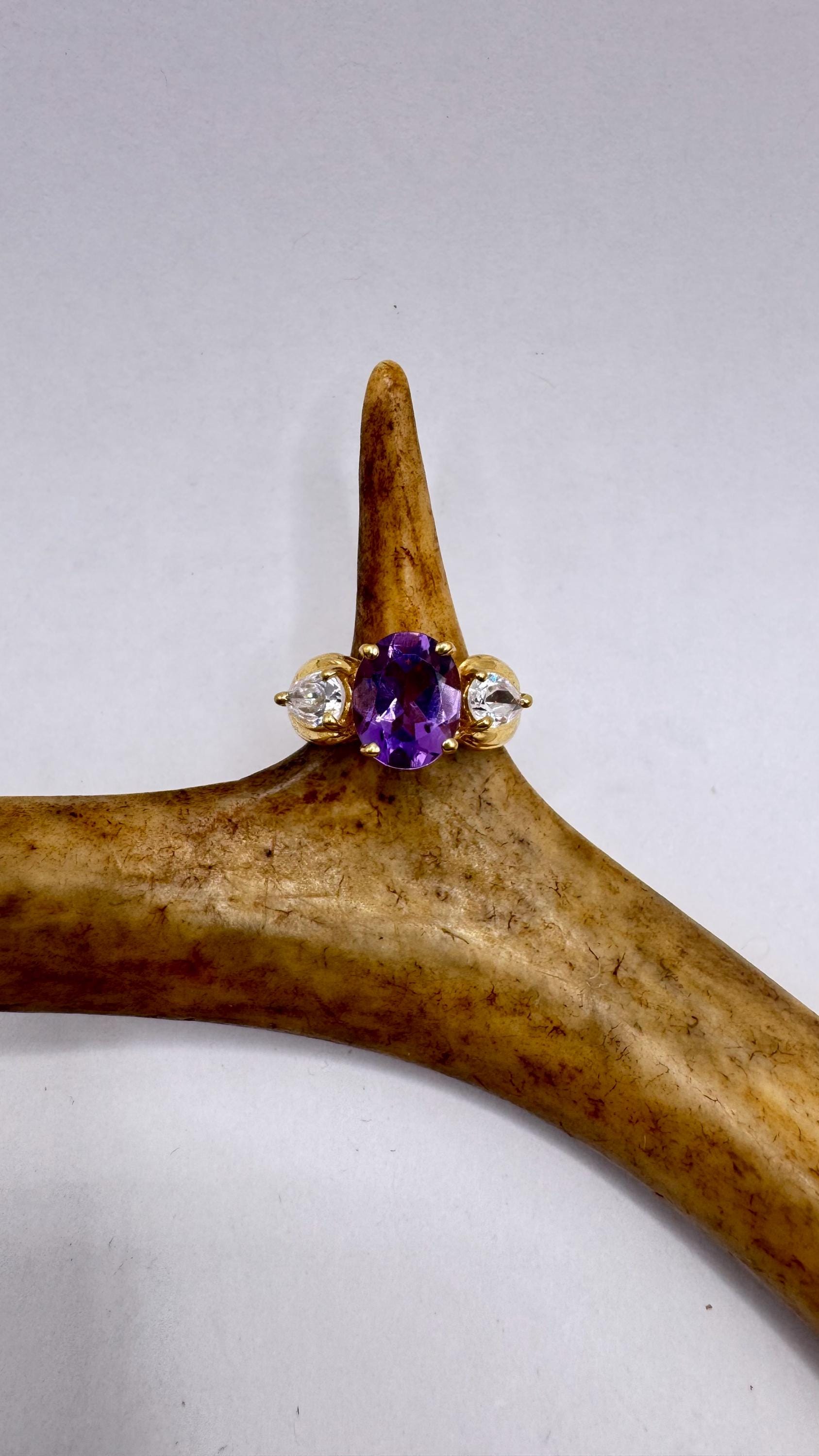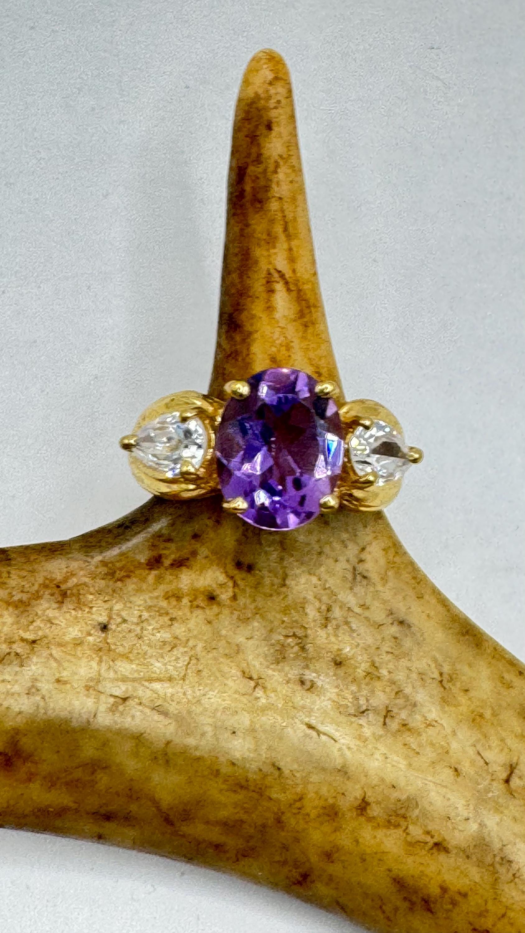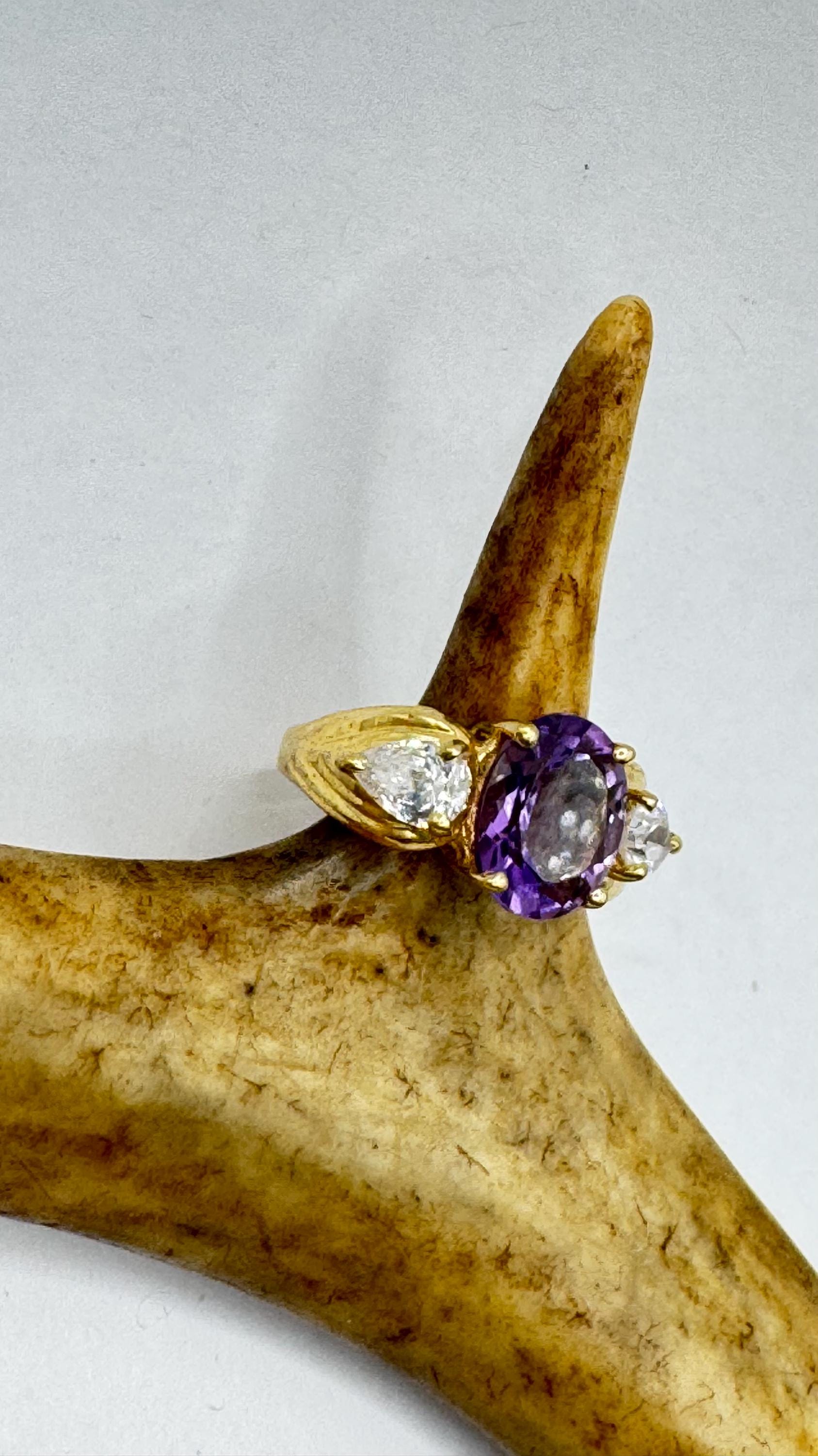 Vintage Purple Amethyst Ring Gemstone Set in Golden 925 Sterling Silver Elegant cocktail statement ring