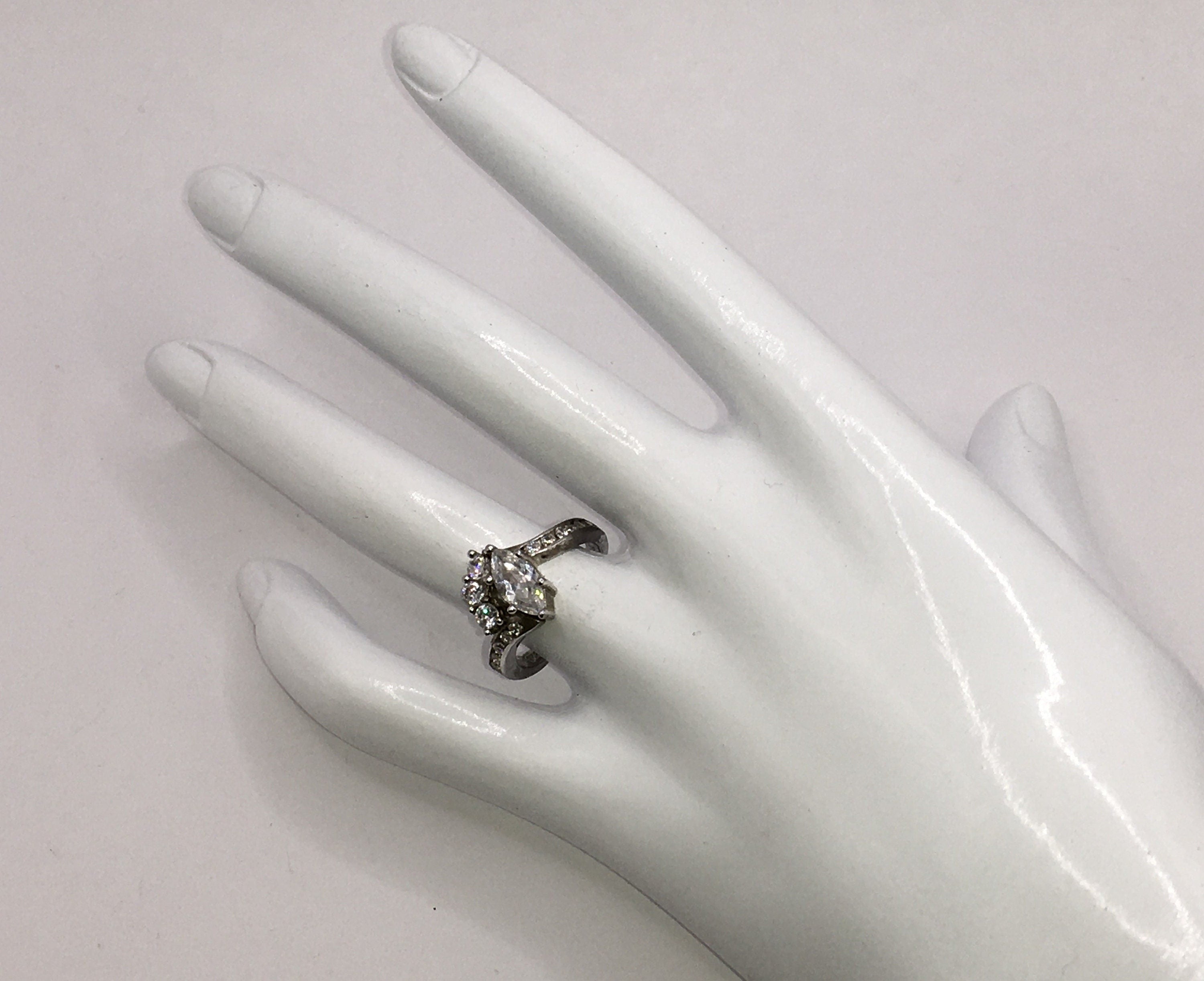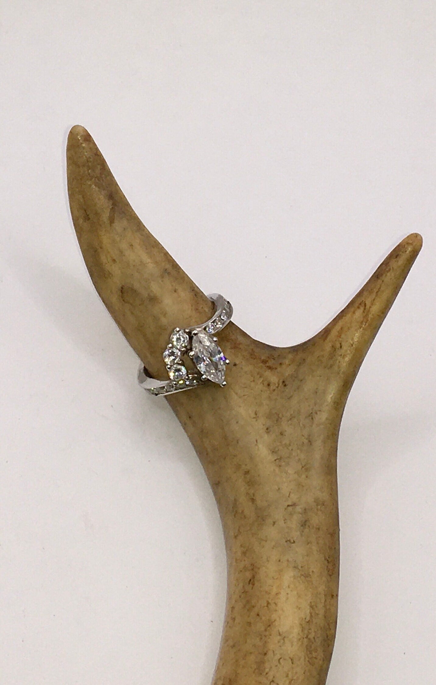 Vintage Ring | Clear Crystal Engagement Promise Wedding Stacking Ring | 925 Sterling Silver Band | Size 7 3/4