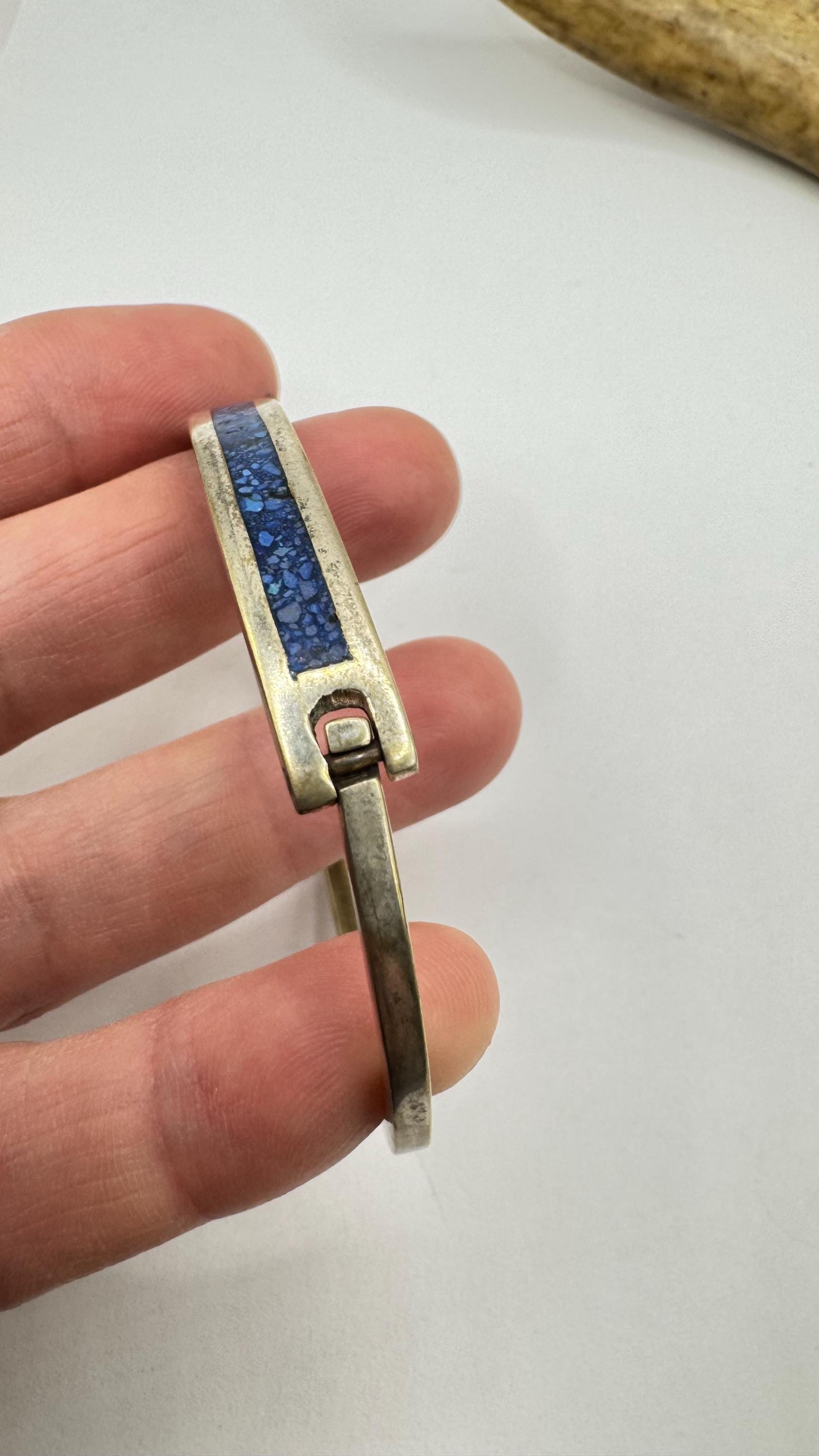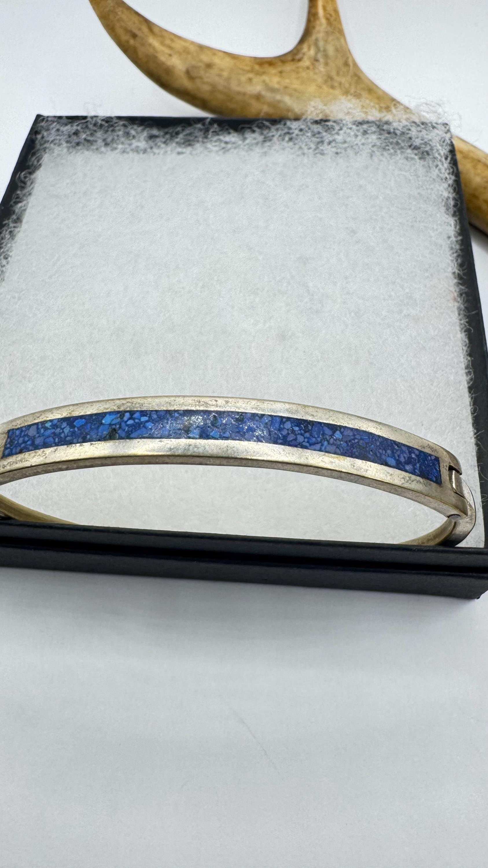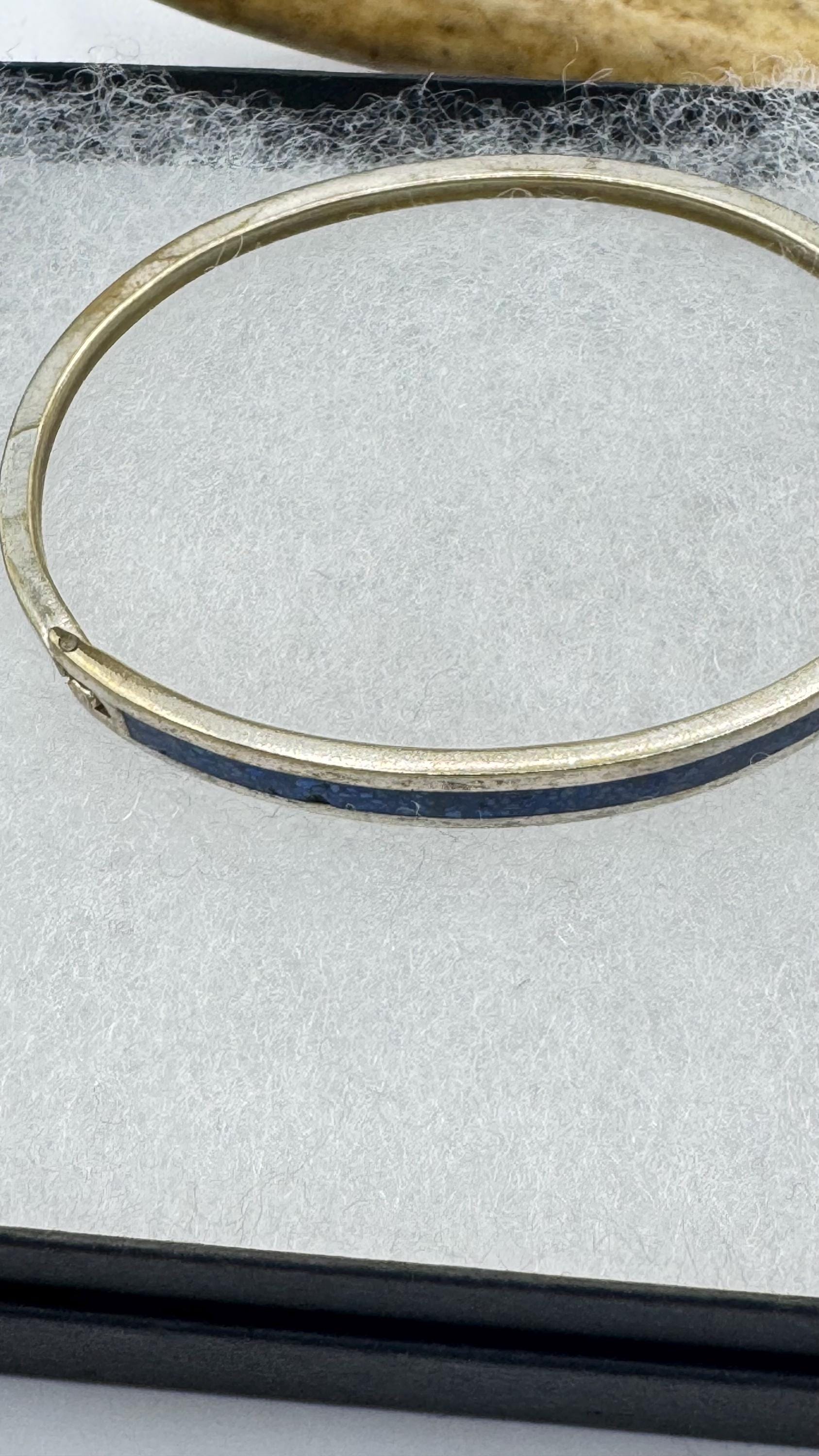 Vintage Silver bangle Cuff Blue Lapis LazuliBracelet