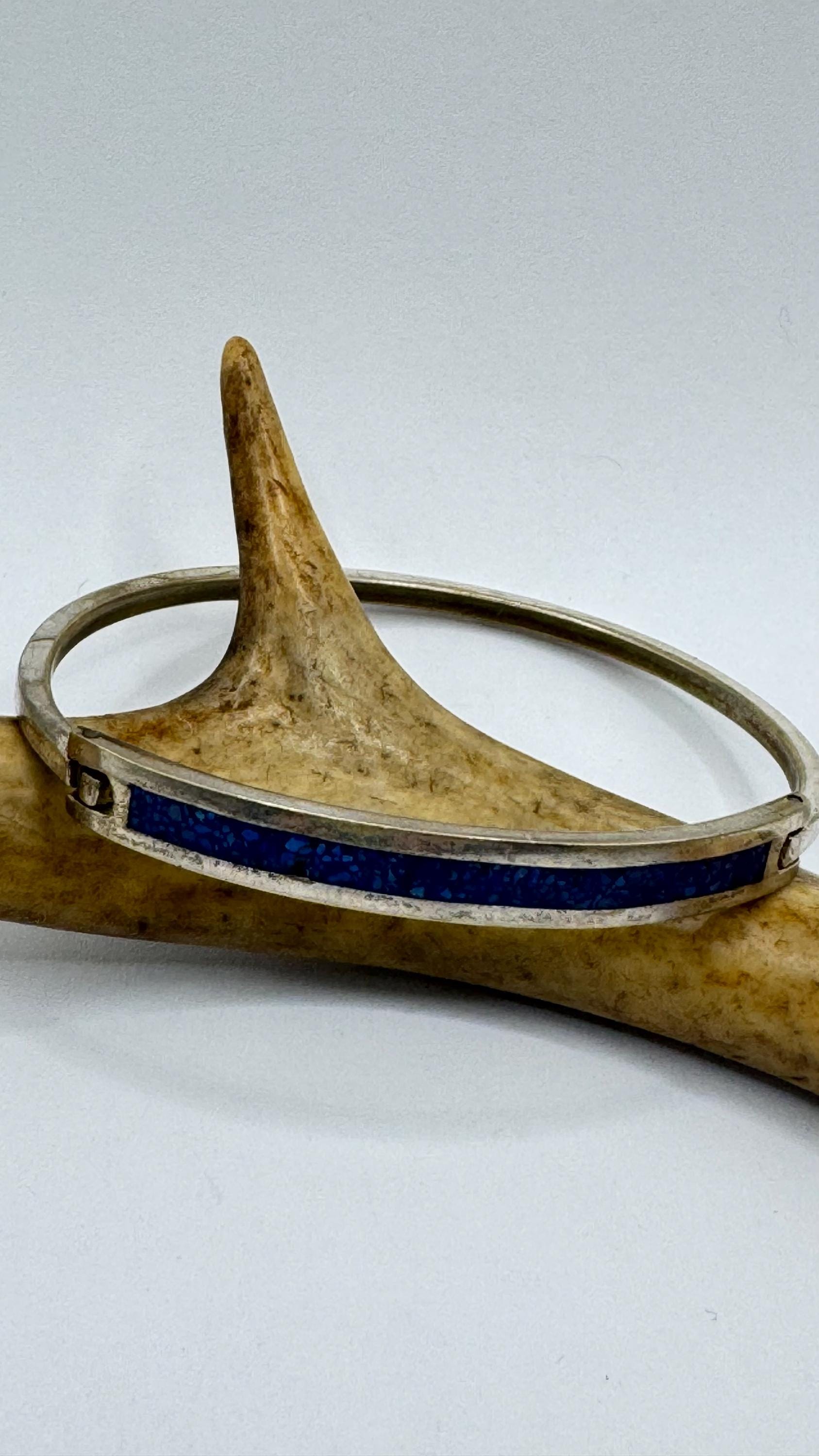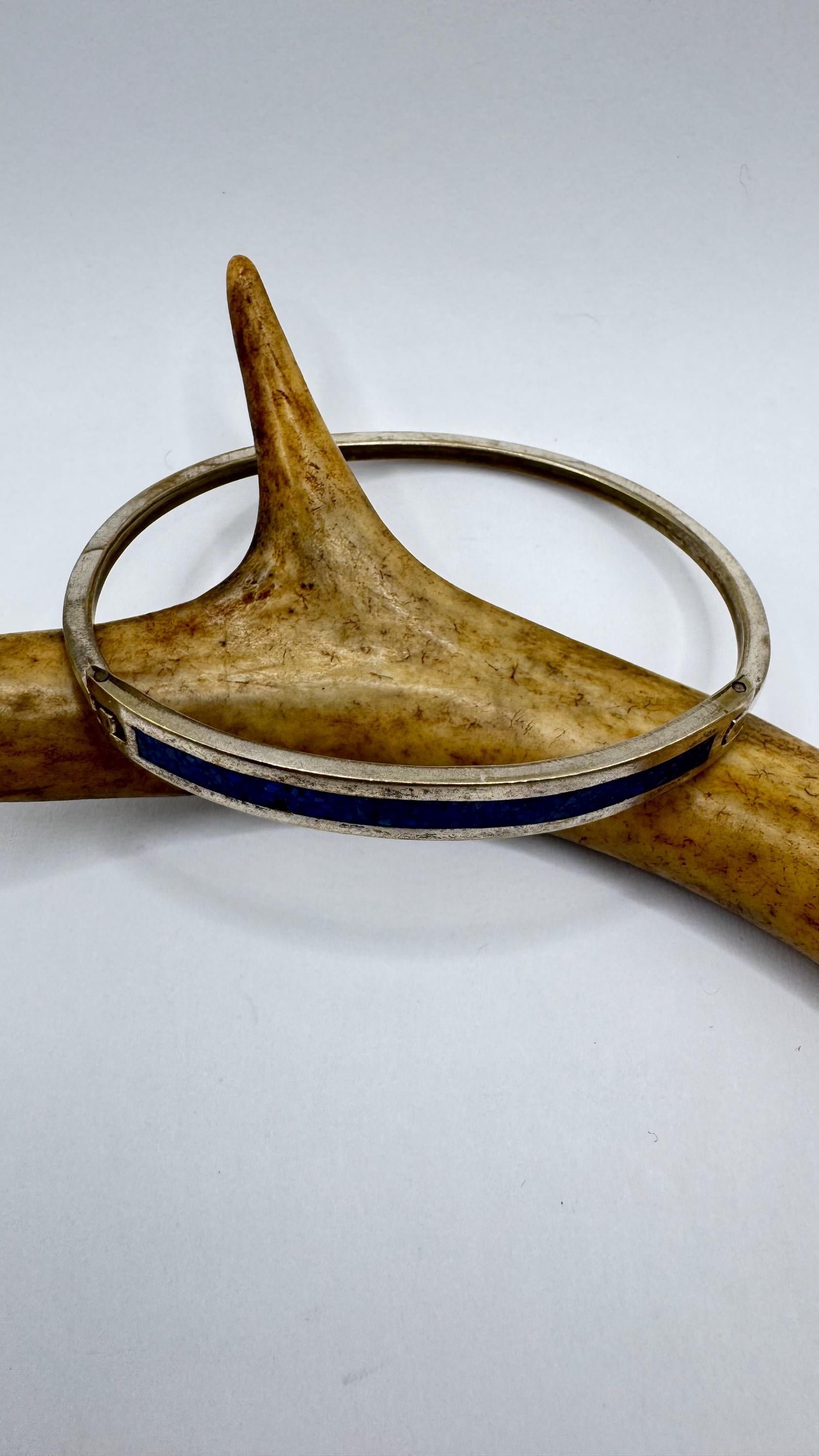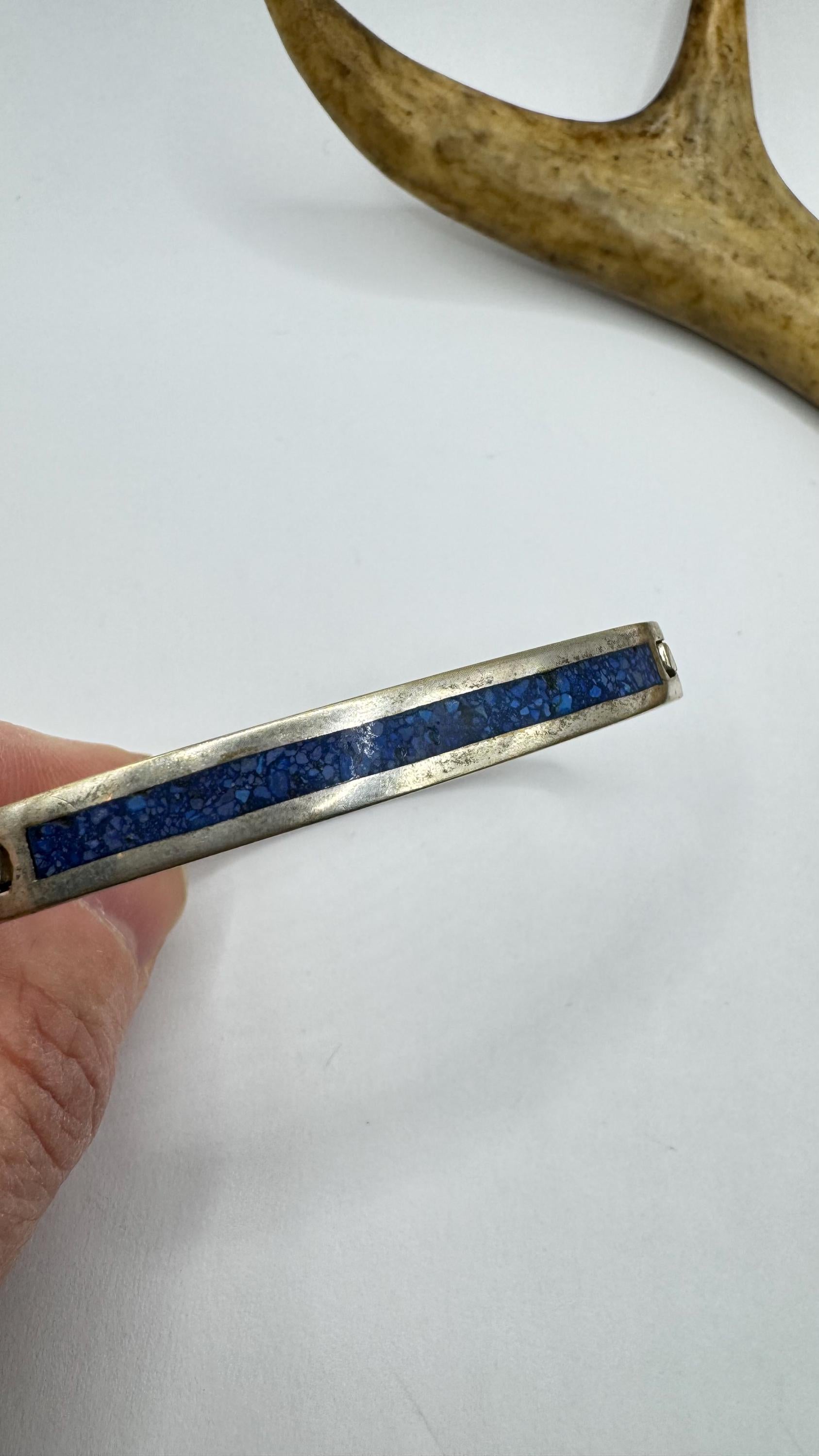 Vintage Silver bangle Cuff Blue Lapis LazuliBracelet