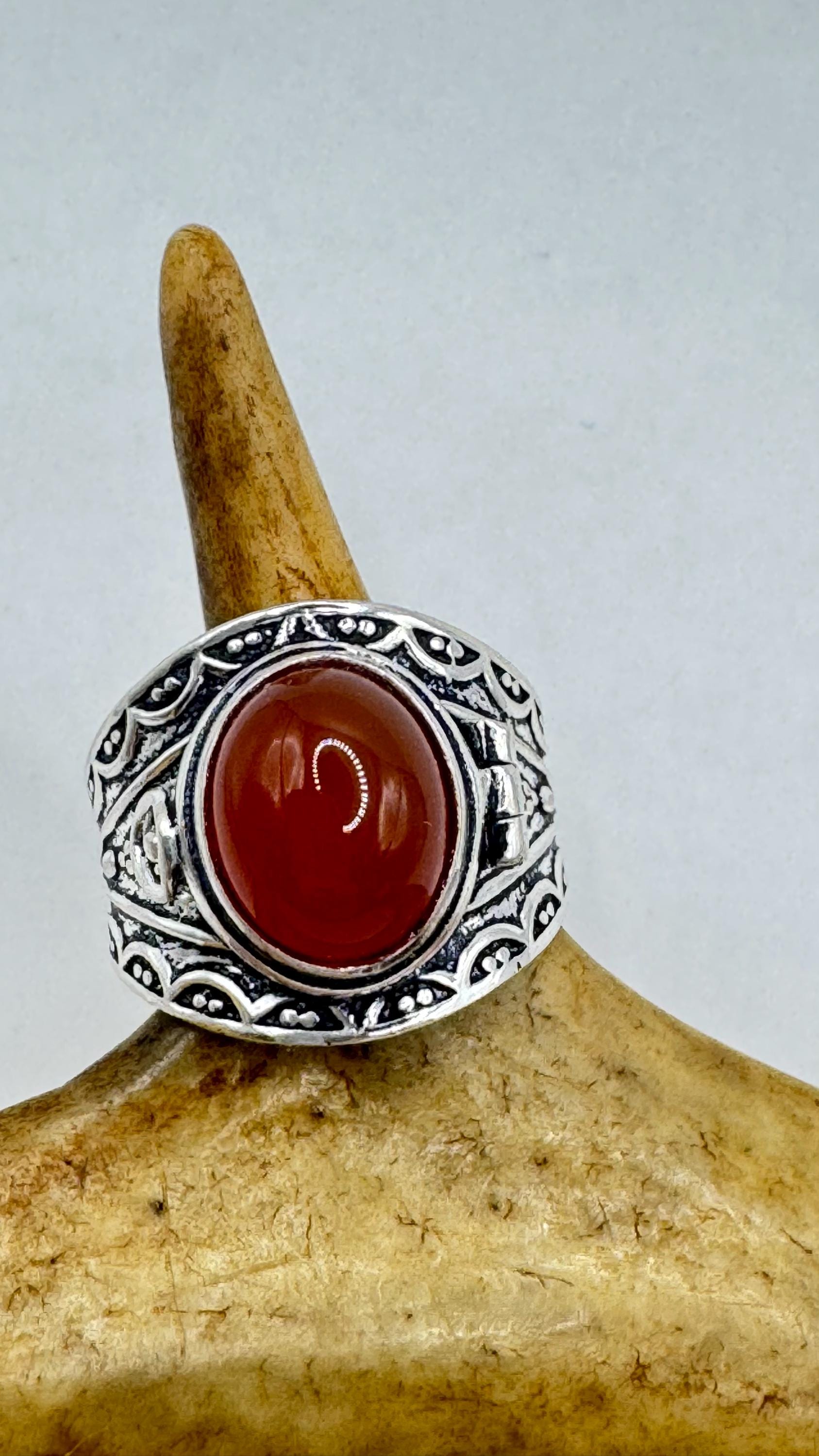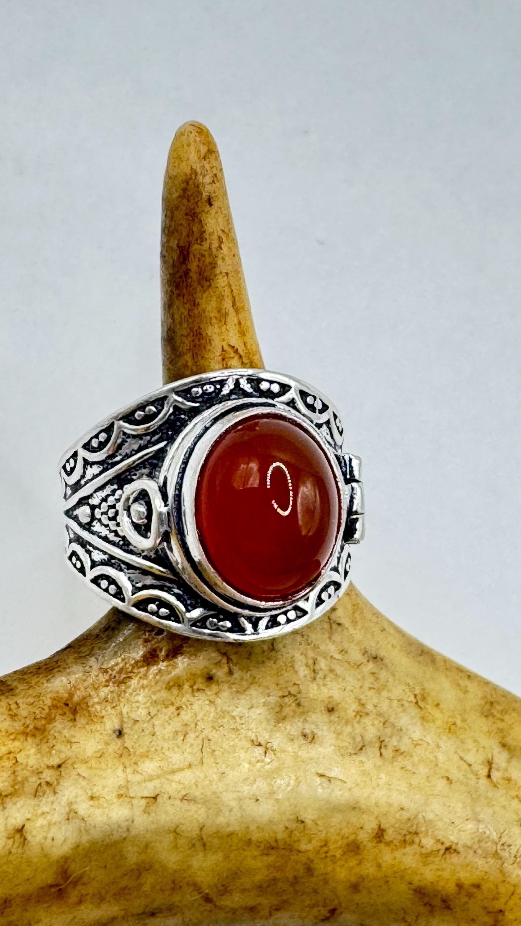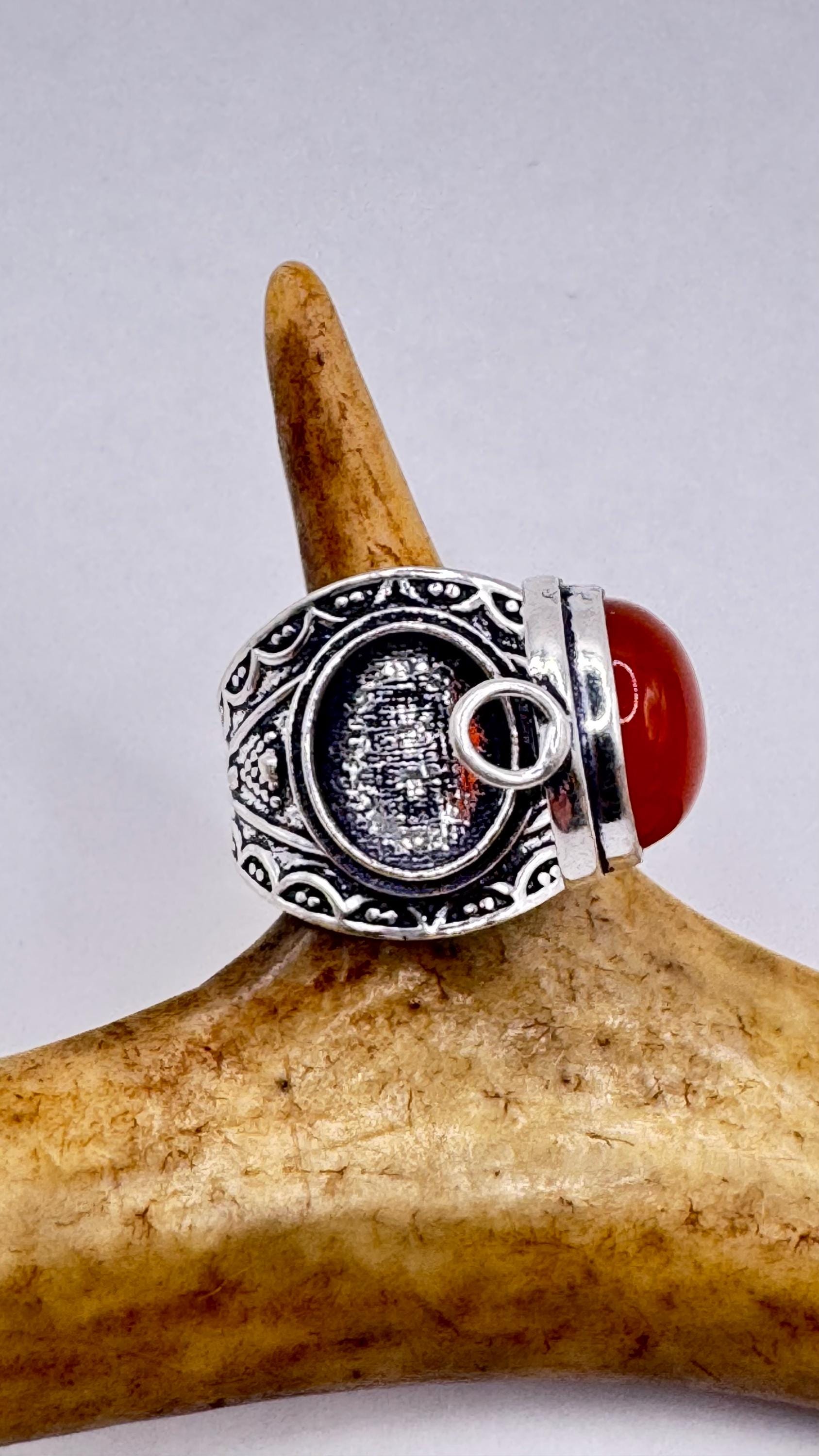 Vintage Silver Bronze Poison Ring | Red Carnelian | Unique Gift Statement Ring