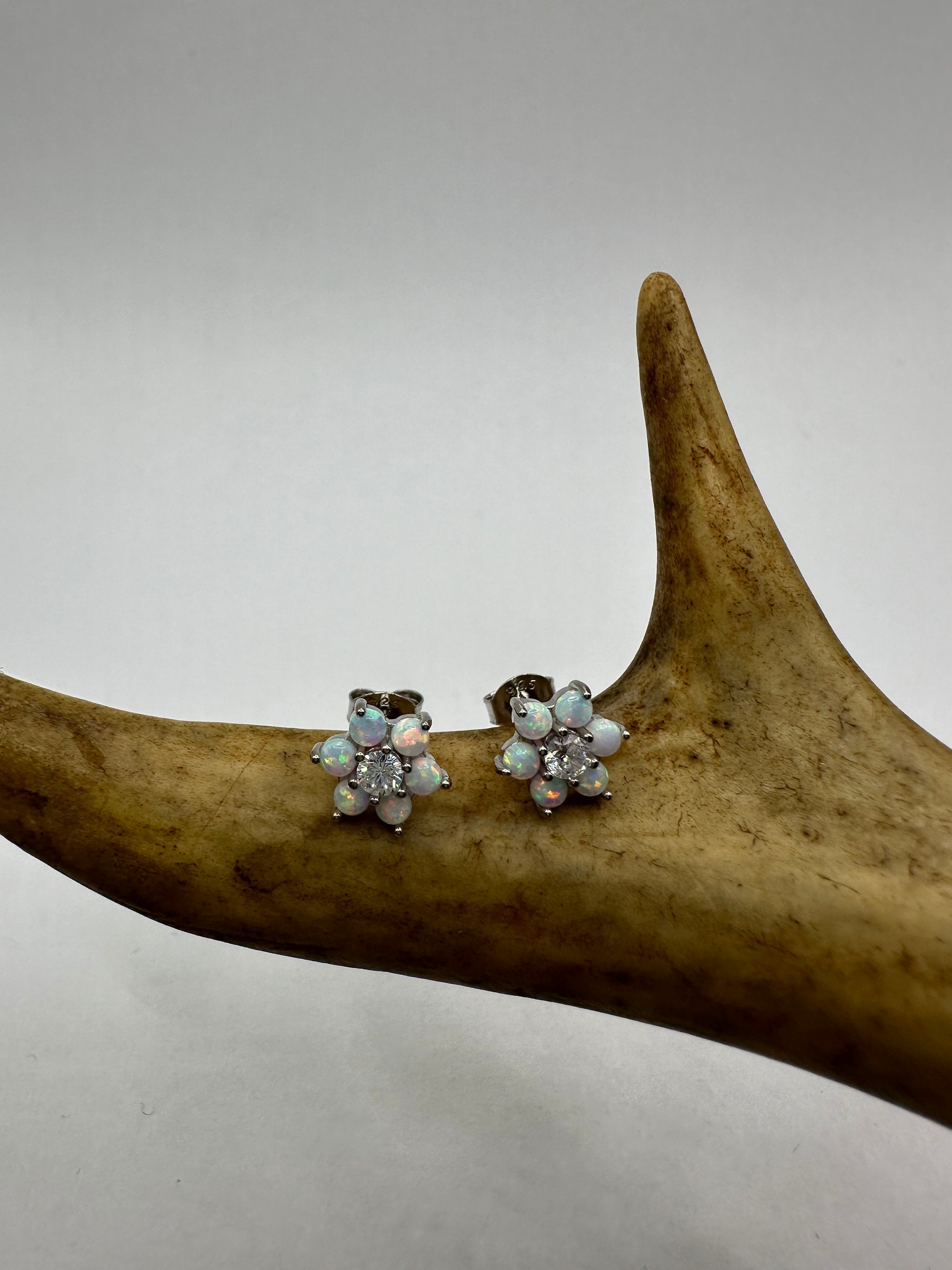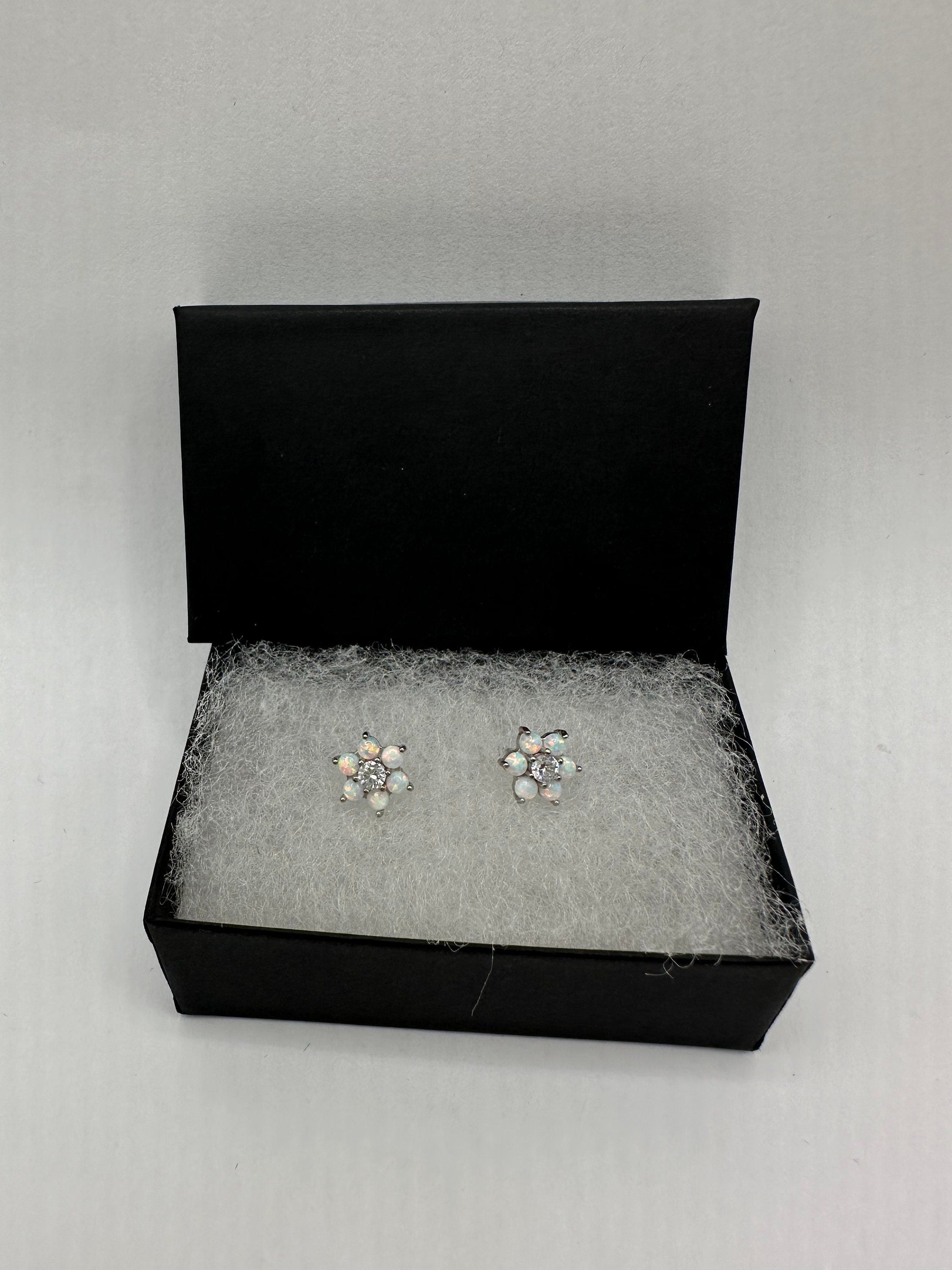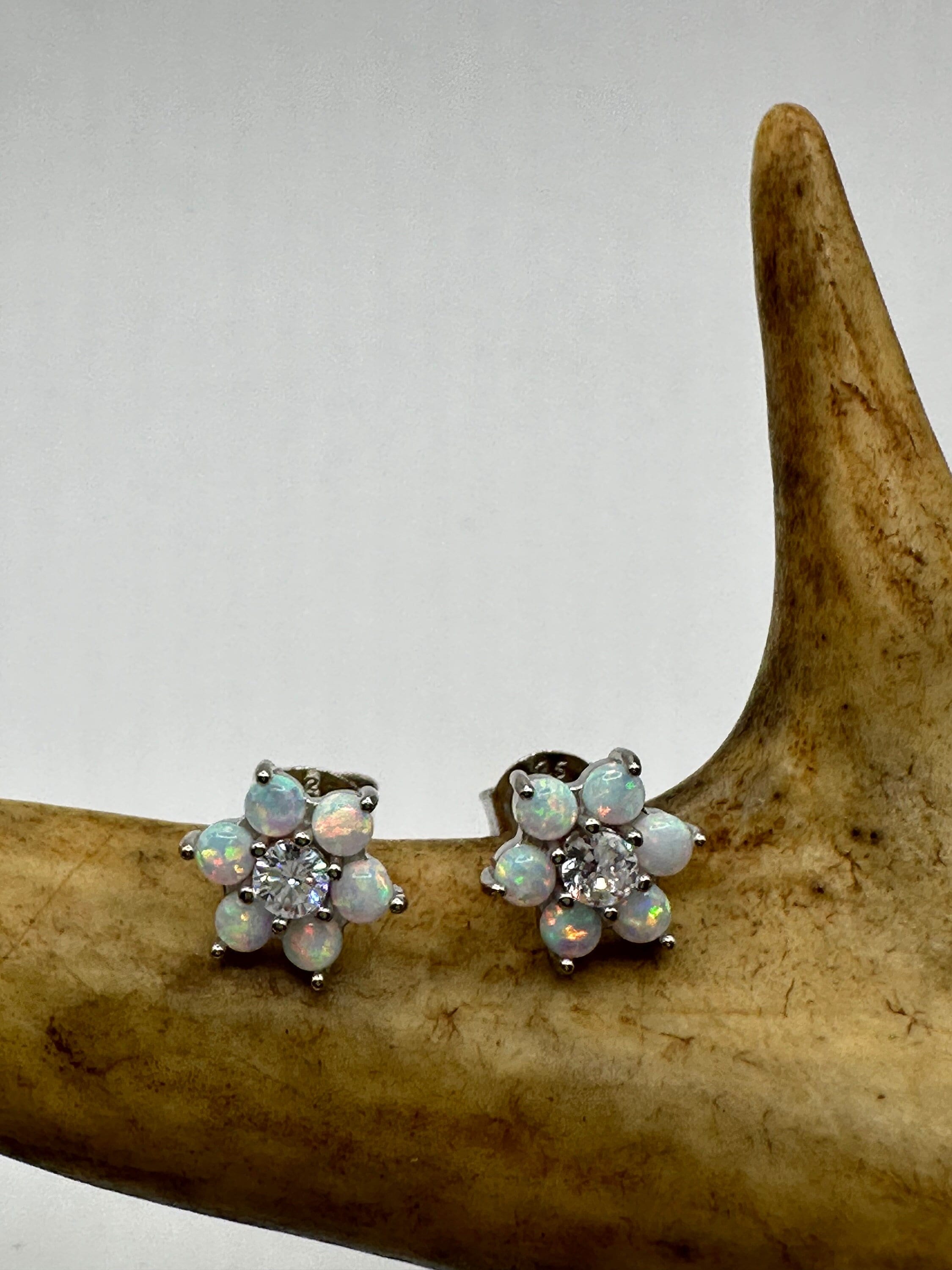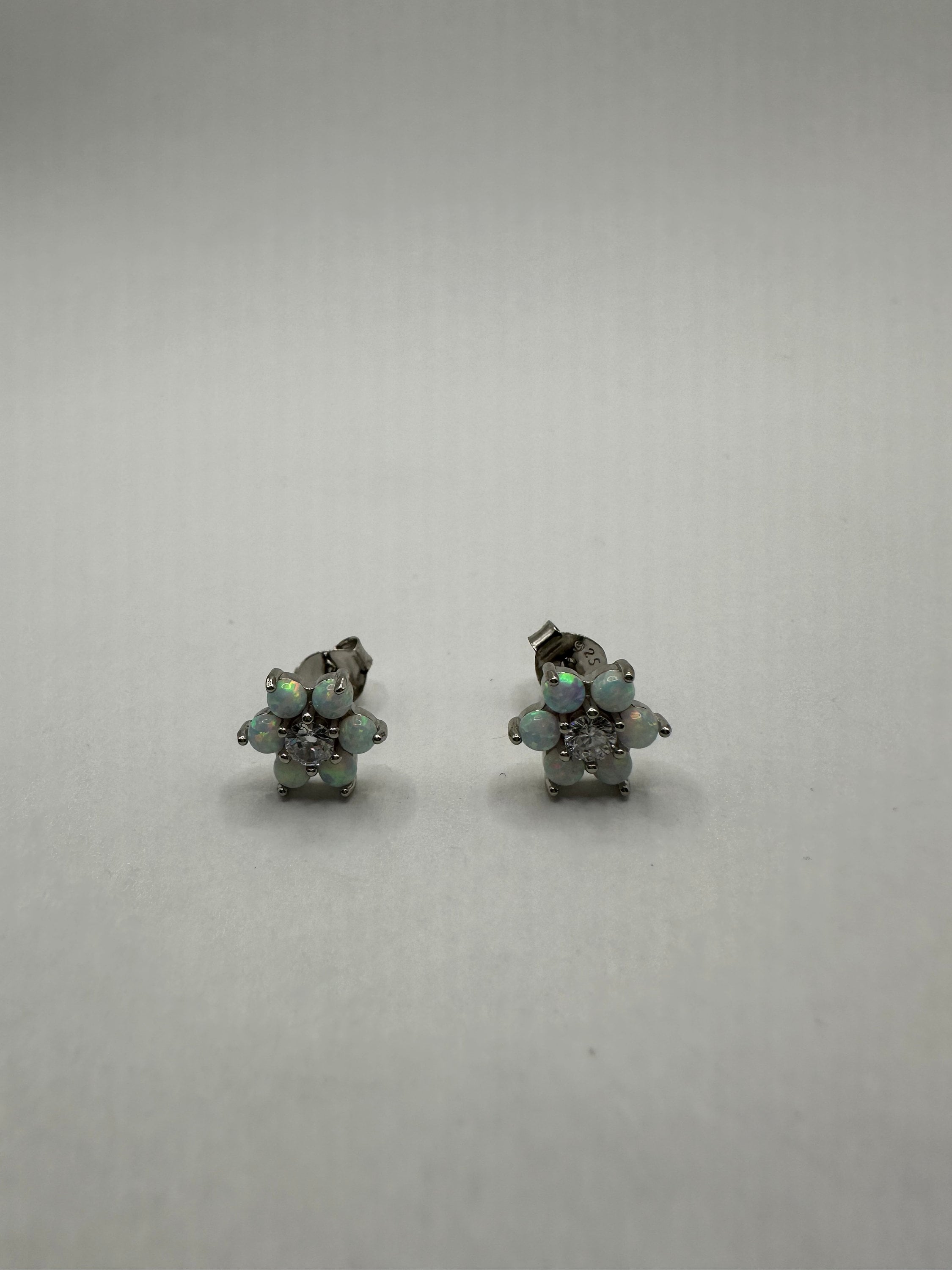 Vintage Silver Earrings | White Fire Opal Stud Buttons