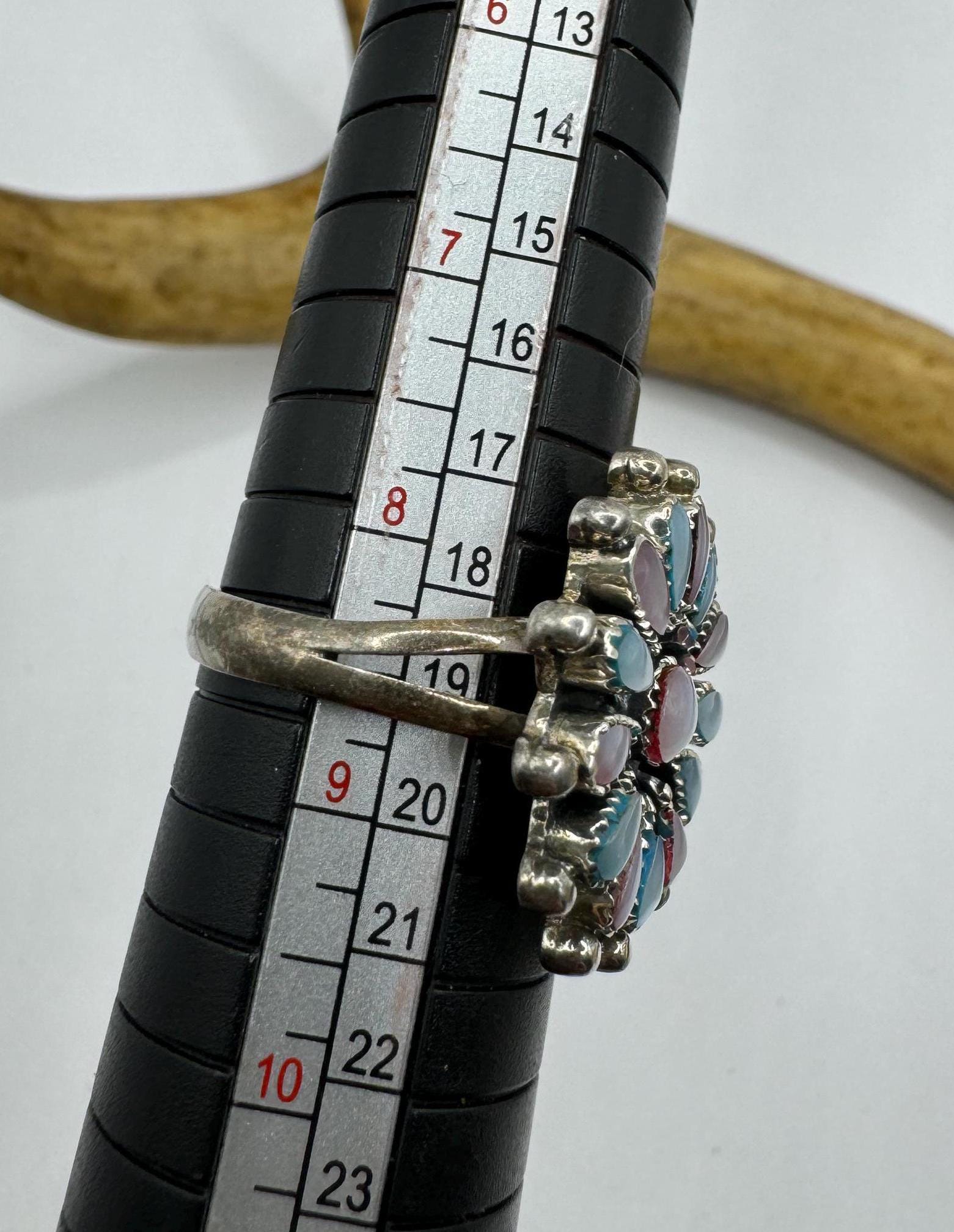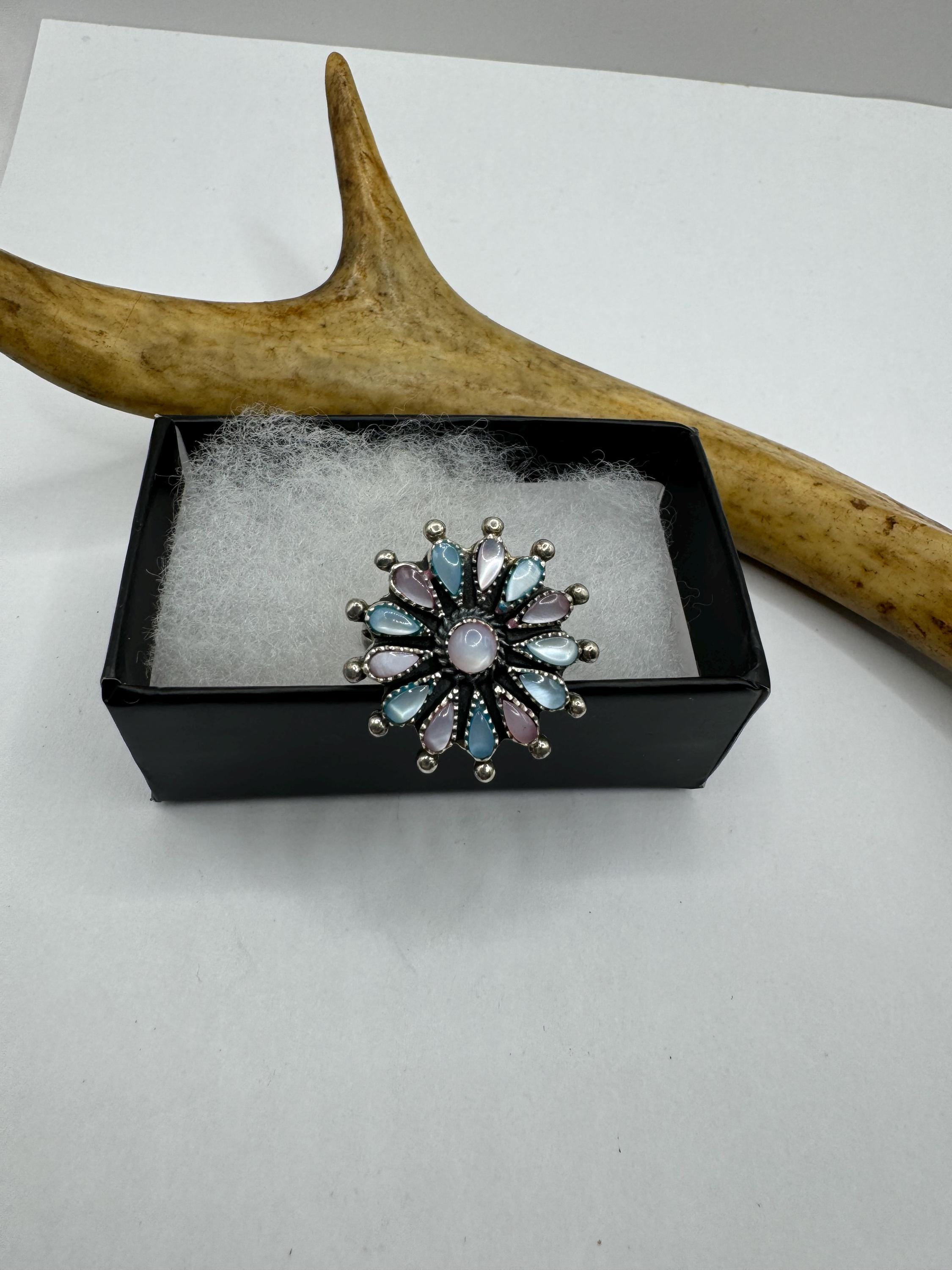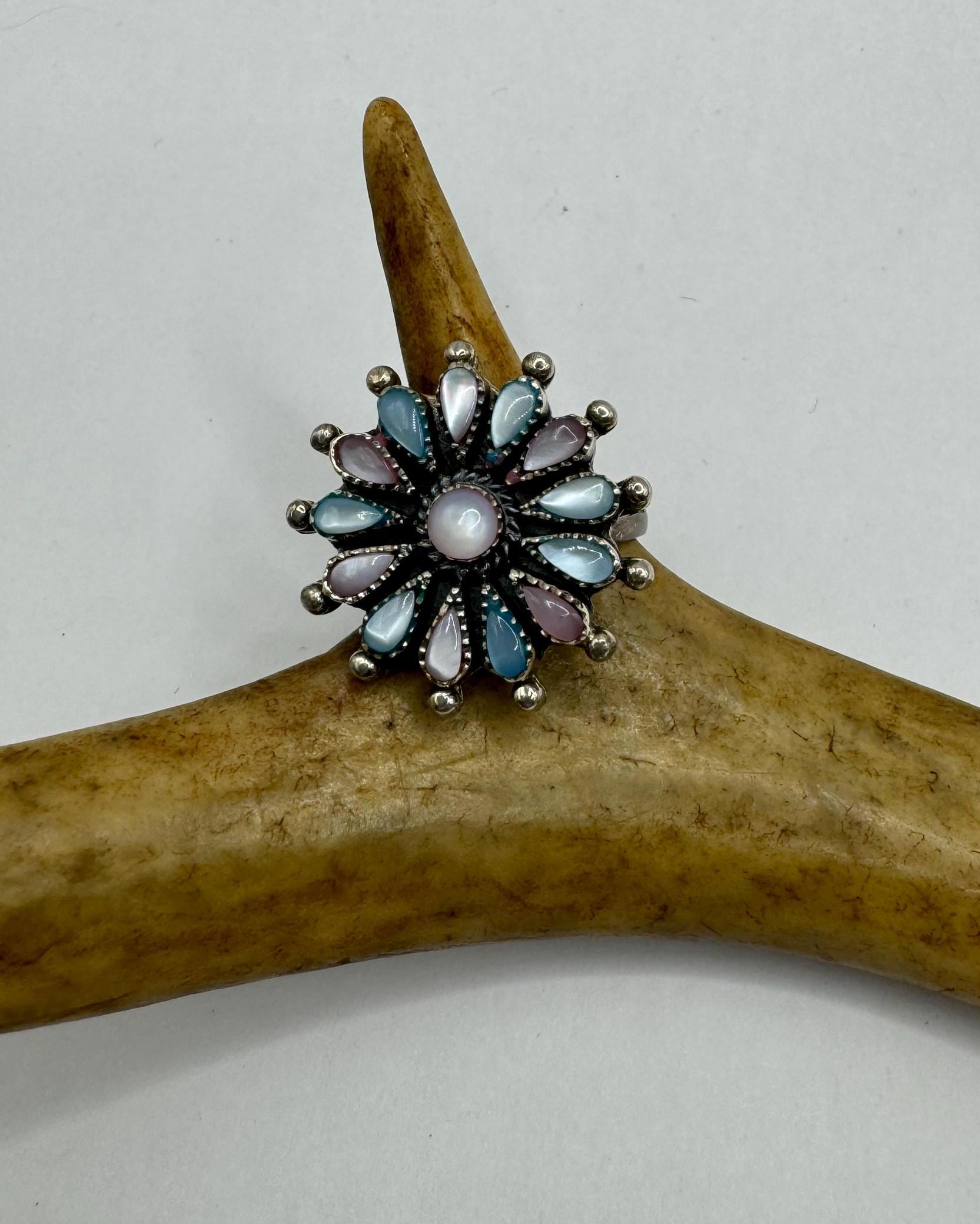vintage Native American flower pastel mother of Pearl Wedding Ring Band set in rose gold rhodium 925 Sterling Silver wedding... Read more
