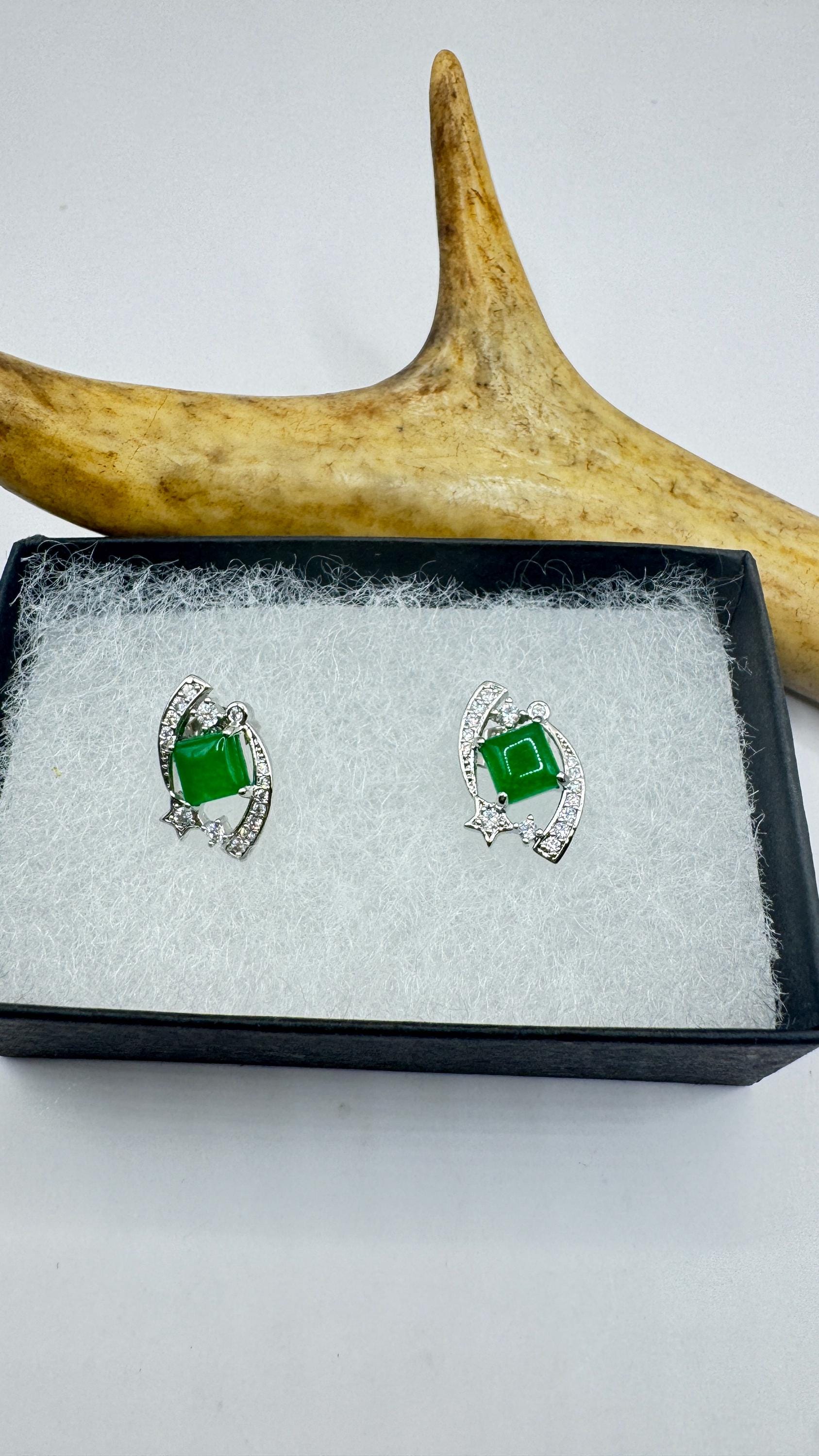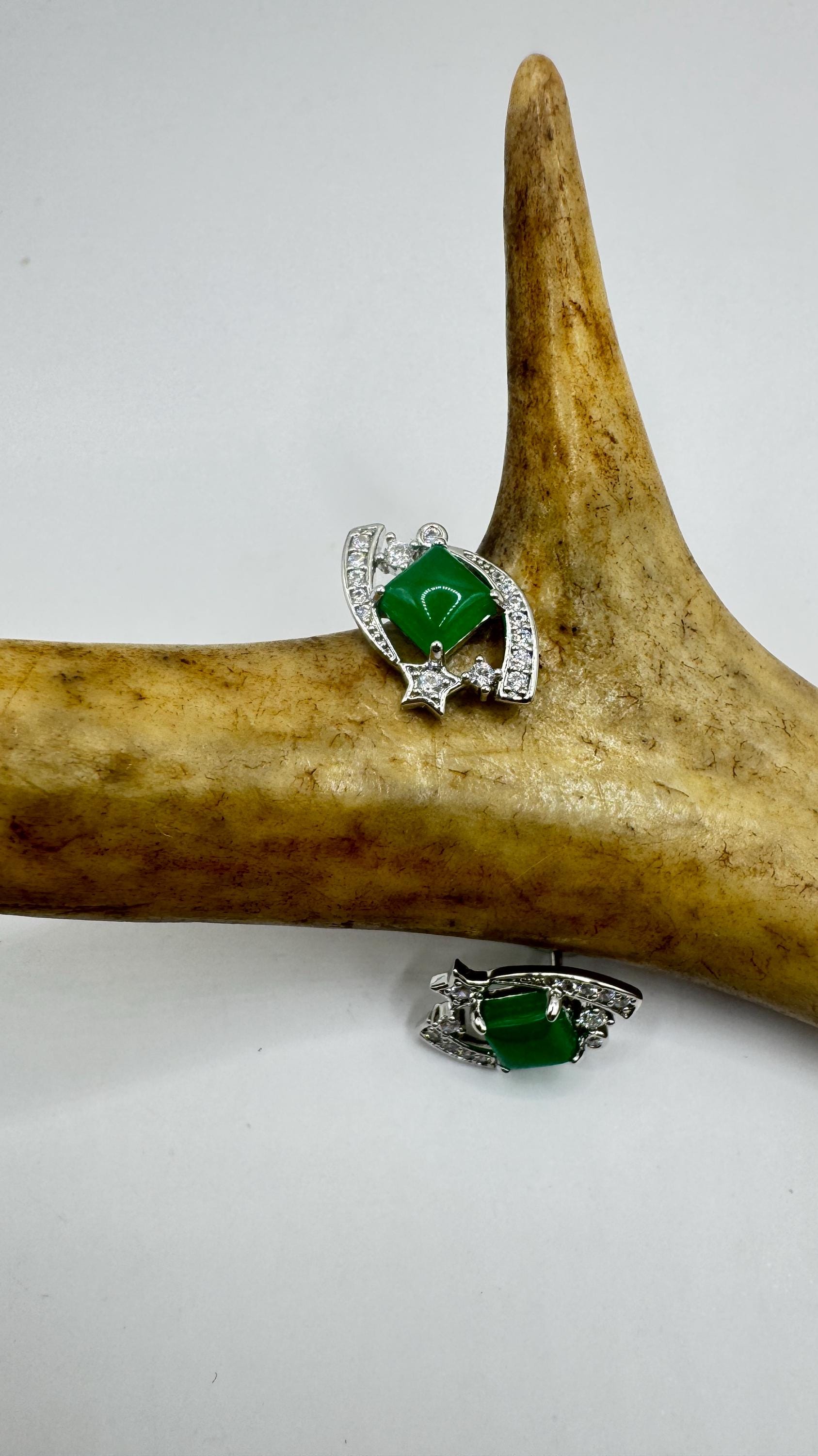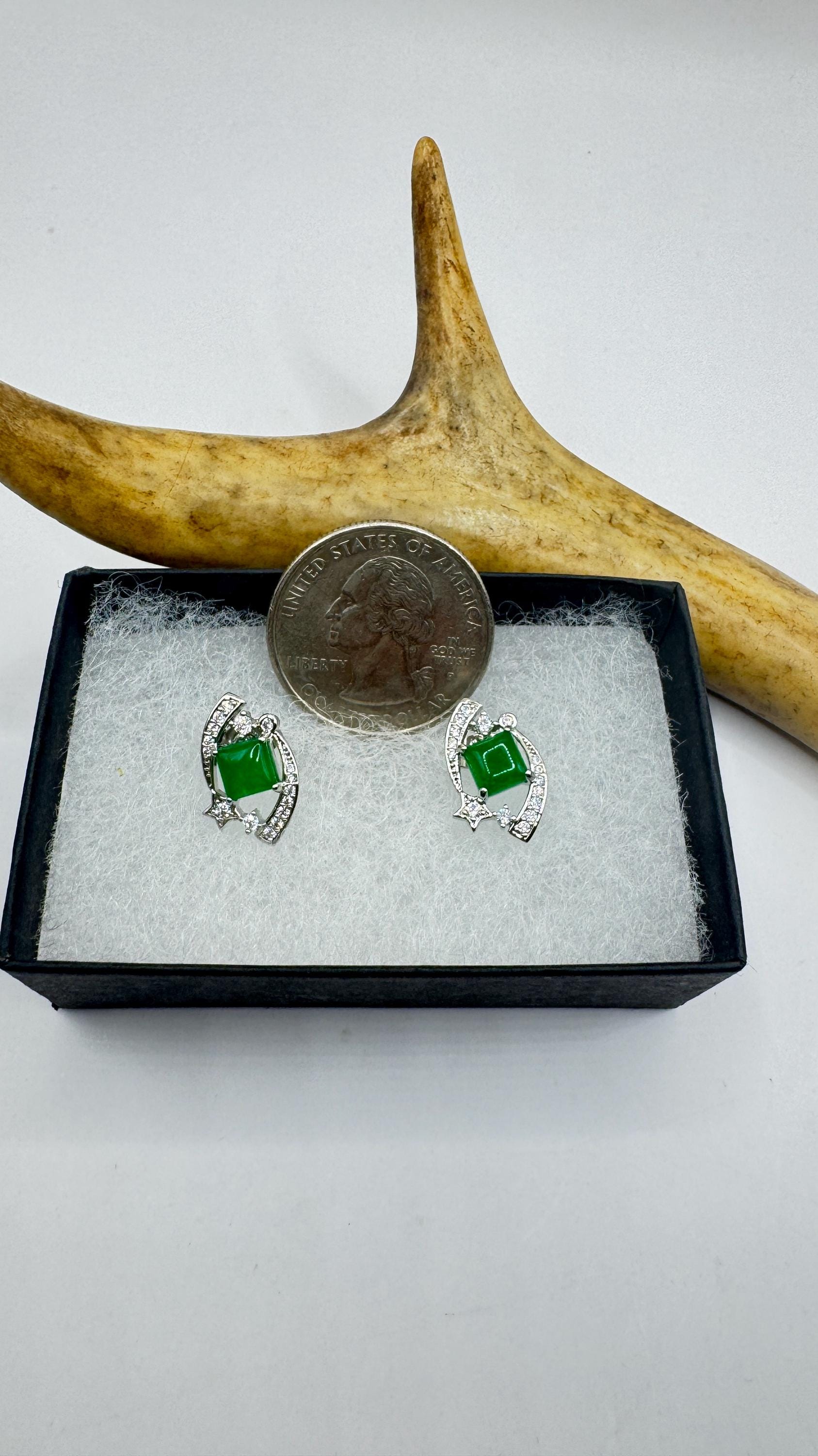Vintage green jade stud earrings Silver Bronze casting This is “fun jade” color enhanced Thank you for supporting a small... Read more