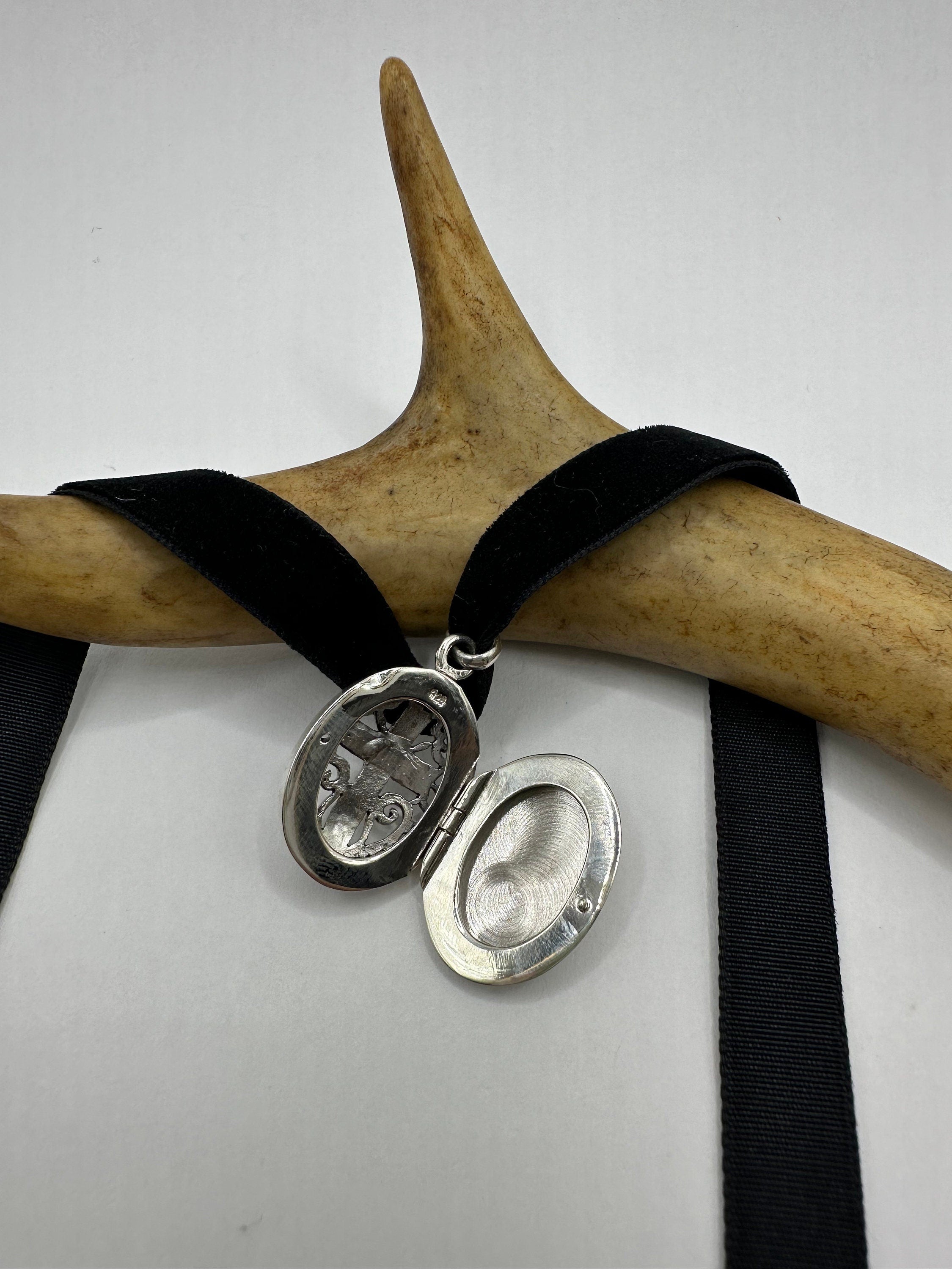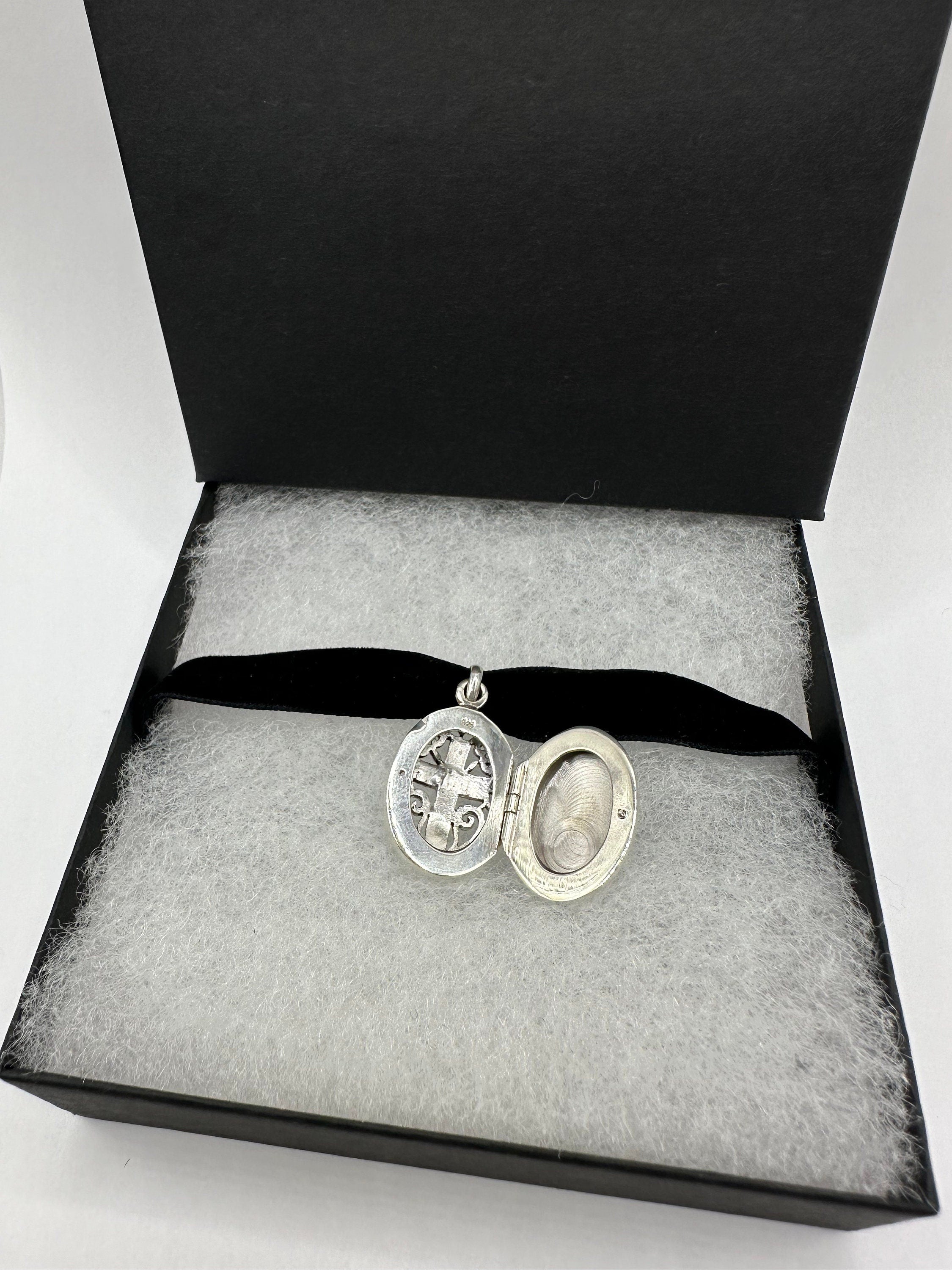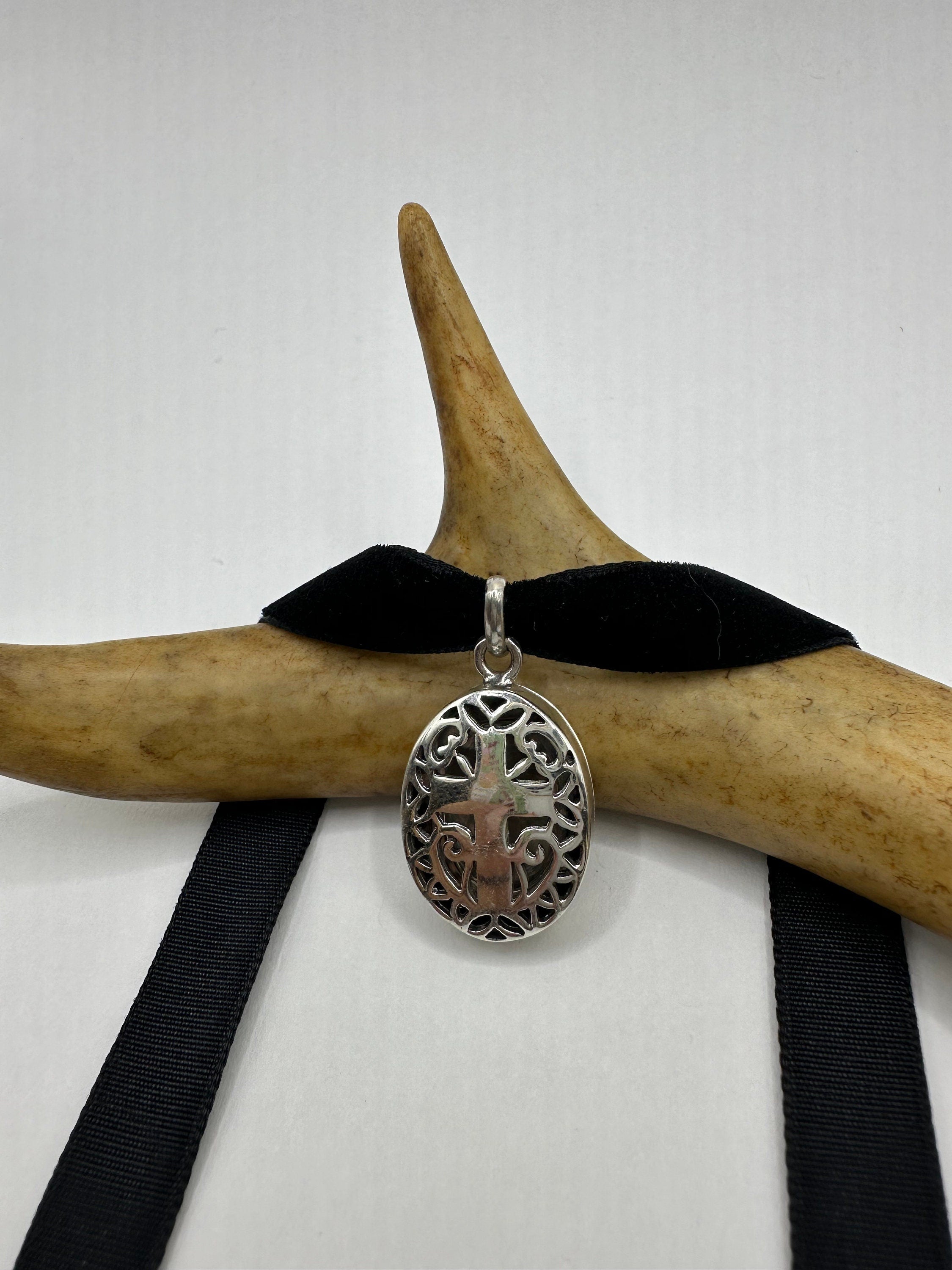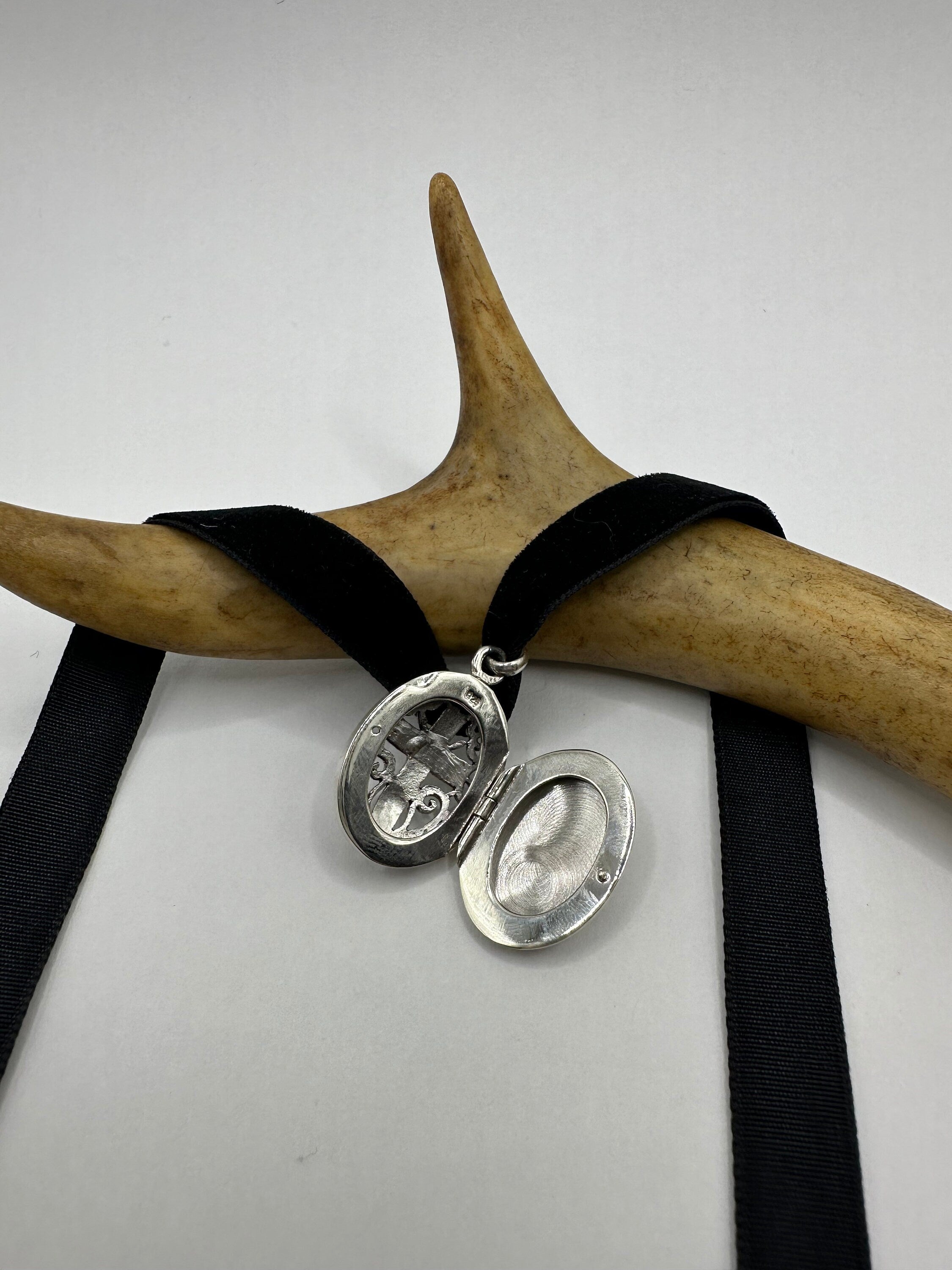 Vintage Silver Locket features a large oval Photo Pendant with a detailed etched cross design. Hand repolished, this treasure can... Read more