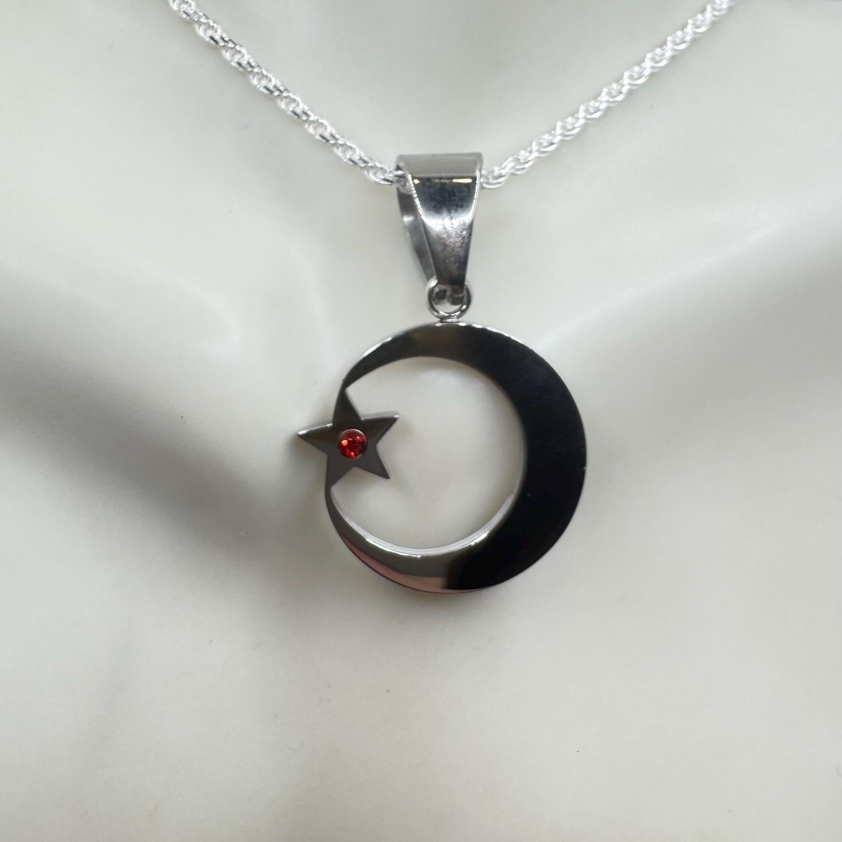 Vintage Gold Pendant features Nation of Islam Muslim Moon Crescent Star symbol charm in silver Stainless Steel - Hand polished... Read more