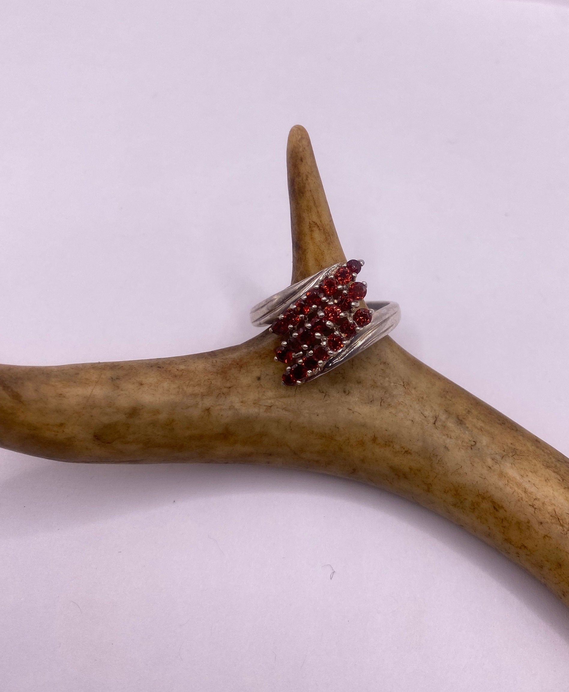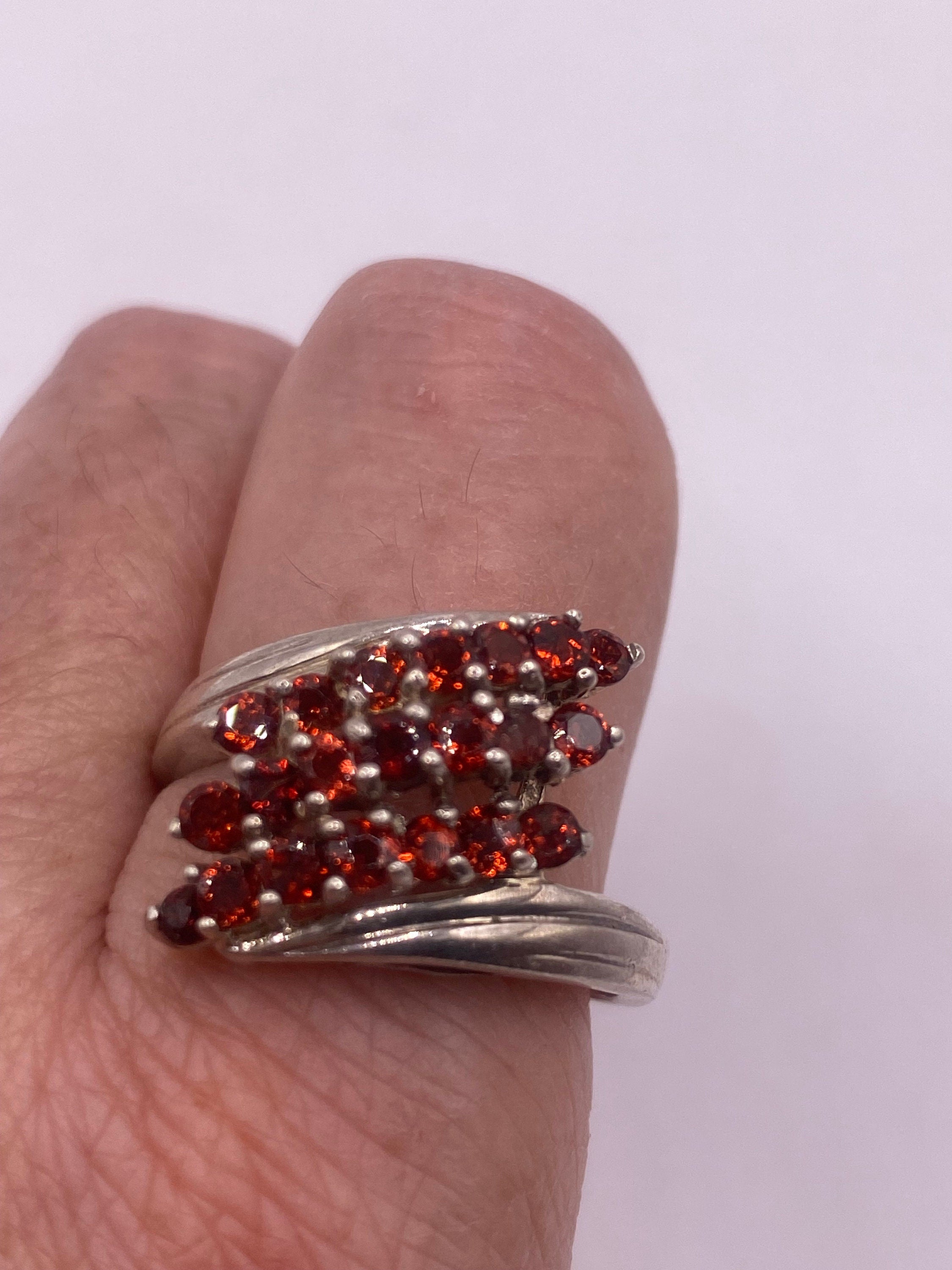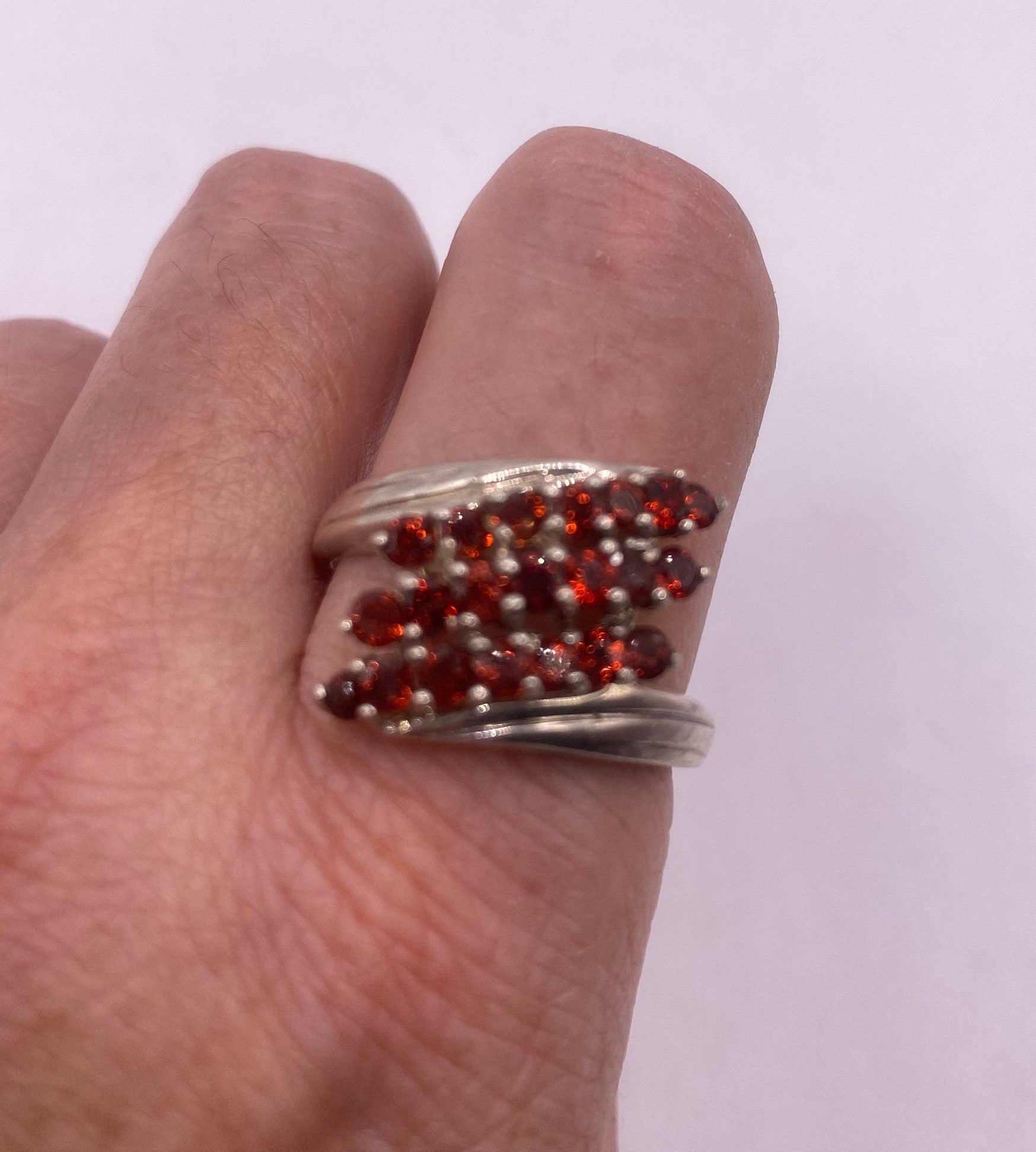 Vintage 925 sterling Silver Ring featuring shimmering Pave Set large red garnets This boho cocktail ring that's ready to make... Read more