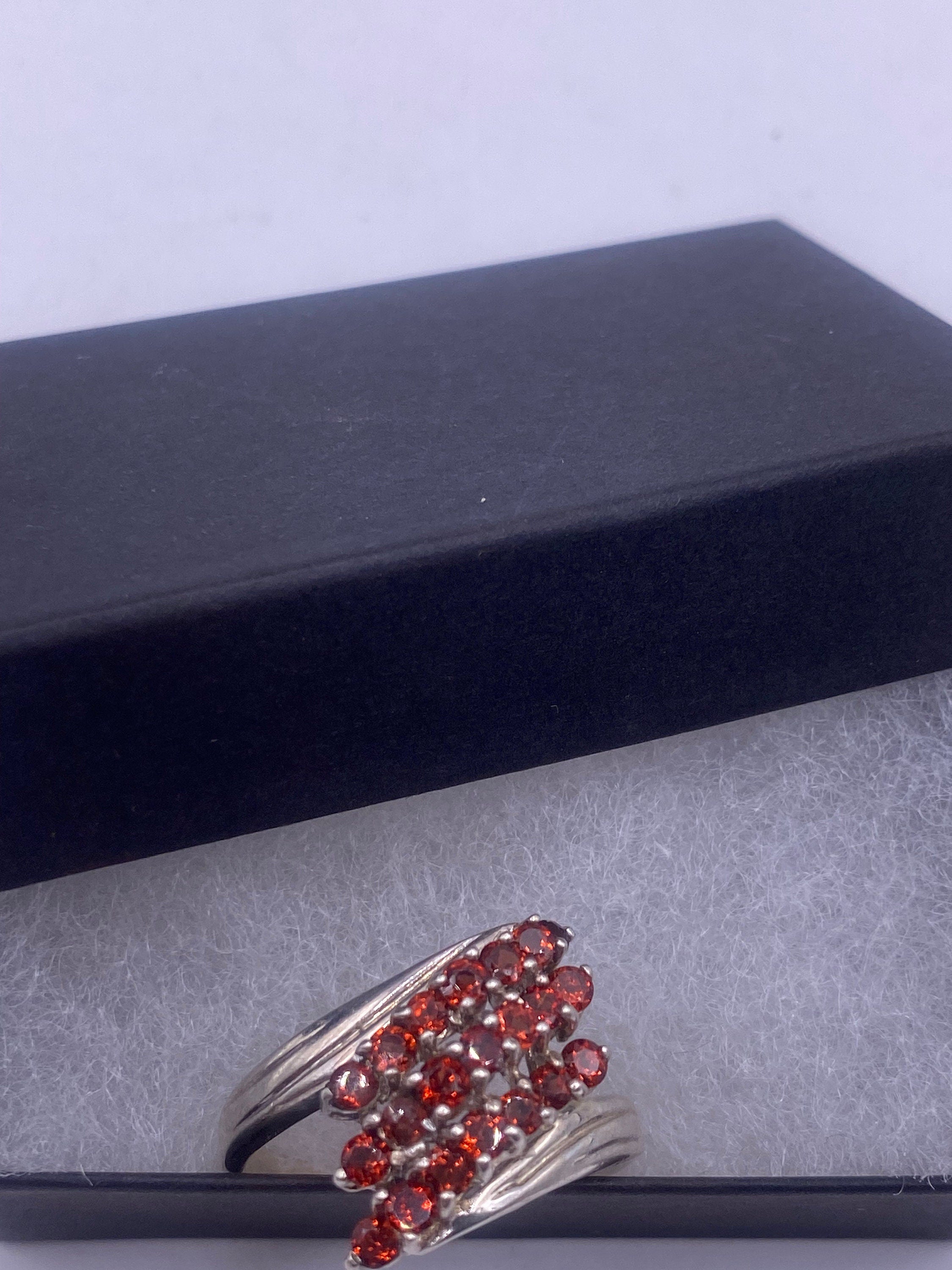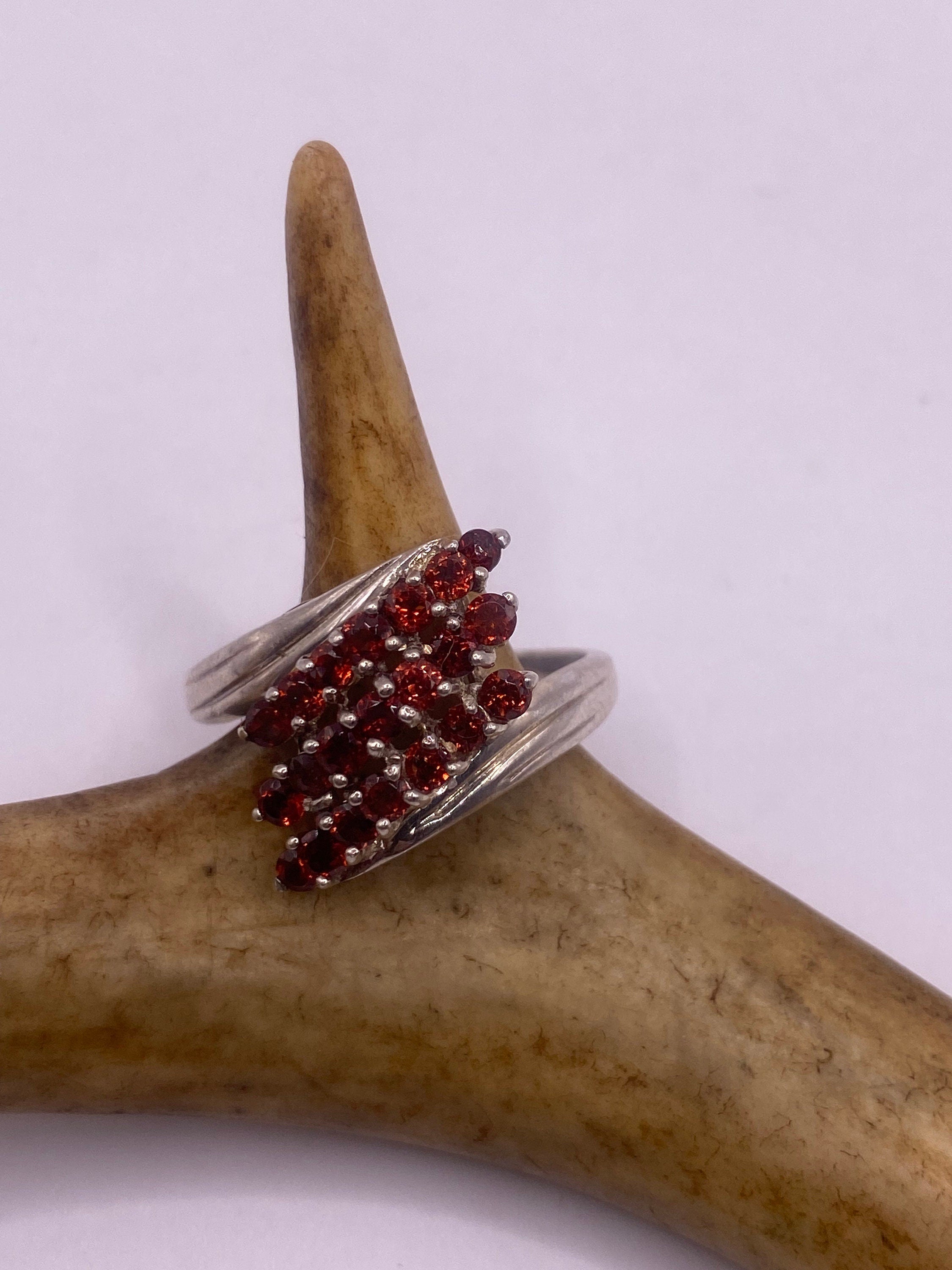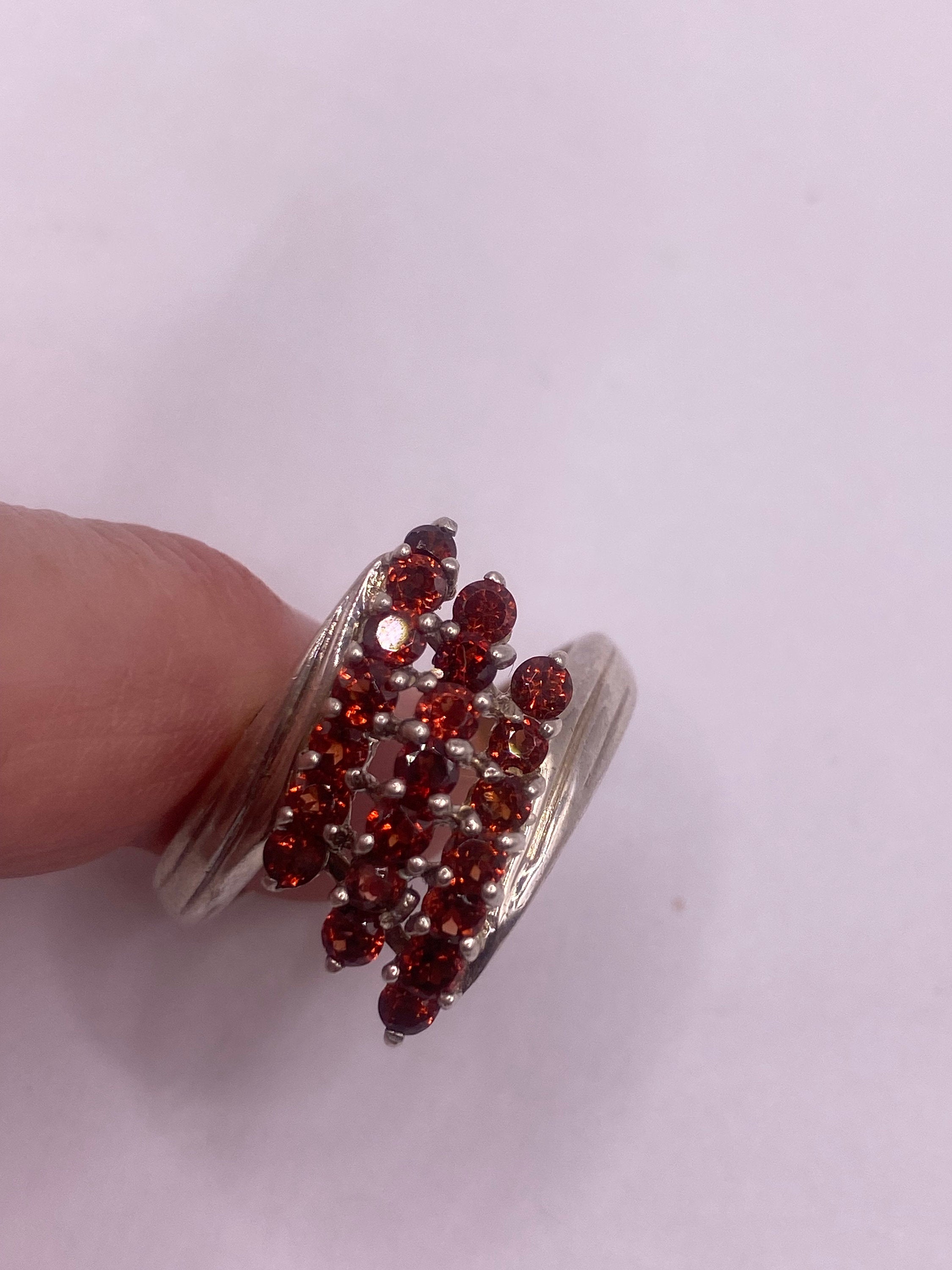 Vintage 925 sterling Silver Ring featuring shimmering Pave Set large red garnets This boho cocktail ring that's ready to make... Read more